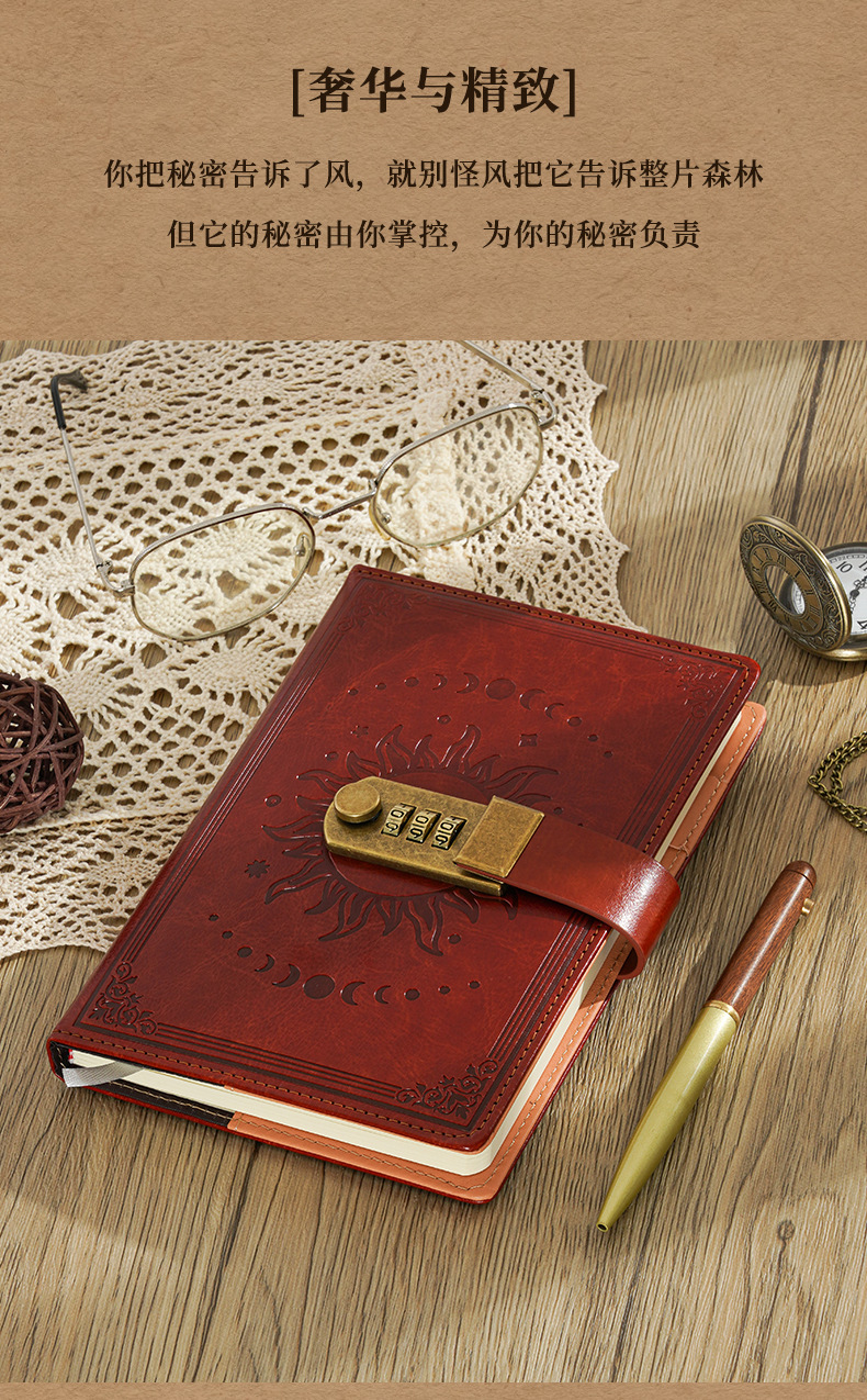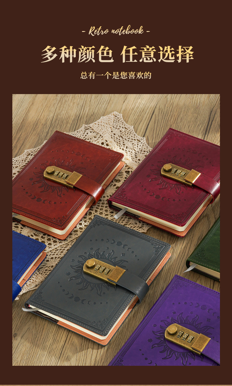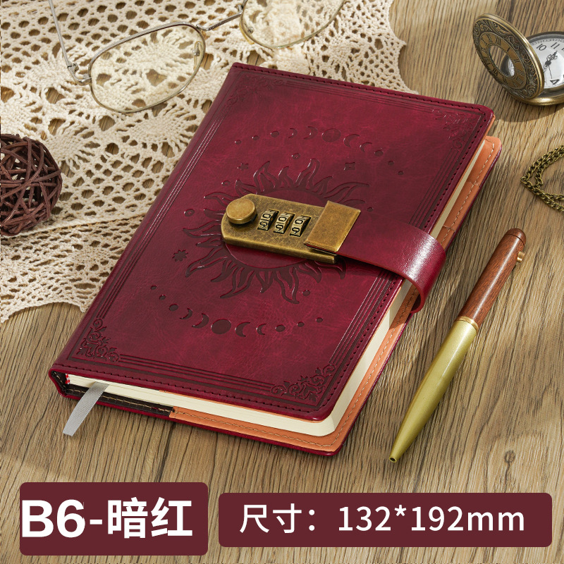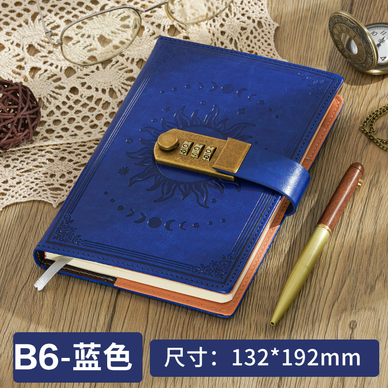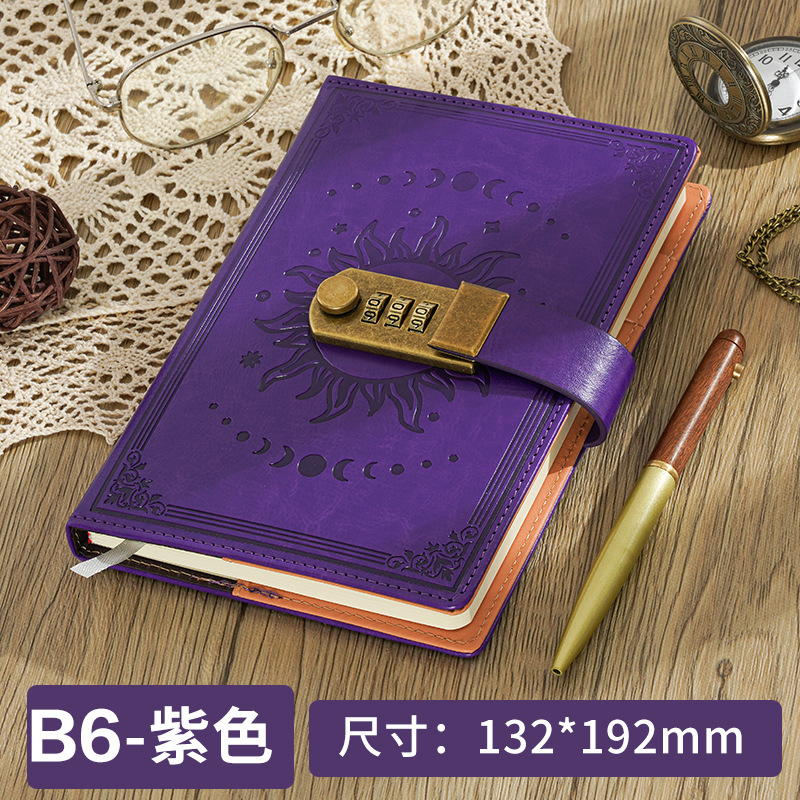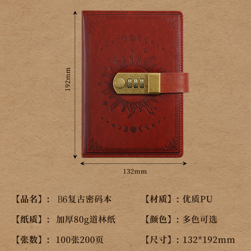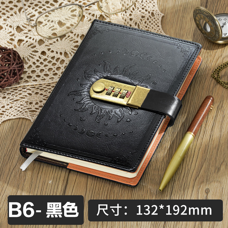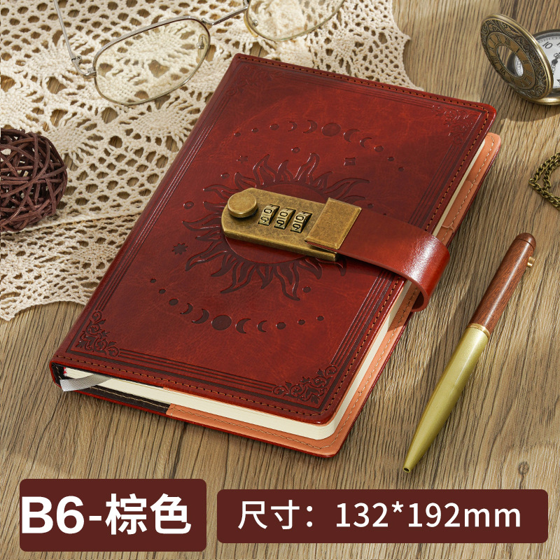 2026跨境B6密码本带锁复古手账本日记本学生创意文具PU封面笔记本
