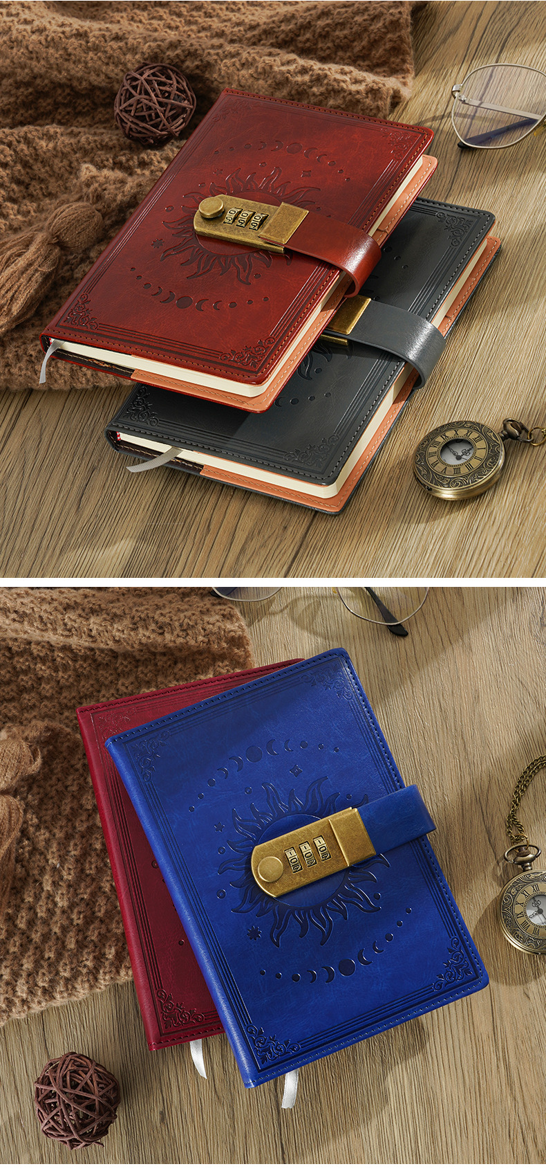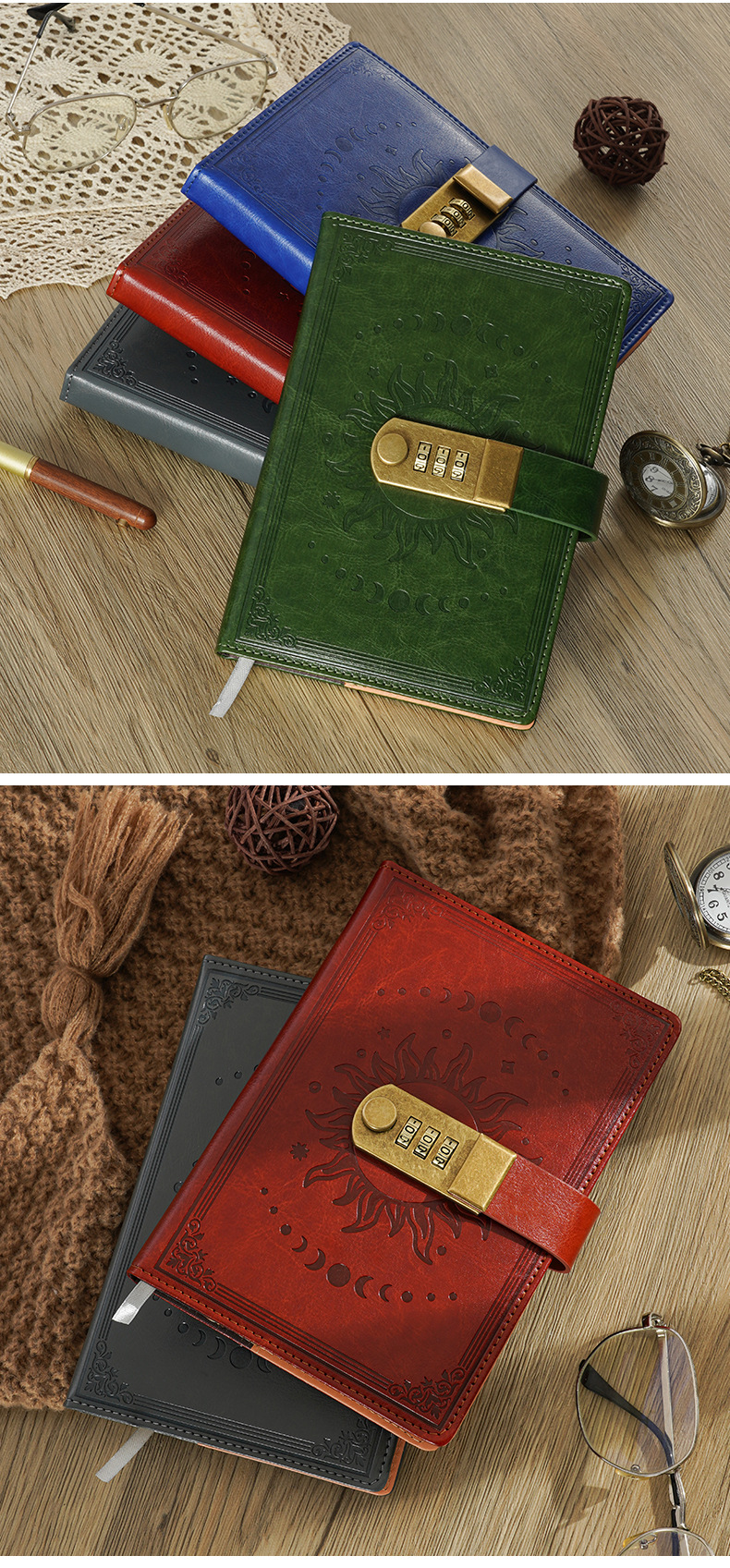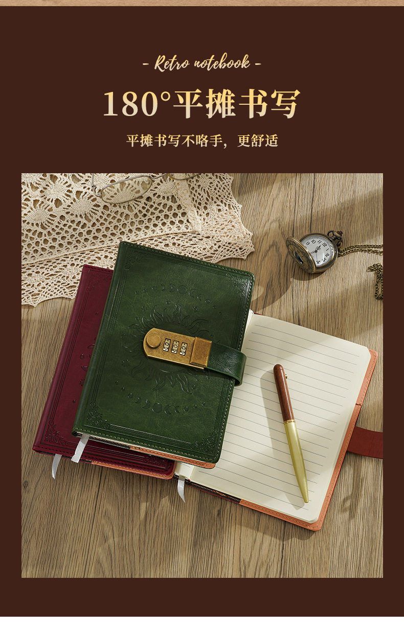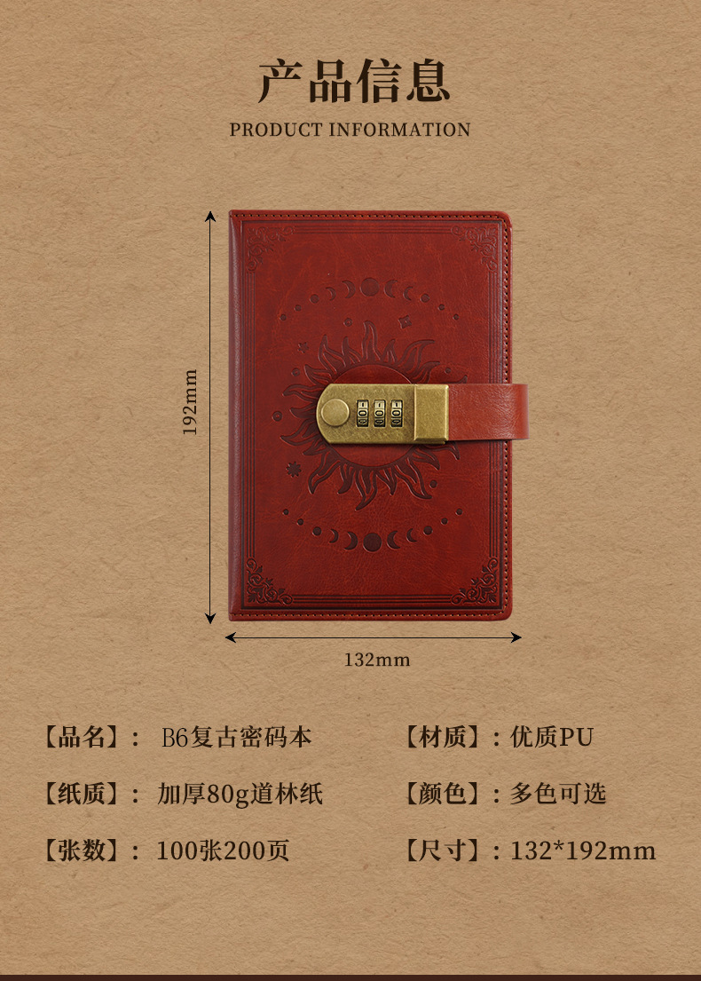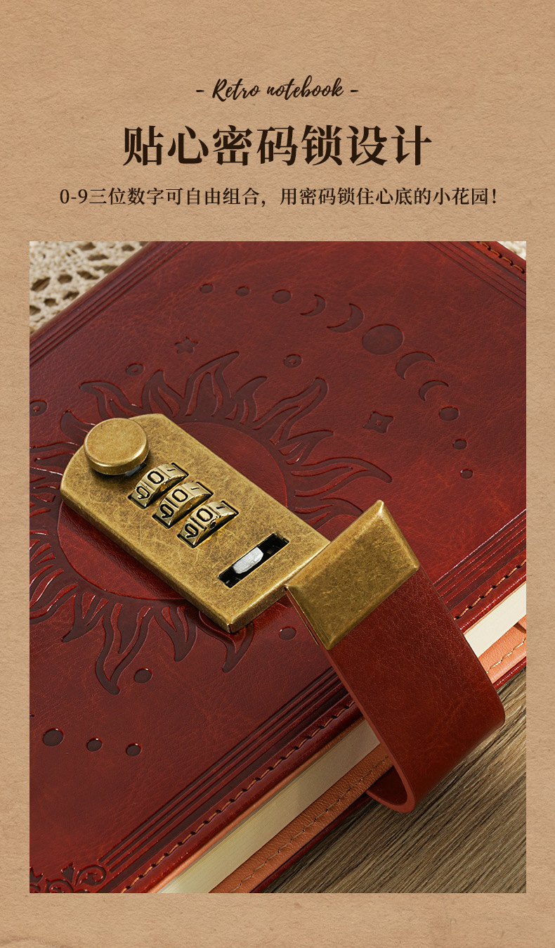 2026跨境B6密码本带锁复古手账本日记本学生创意文具PU封面笔记本