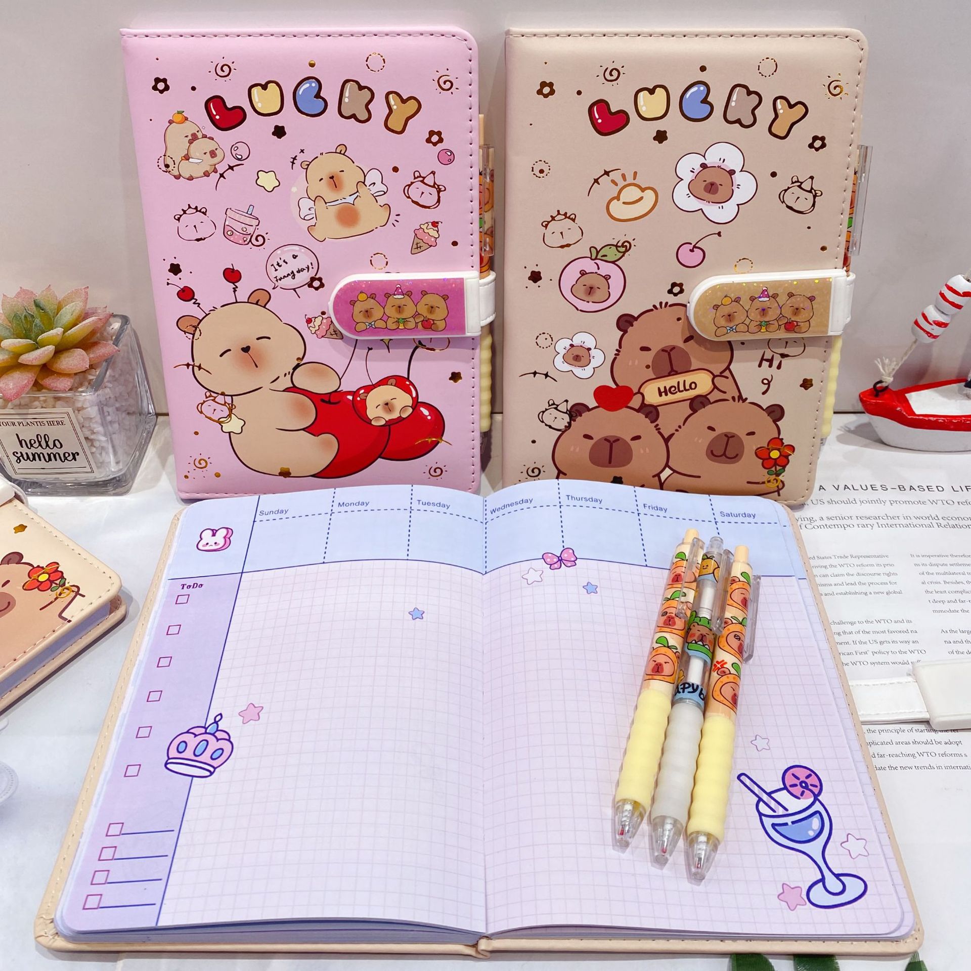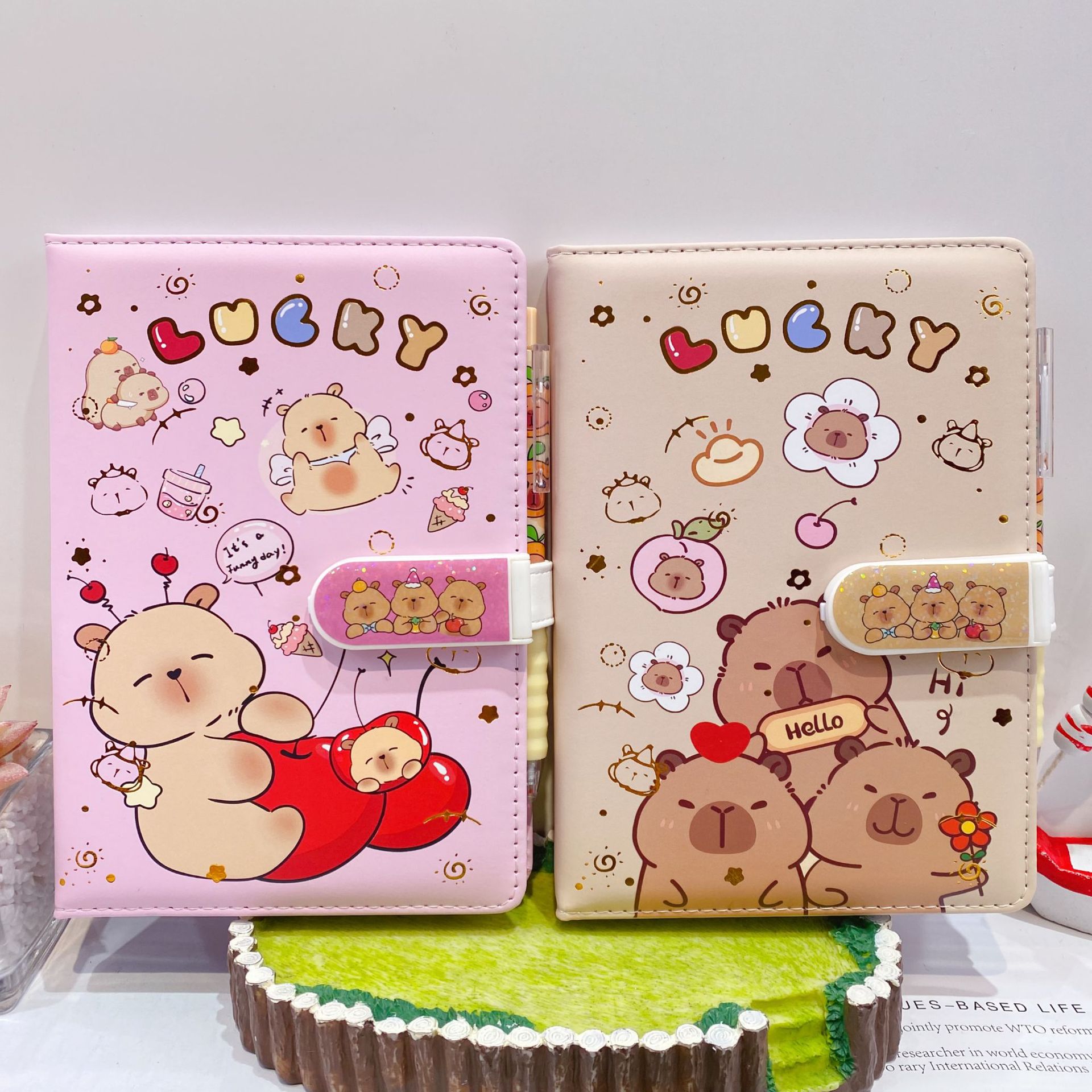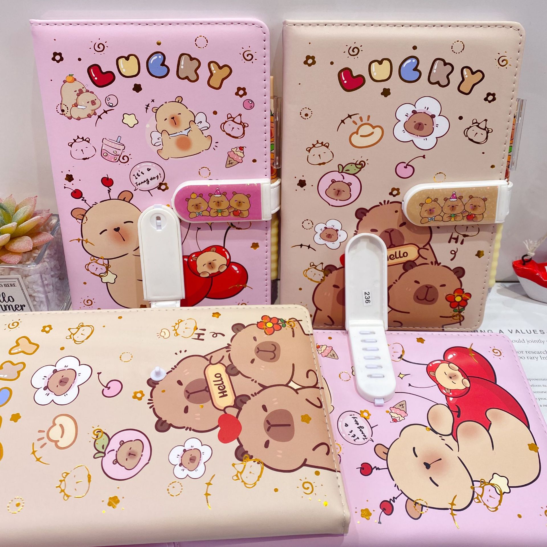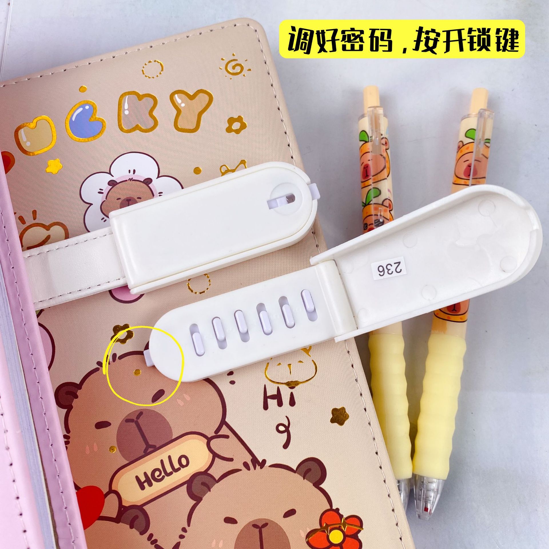 新款卡皮巴拉PU密码锁手账本套装学生笔记本带笔可爱卡通记事本