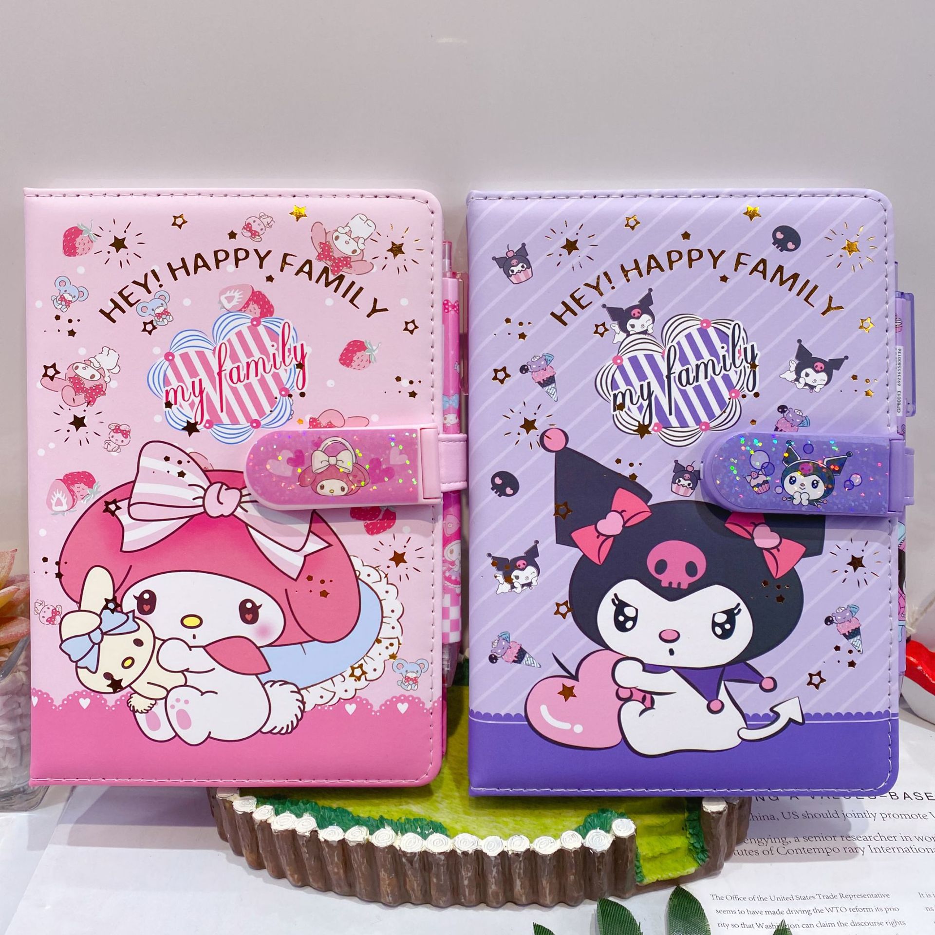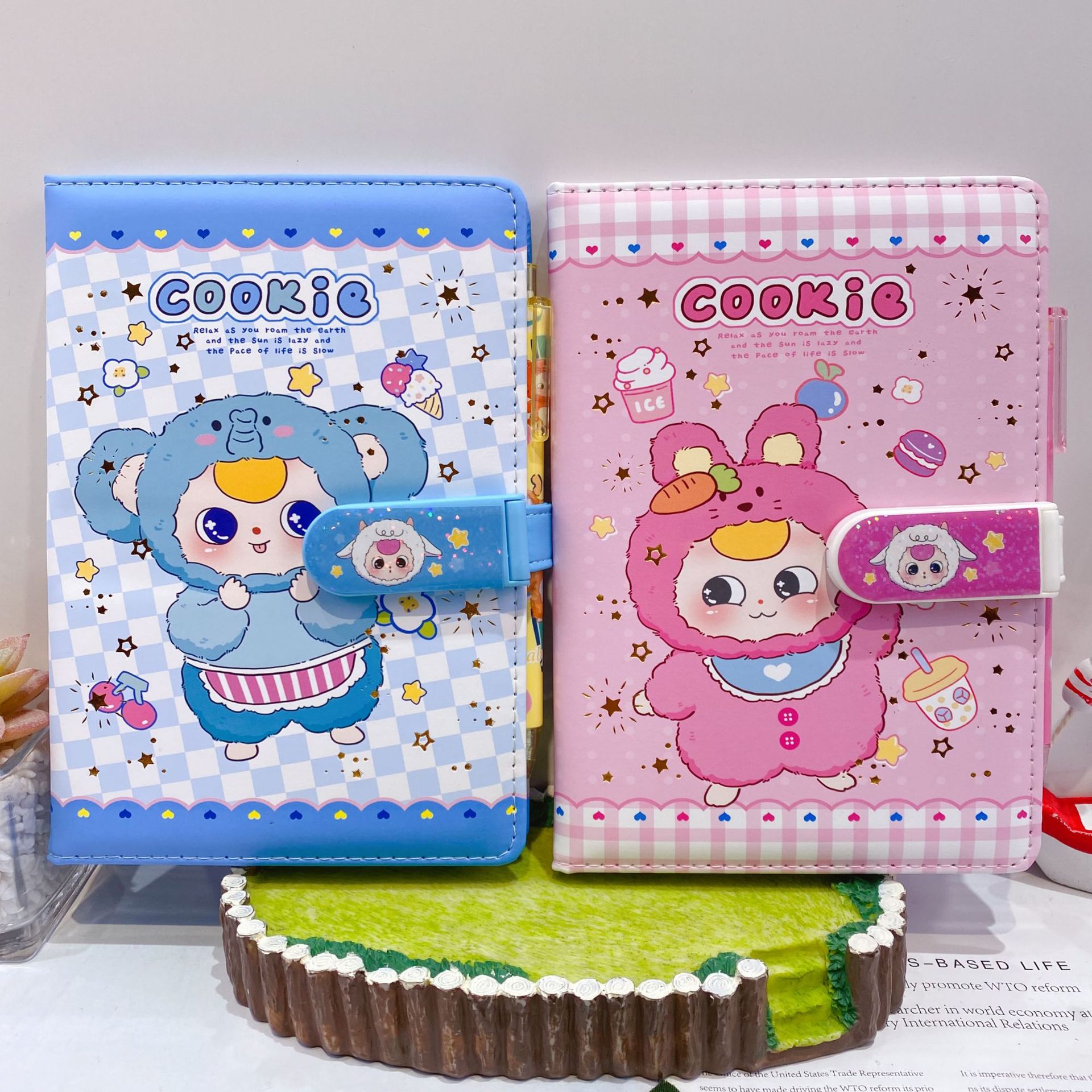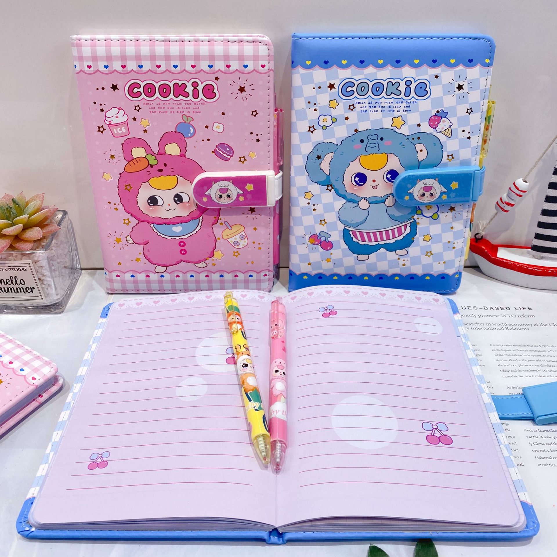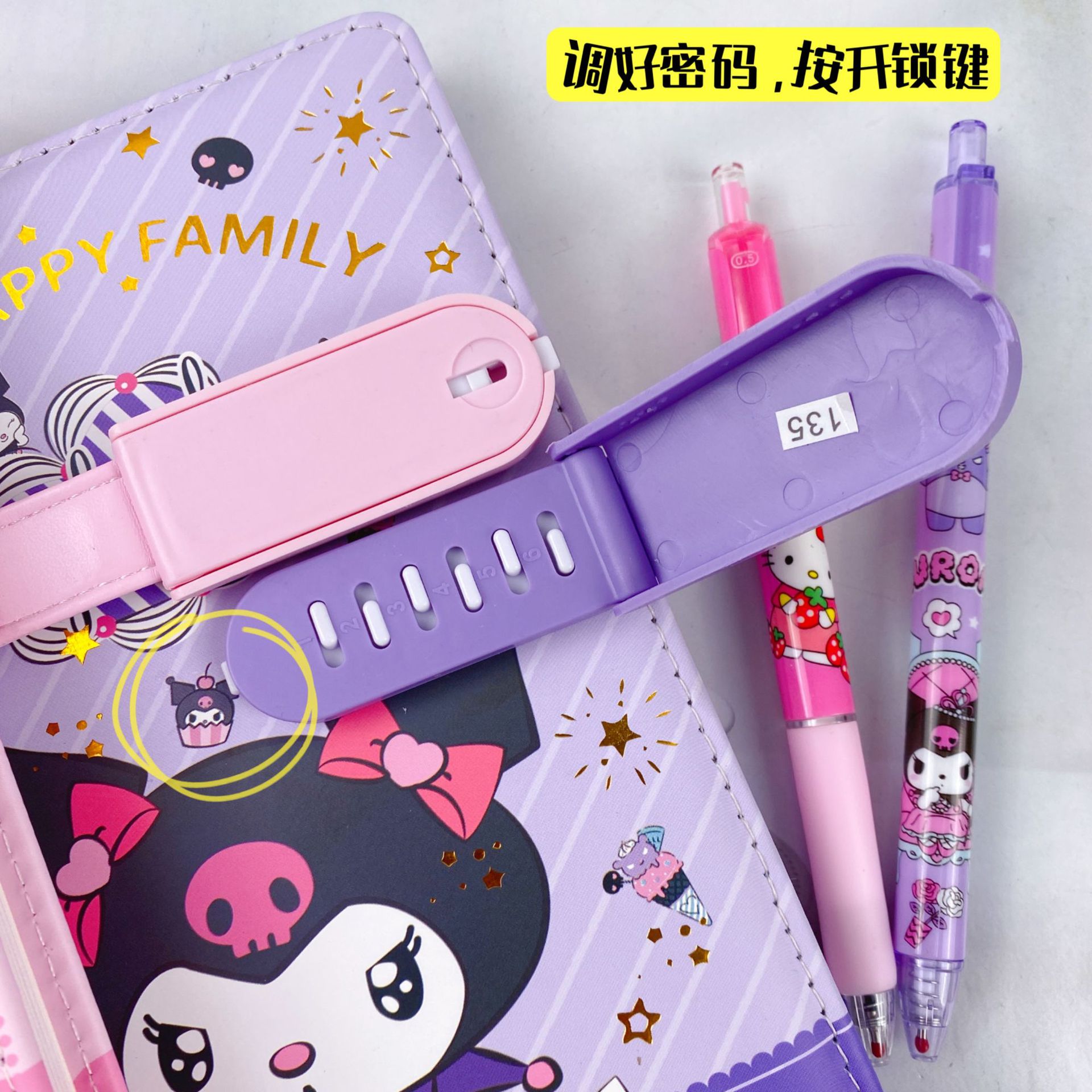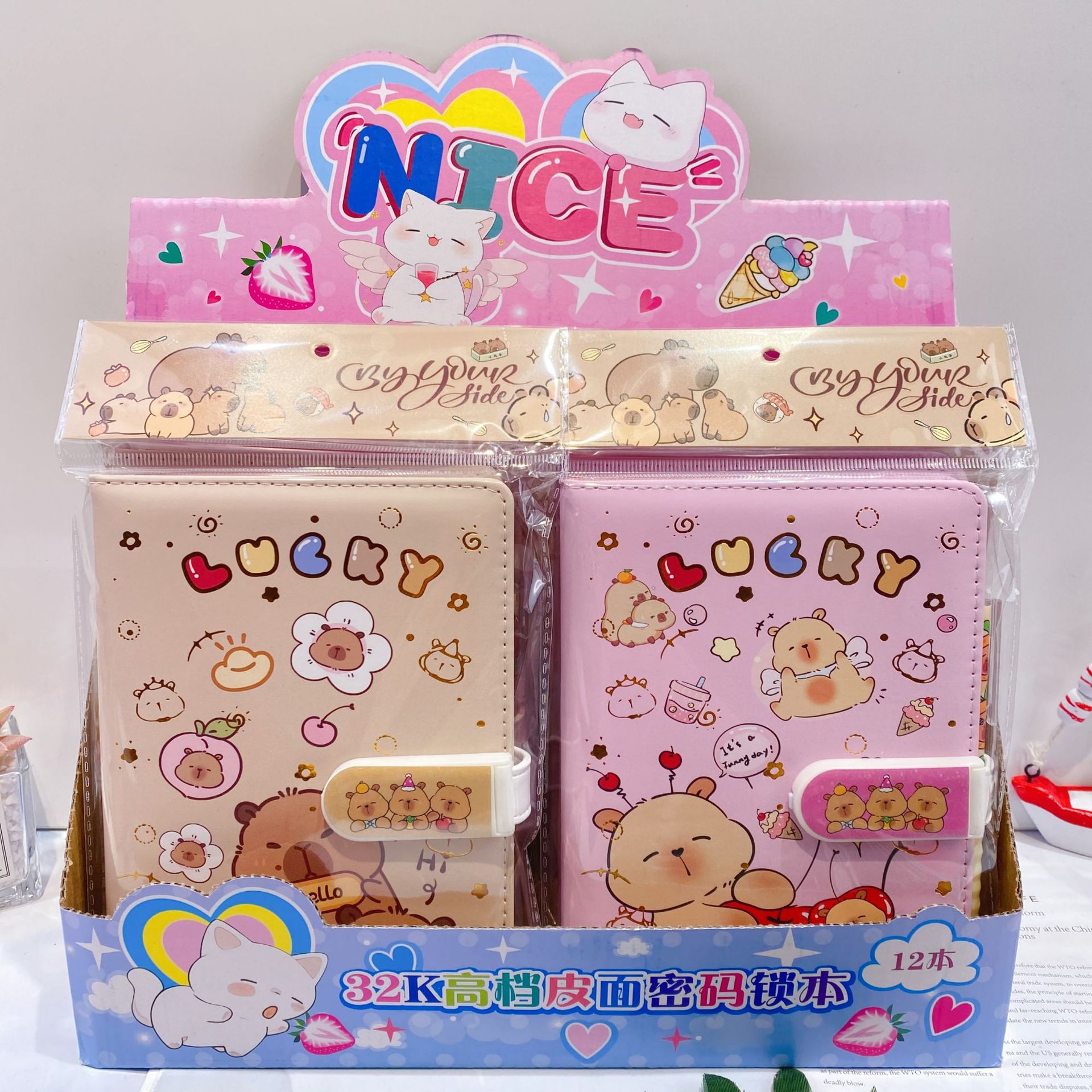 新款卡皮巴拉PU密码锁手账本套装学生笔记本带笔可爱卡通记事本