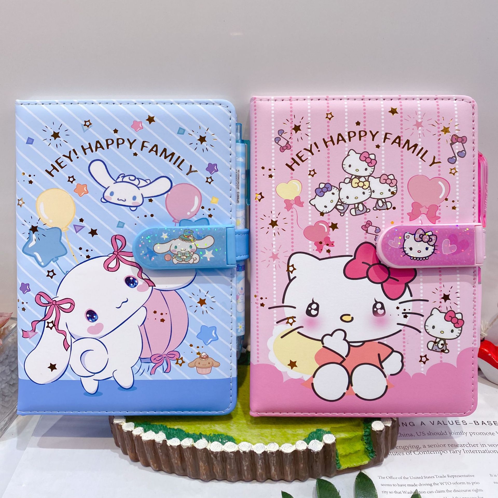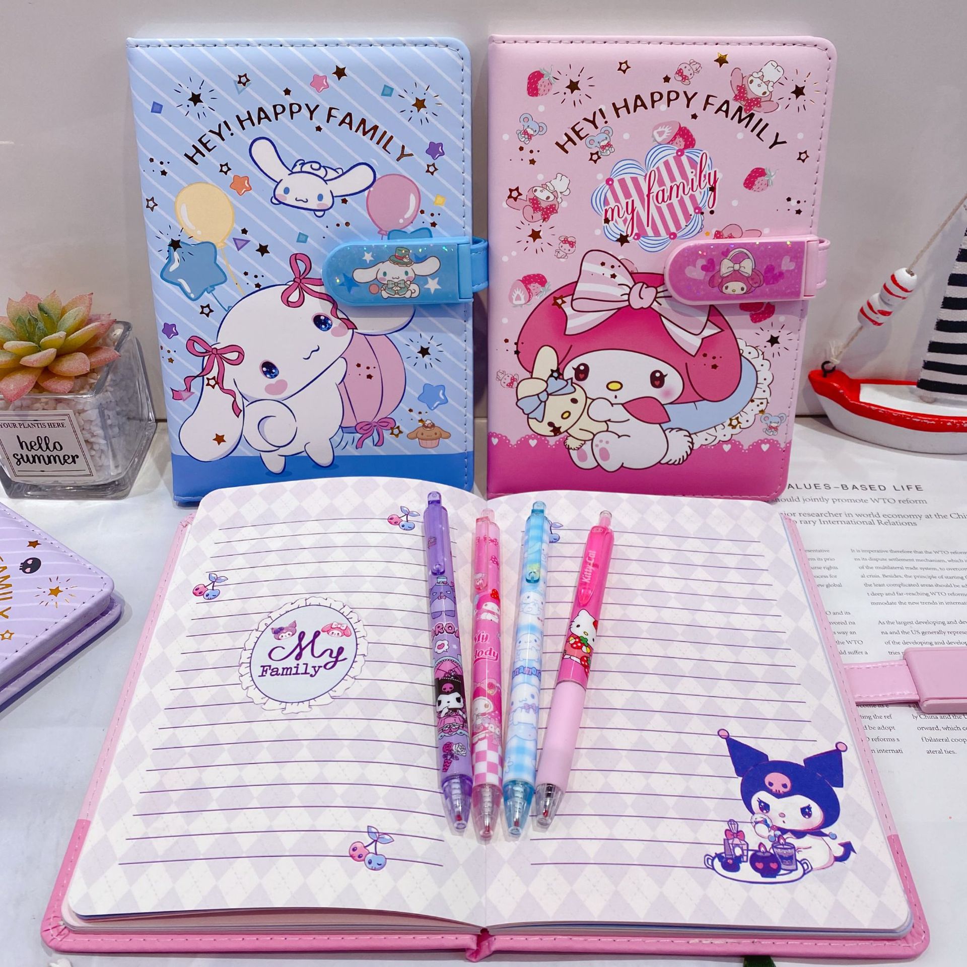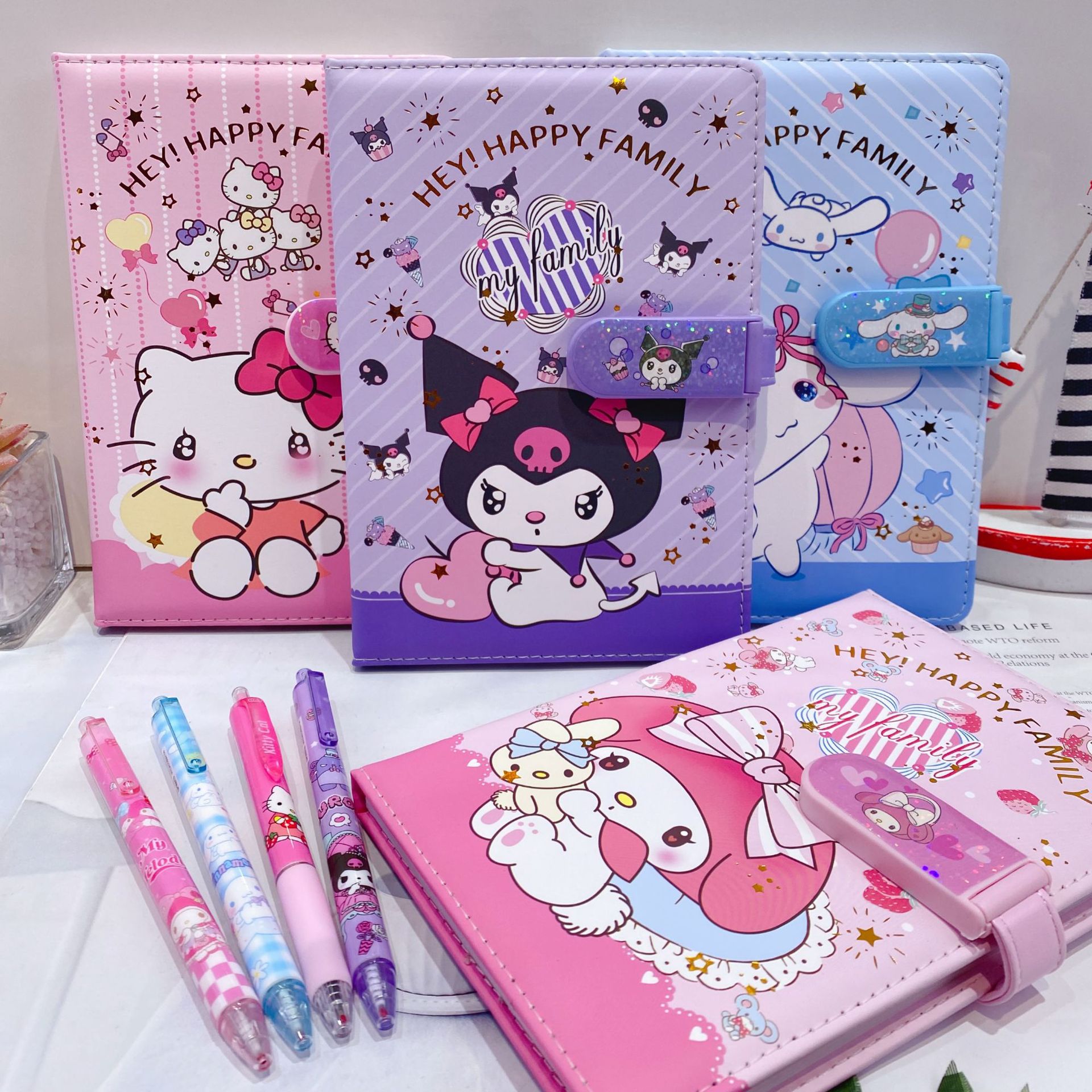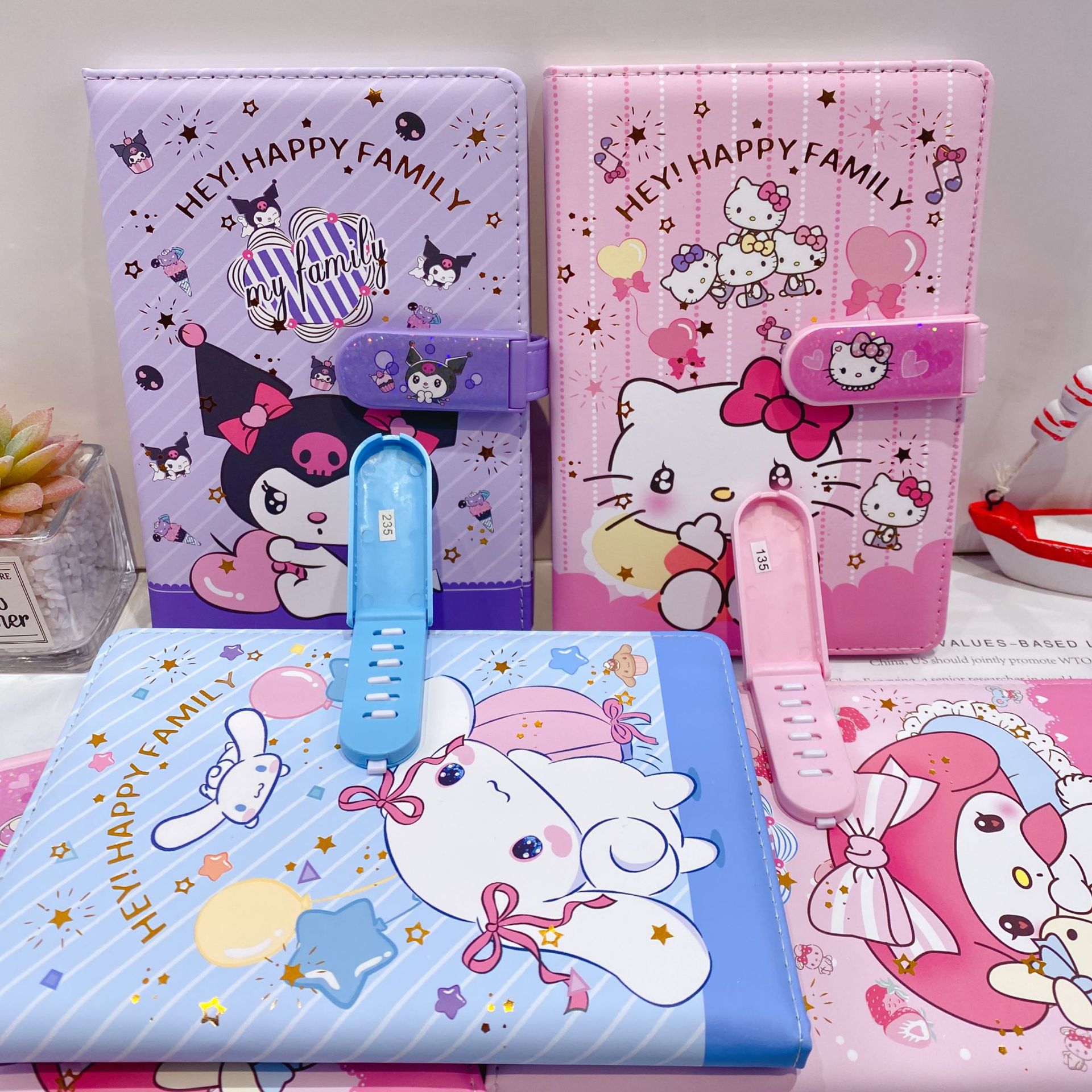 新款卡皮巴拉PU密码锁手账本套装学生笔记本带笔可爱卡通记事本