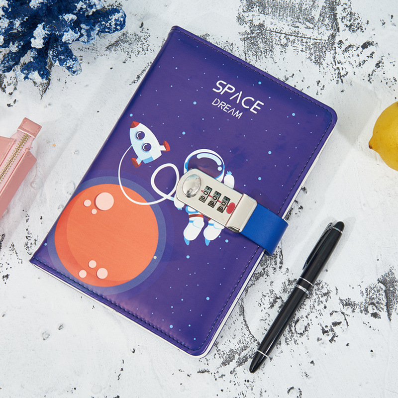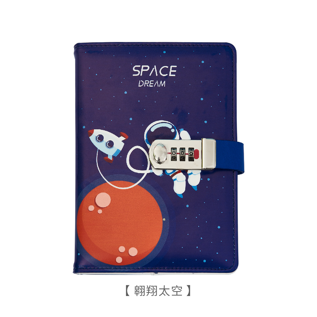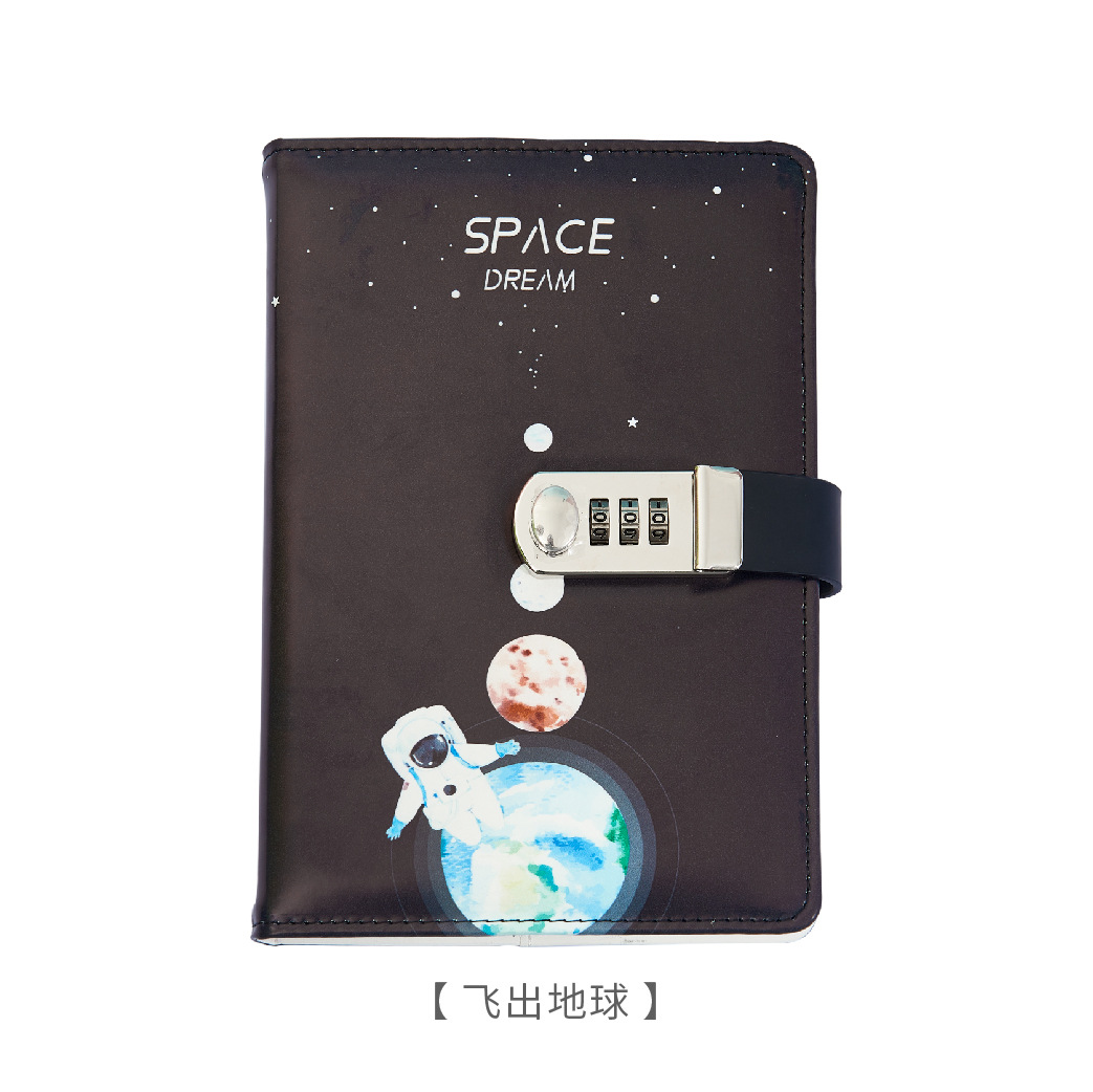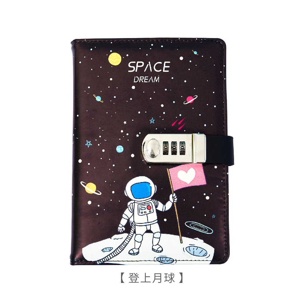 太空外星人卡通密码本中小学生带锁日记本简约笔记本手账本密码本