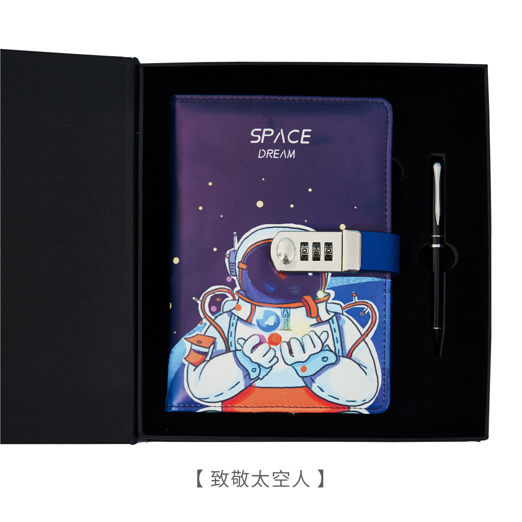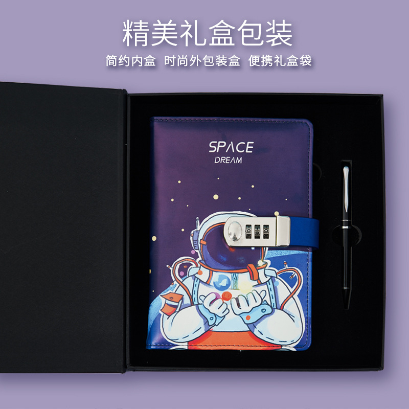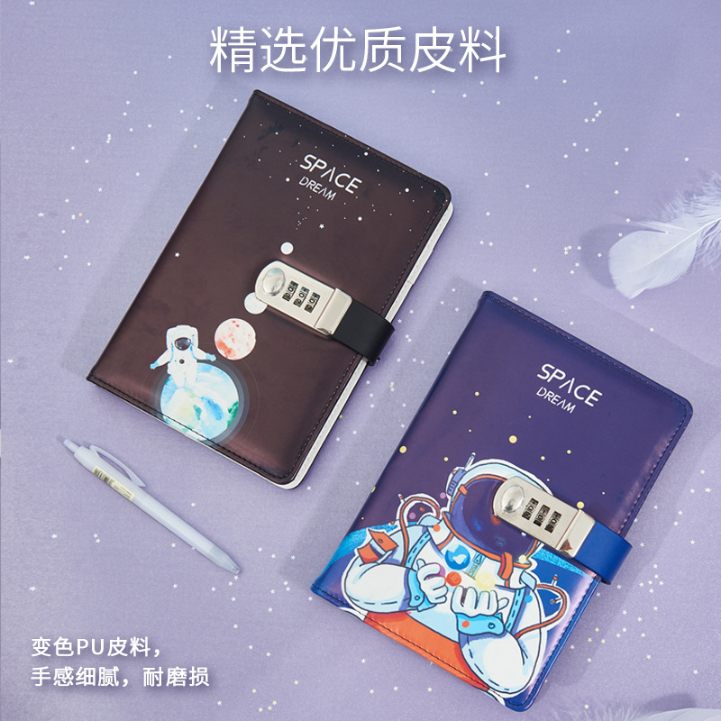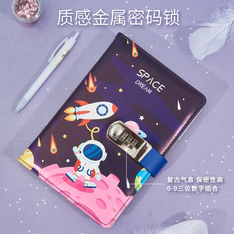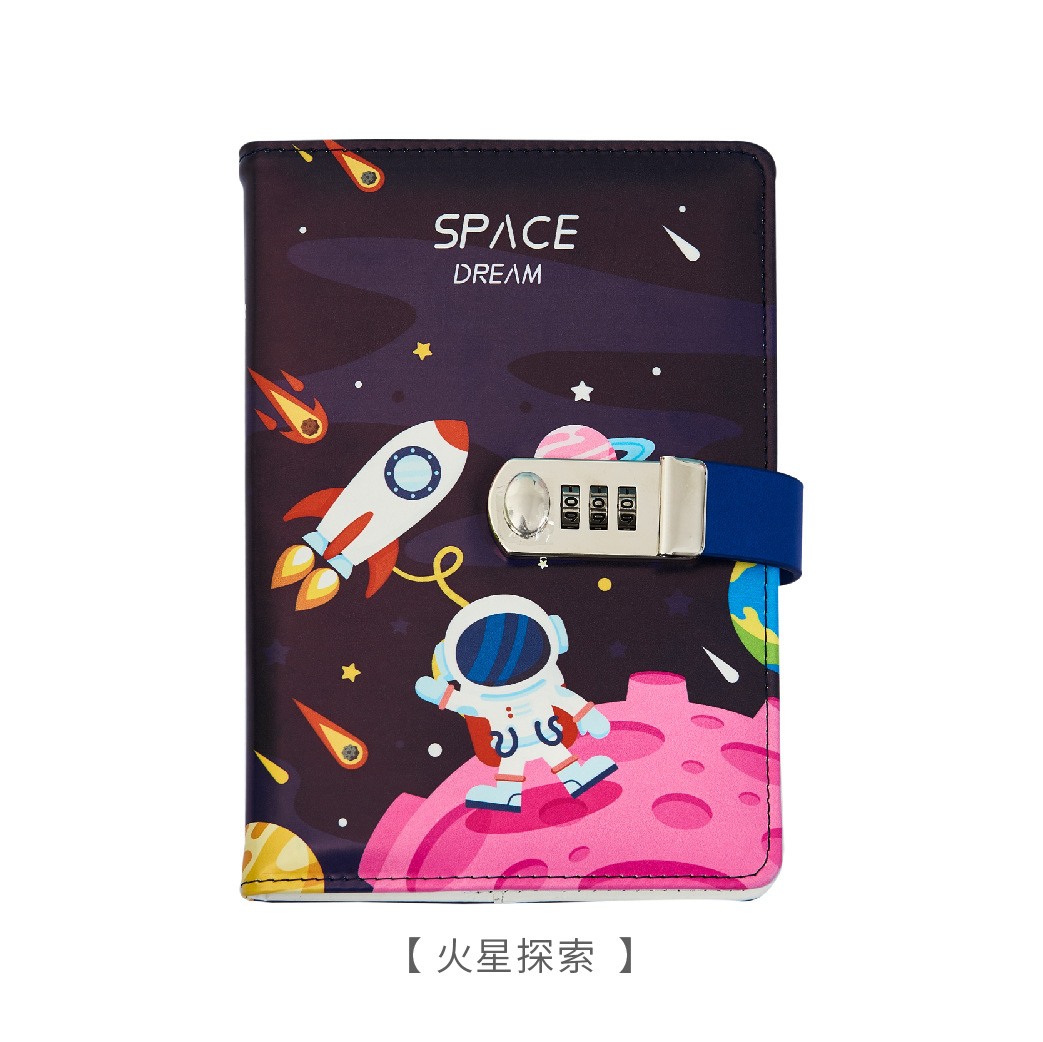 太空外星人卡通密码本中小学生带锁日记本简约笔记本手账本密码本