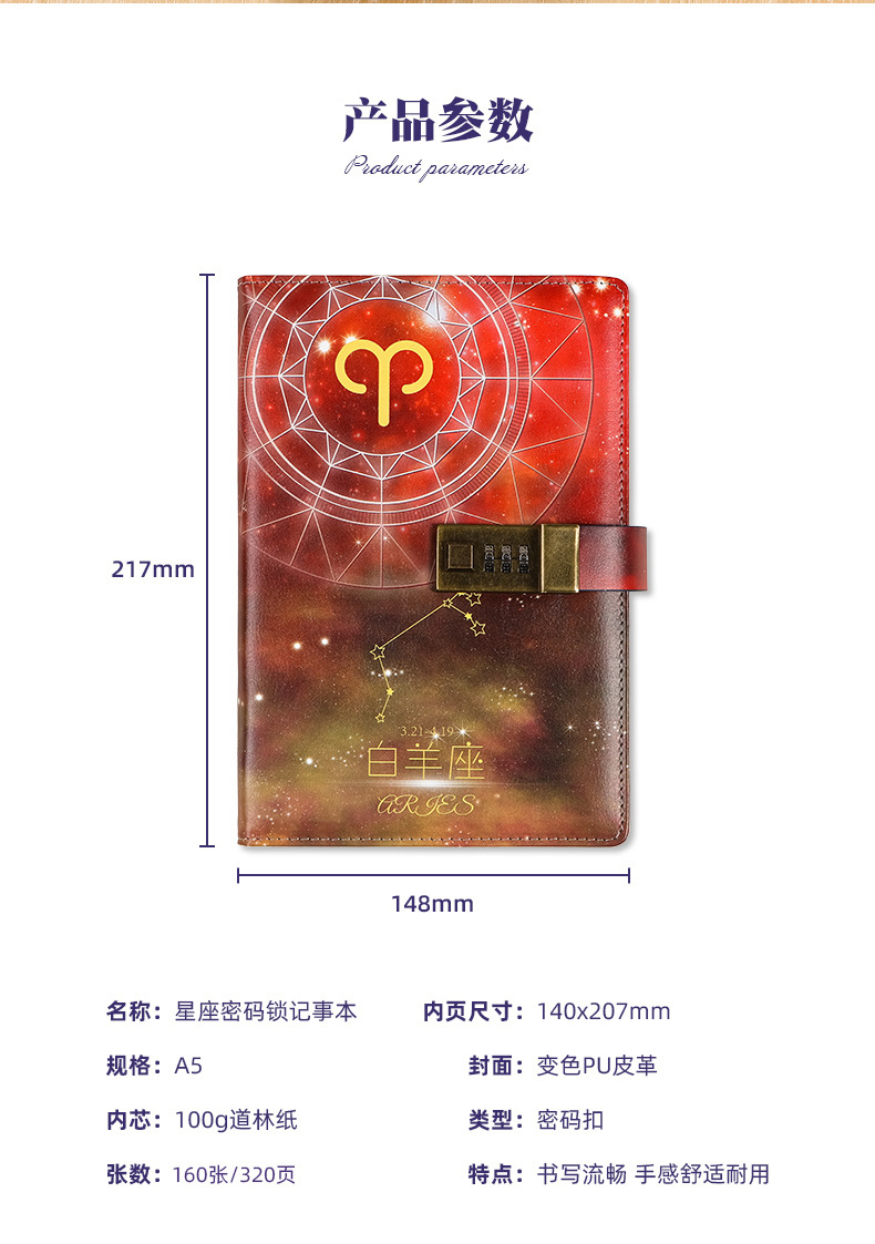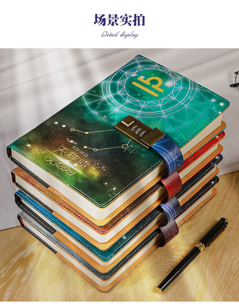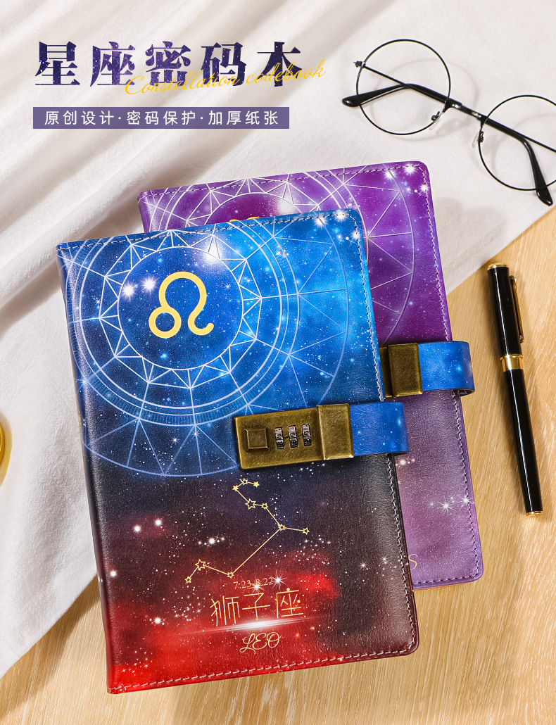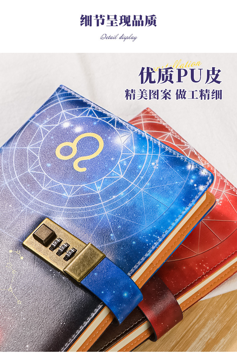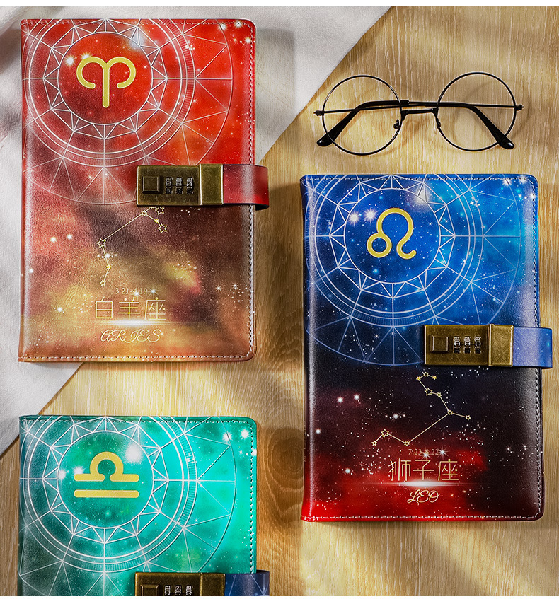 A5十二星座密码本日记本带锁笔记本本子生日礼物记事本创意手账本