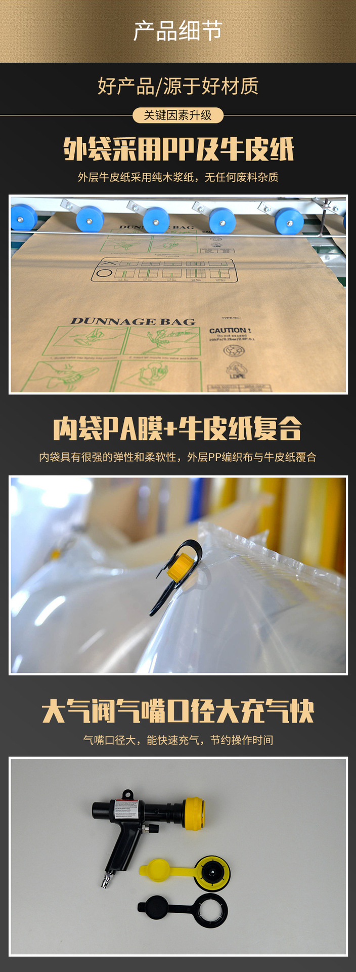 集装箱填充袋货物缓冲防压充气袋牛皮纸抗压货柜保护集装箱充气袋