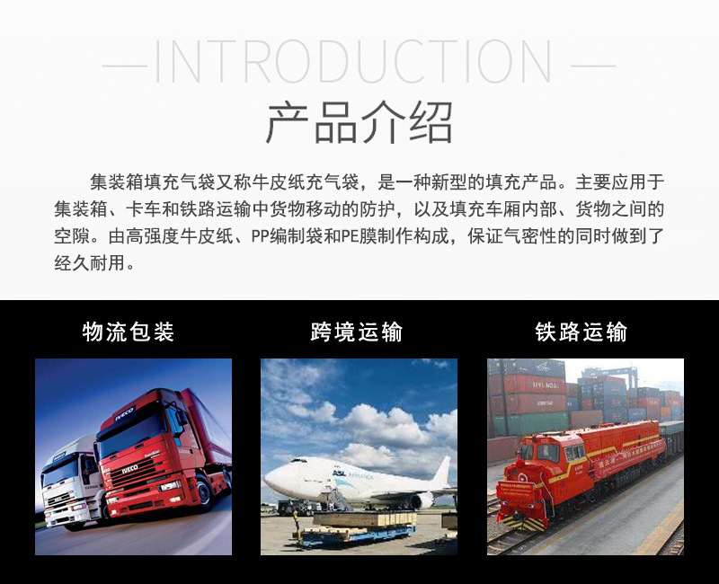 集装箱充气袋牛皮纸填充空气袋防震气垫袋货柜防撞缓冲气囊袋