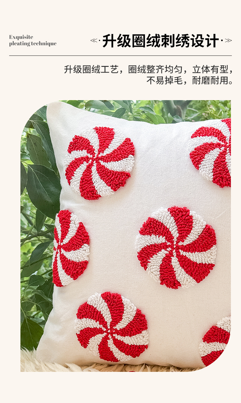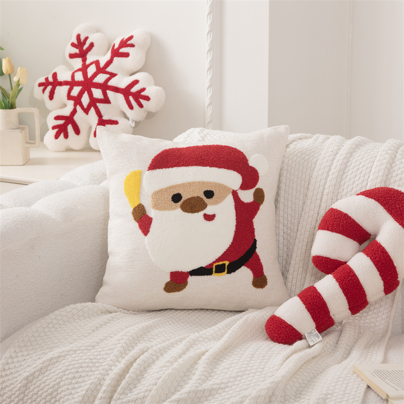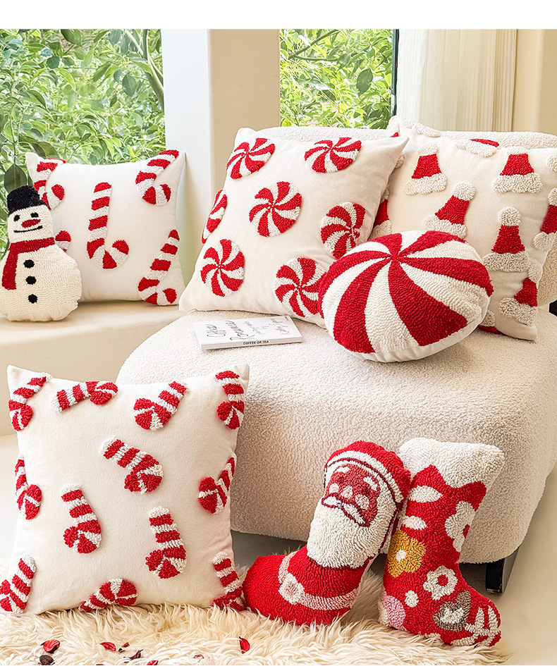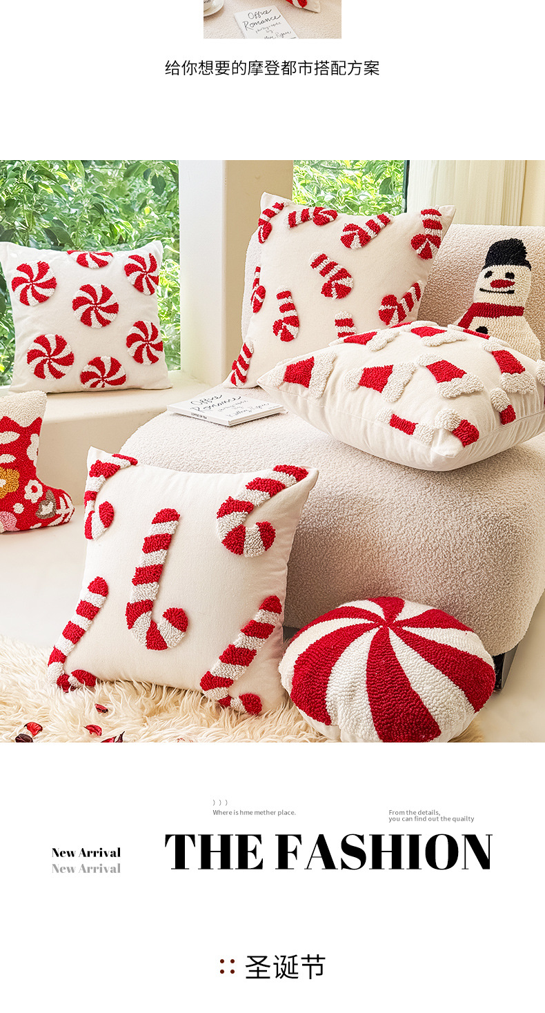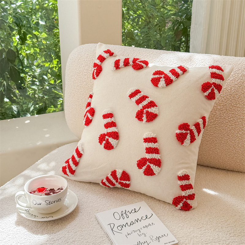 新款圈绒北欧ins风圣诞节抱枕套圣诞麋鹿拐杖跨境家居沙发靠垫