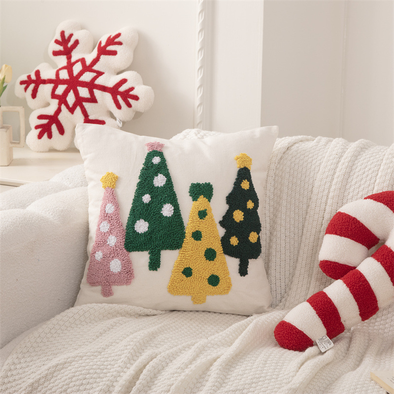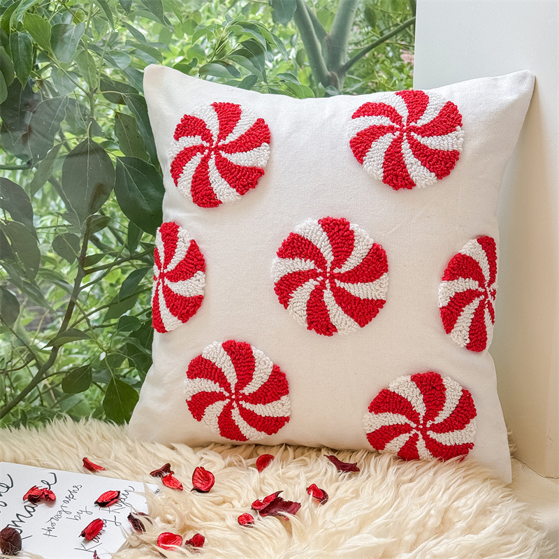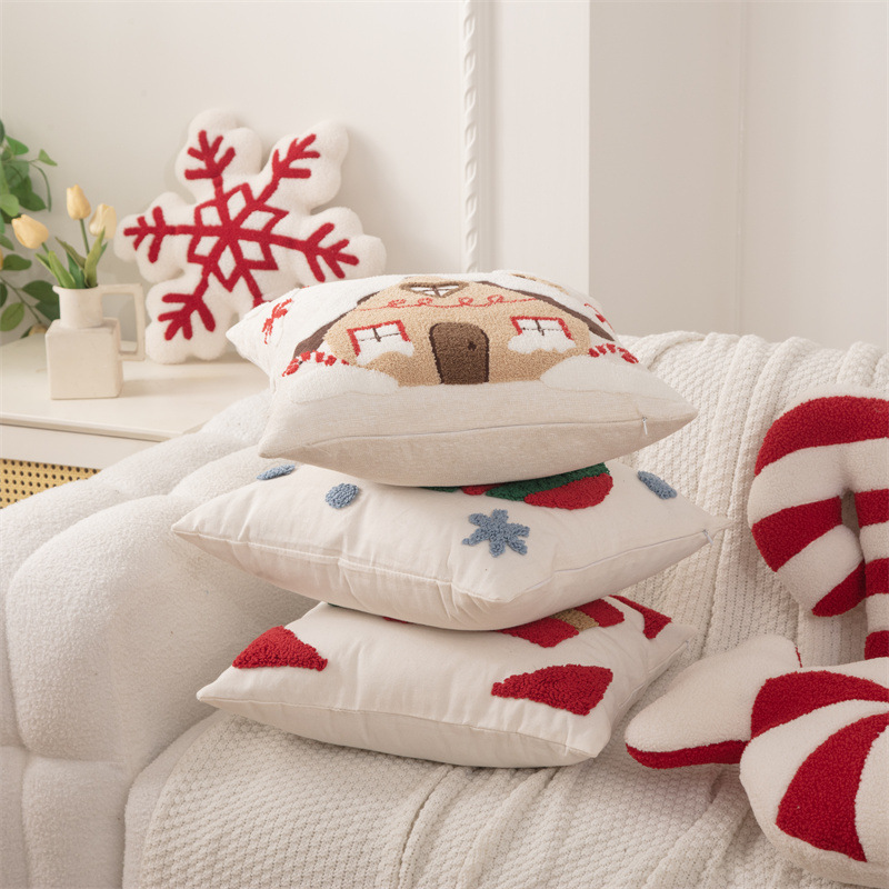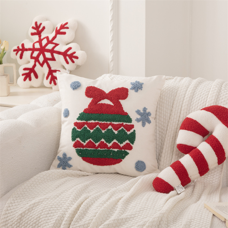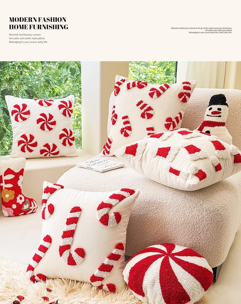 新款圈绒北欧ins风圣诞节抱枕套圣诞麋鹿拐杖跨境家居沙发靠垫