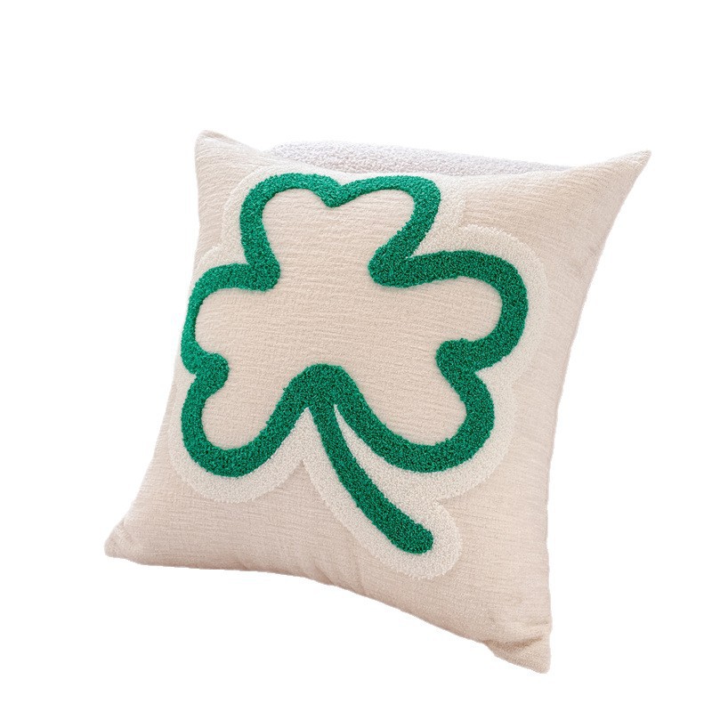 轻奢奶油绿色叶子跨境圣帕特里克节三叶草抱枕套沙发装饰幸运草