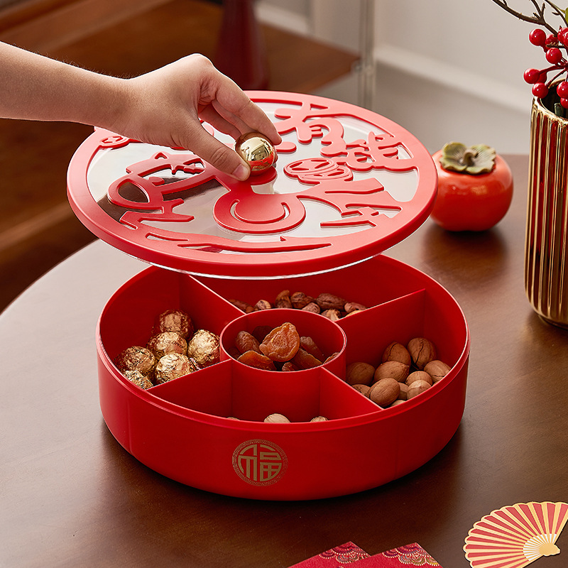 新年糖果盒2025过年零食摆放盘家用客厅年货瓜子干果盘红色水果盘
