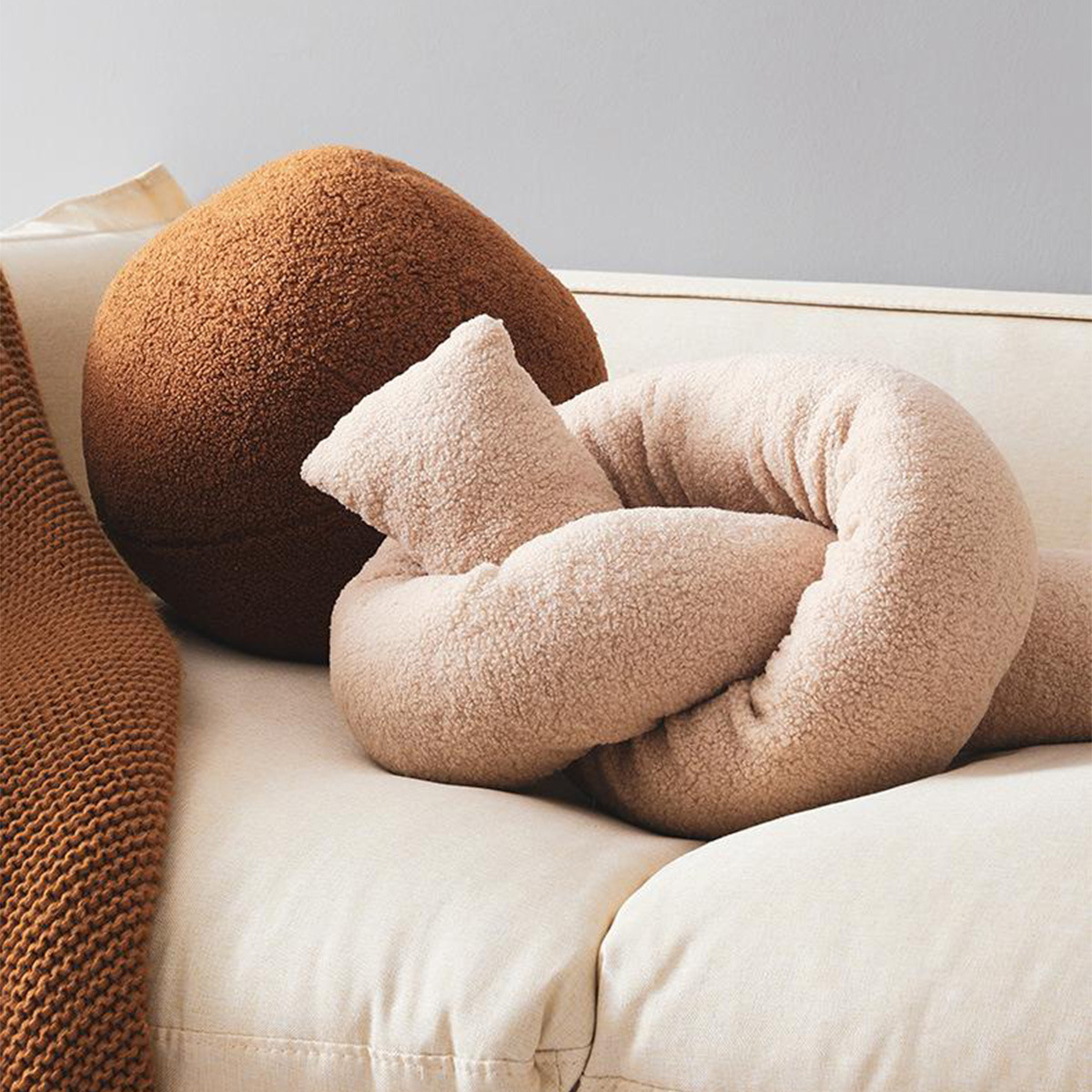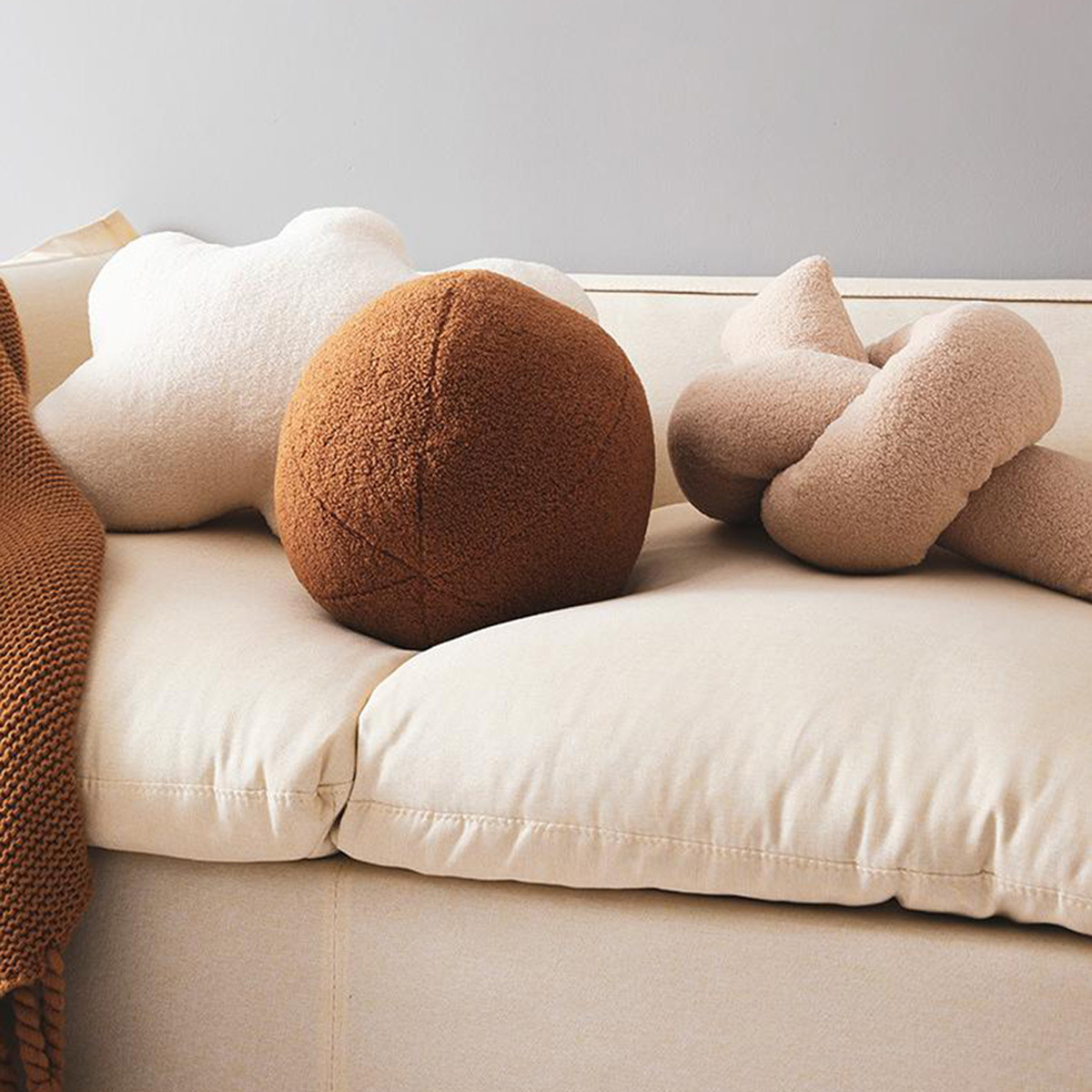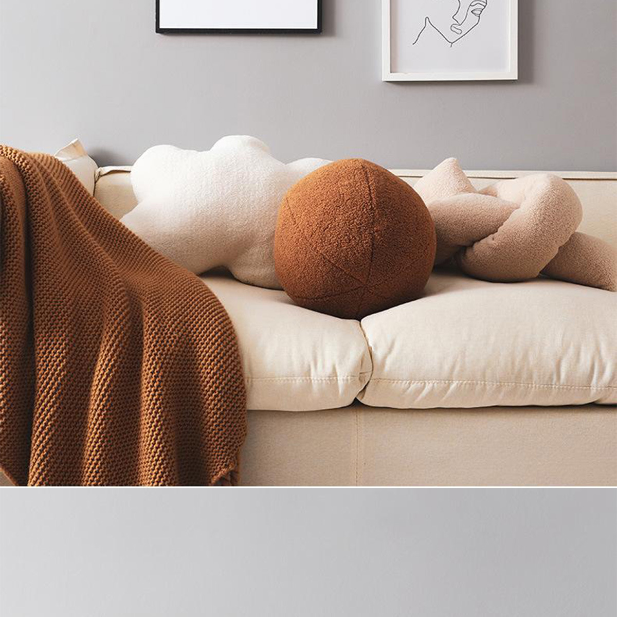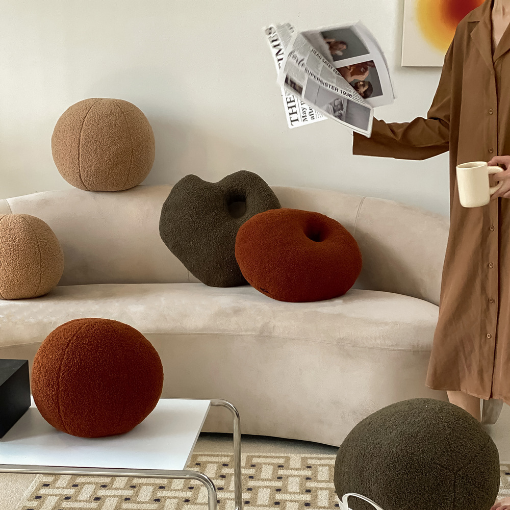 创意圆球家居抱枕甜甜圈毛绒月亮靠枕沙发靠垫女生打结抱枕批发