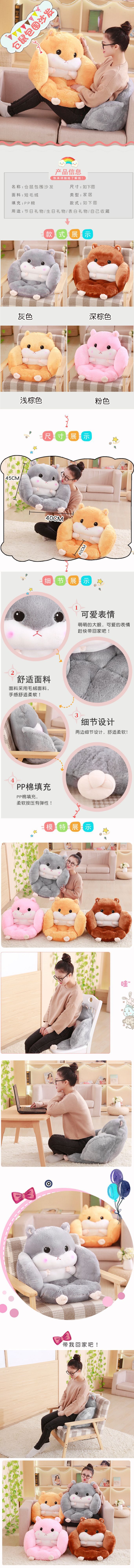 毛绒玩具可爱仓鼠半包围坐垫独角兽恐龙胡萝卜抱枕坐垫椅垫沙发垫