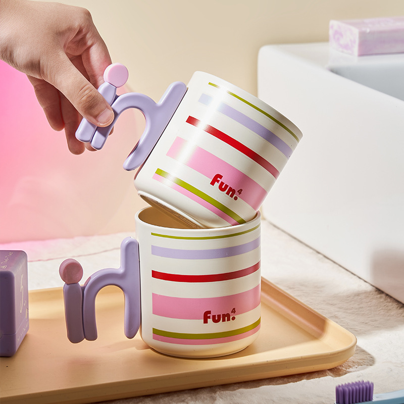 高颜值条纹漱口杯子刷牙杯洗漱杯家用情侣牙具牙缸牙刷杯放肆hi杯