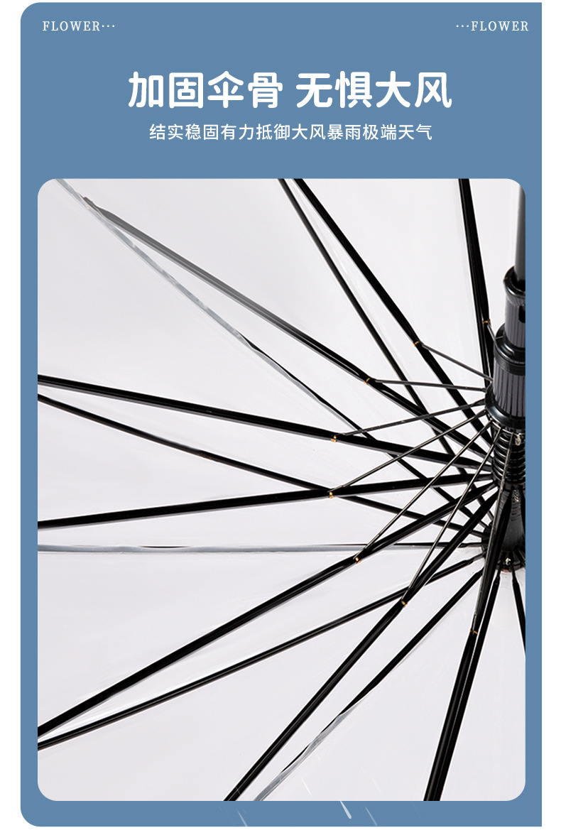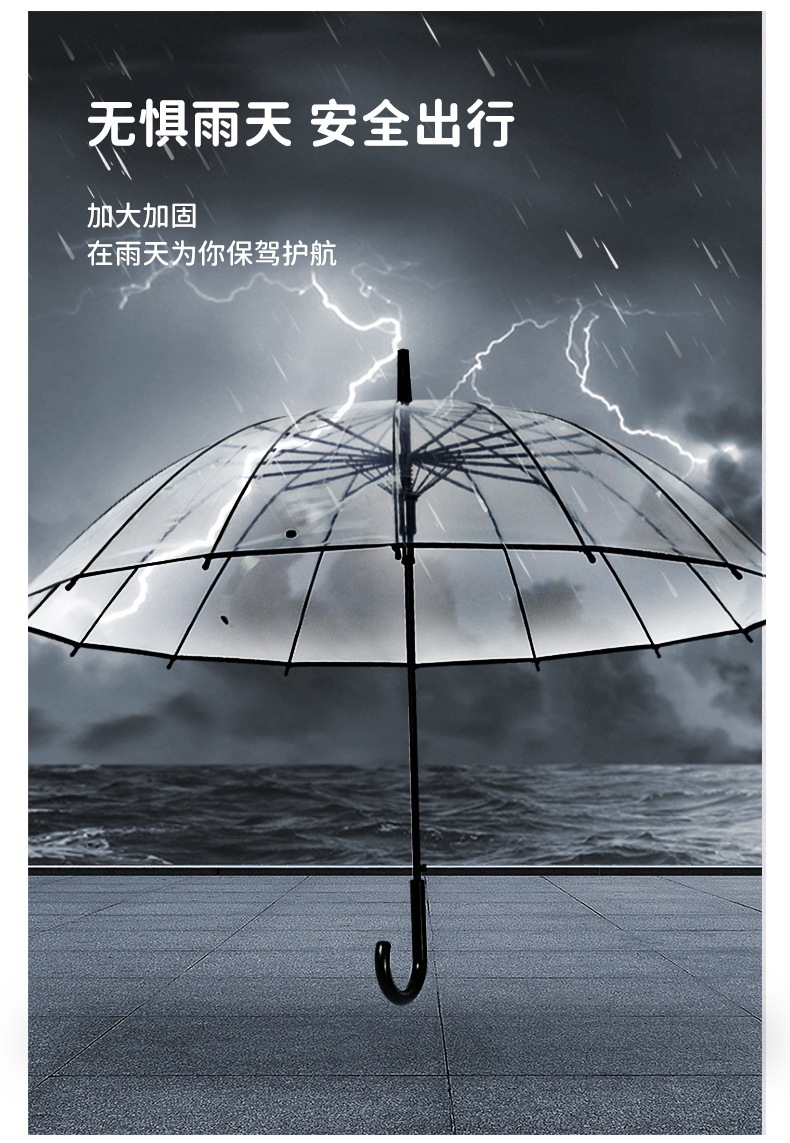 16-rib long-handled transparent umbrella-black(16骨长柄透明伞-黑色) USD $2.87 8139 piece available