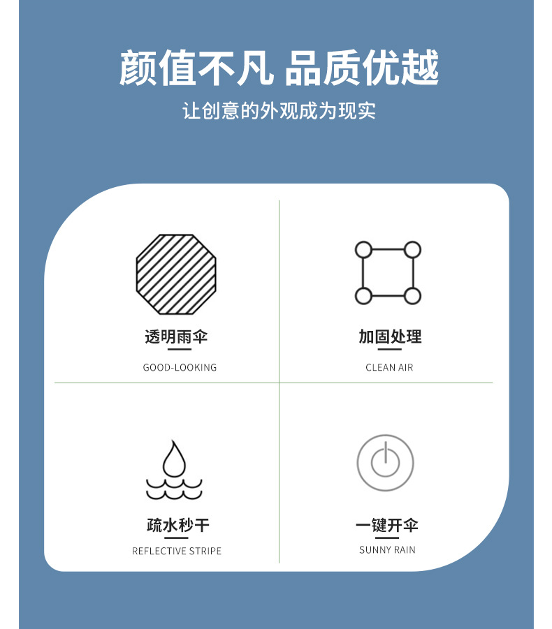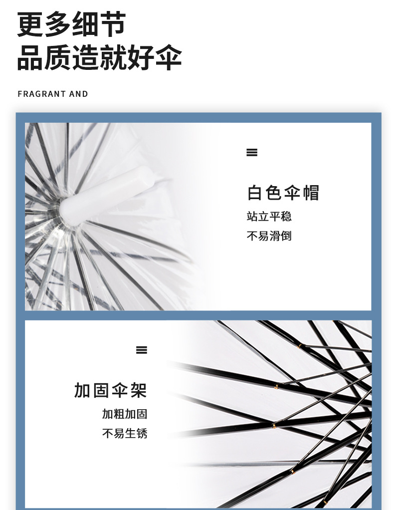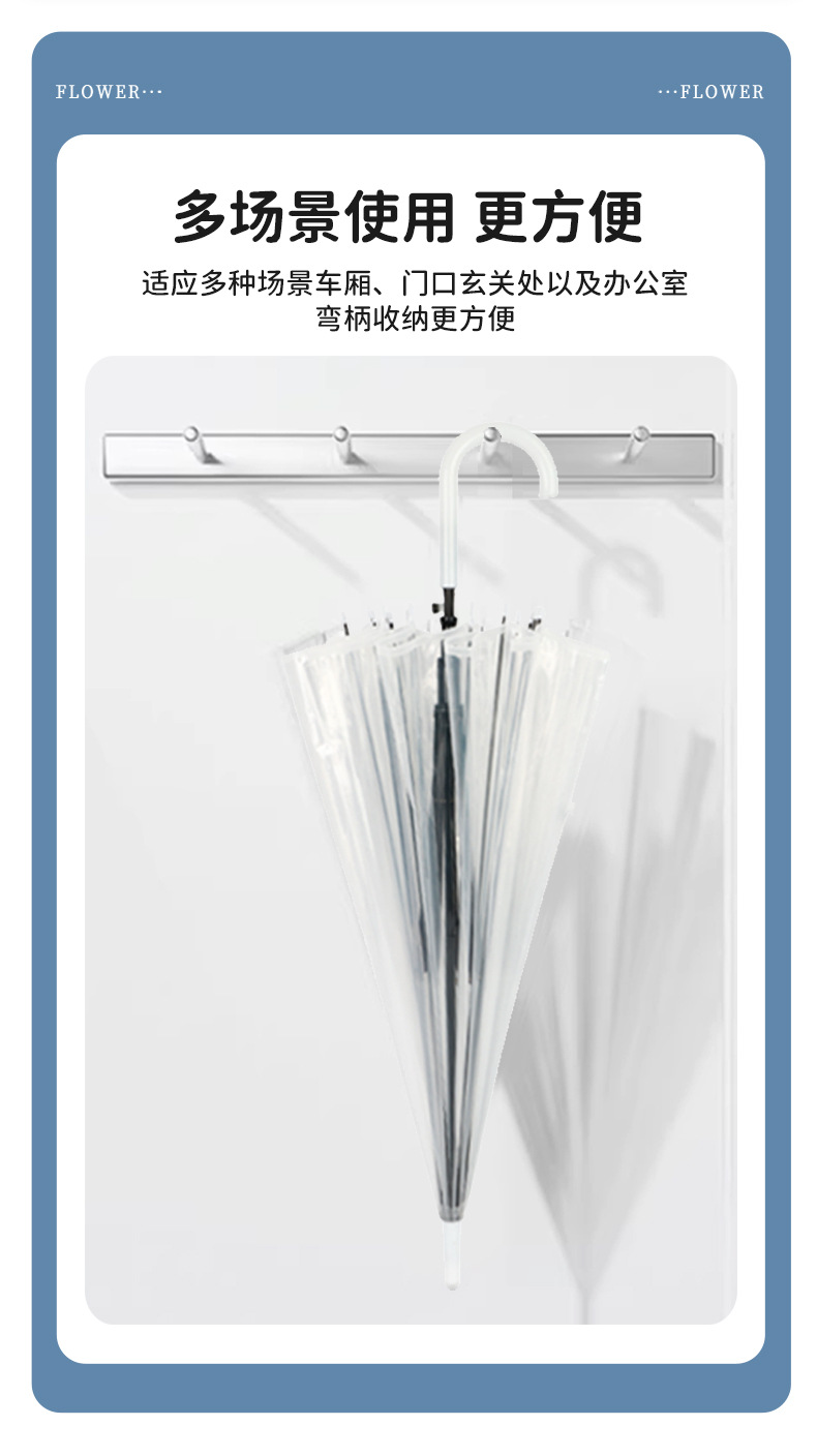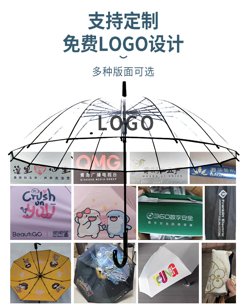 网红同款透明伞直杆伞自动长柄伞广告雨伞定制logo图案16骨PVC