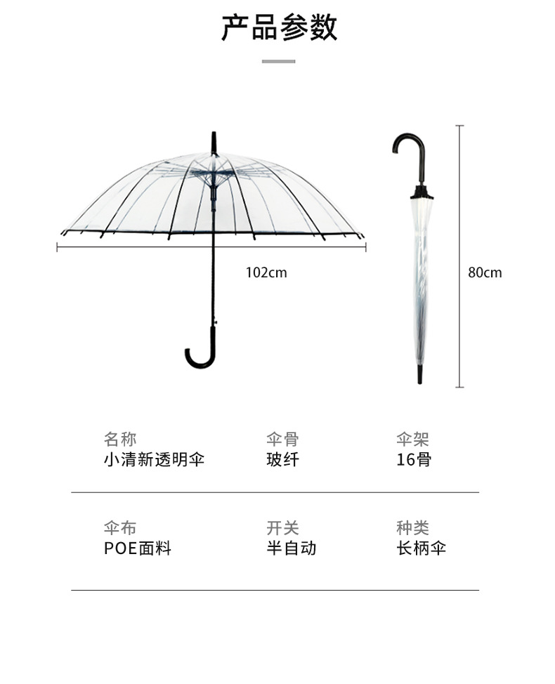 8骨长柄透明伞-黑色 USD $1.73 7980 piece available