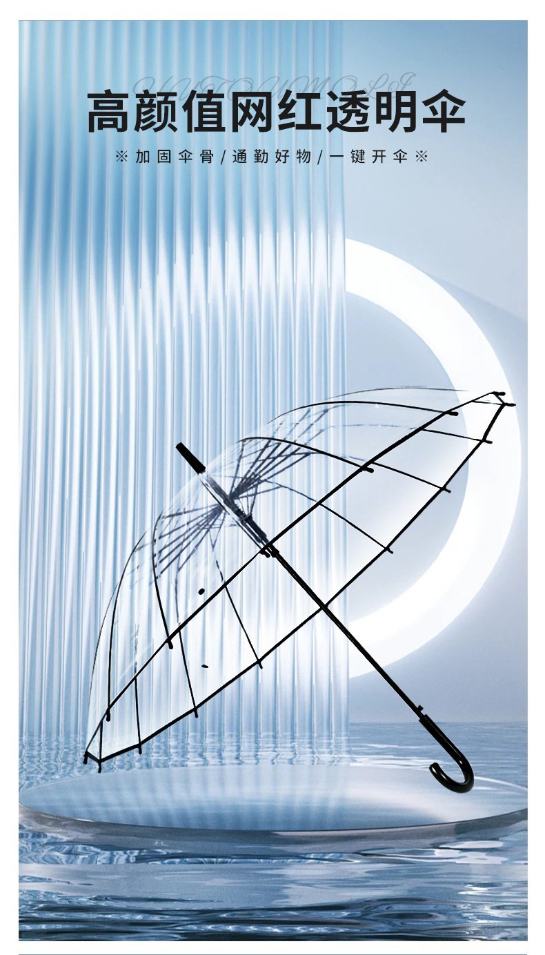 internet celebrity same style transparent umbrella straight umbrella automatic long handle umbrella advertising umbrella custom logo pattern 16 bone pvc