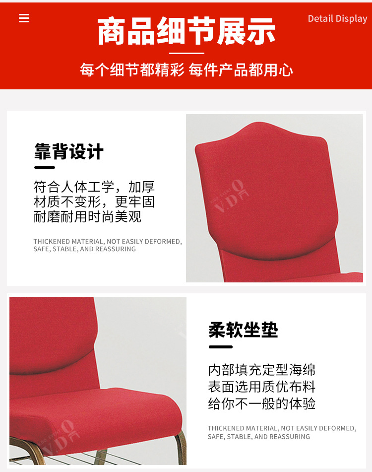 工厂批发祷告礼堂椅子会议室报告厅座椅多功能成人靠背椅子教堂椅