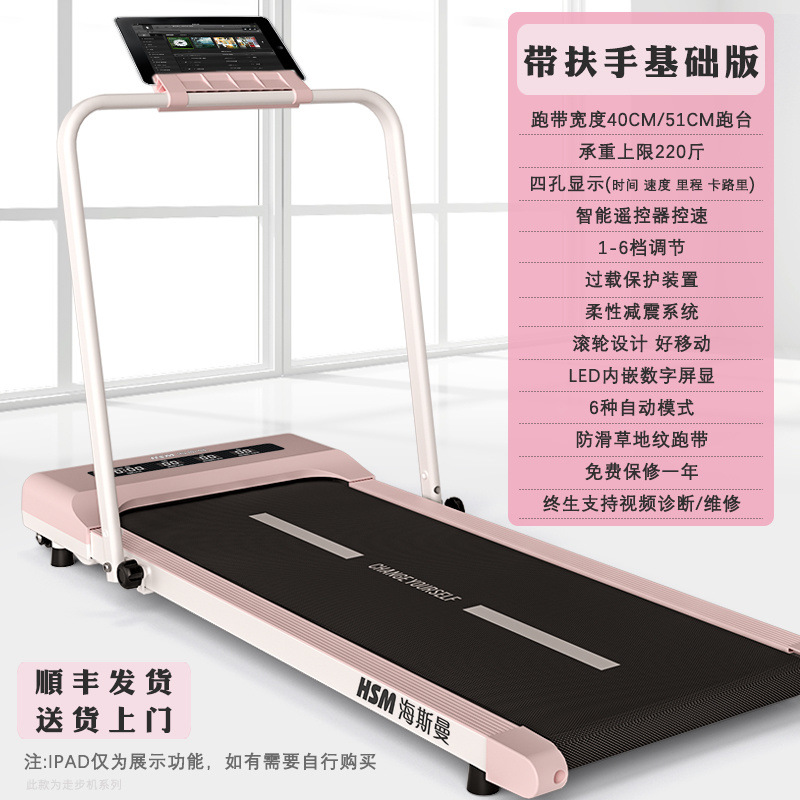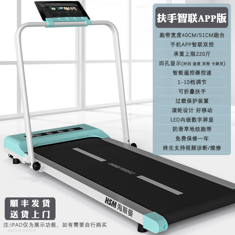 海斯曼简易跑步机家用款小型室内家庭便携式平板电动走步机厂供应