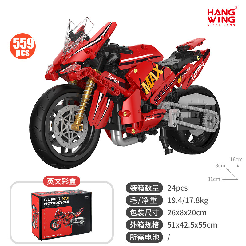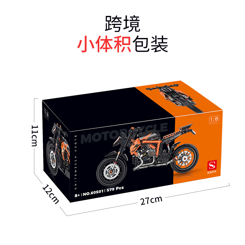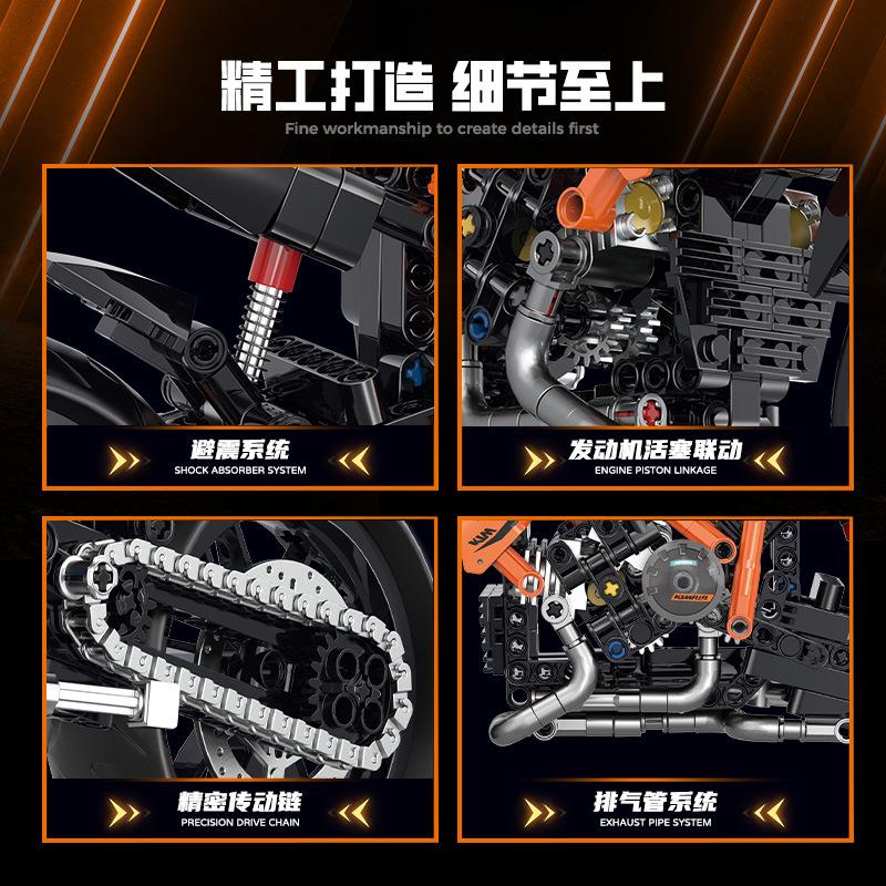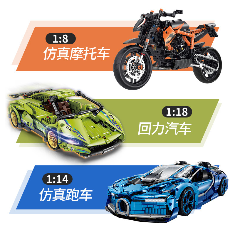 跨境新款摩托车积木玩具1:8科技件拼装积木男孩DIY仿真赛车模型