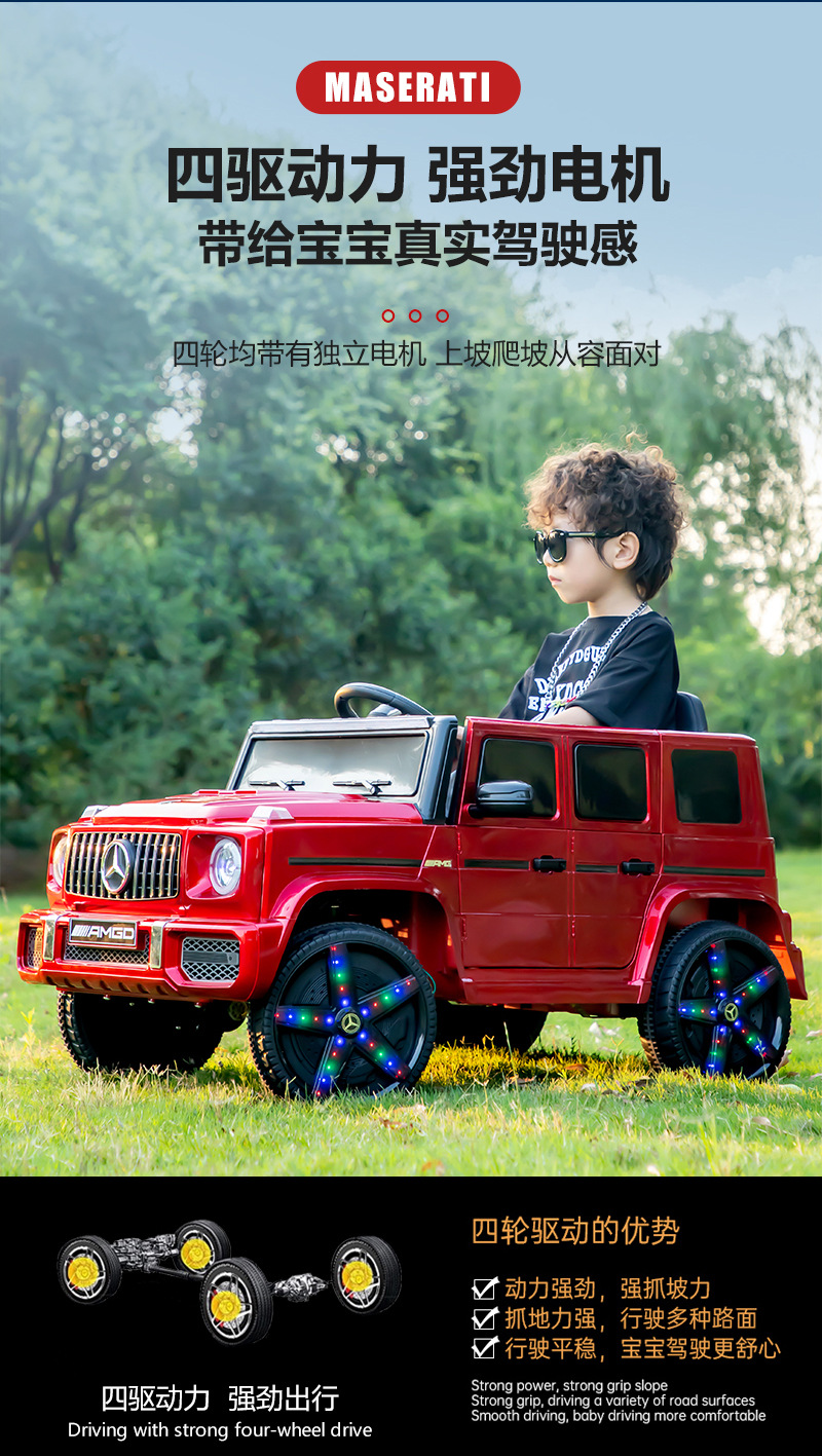 奔驰大g儿童电动汽车越野四轮双驱遥控玩具车小孩双座宝宝童车