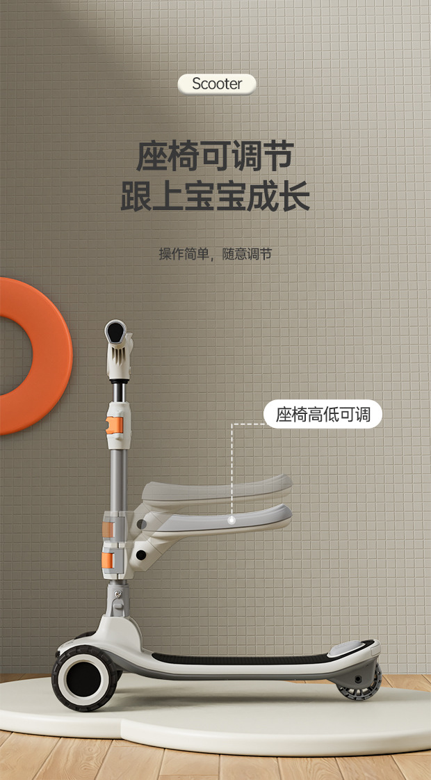 跨境折叠儿童滑板车2-8岁闪光溜溜车宝宝可坐滑行车大童玩具车