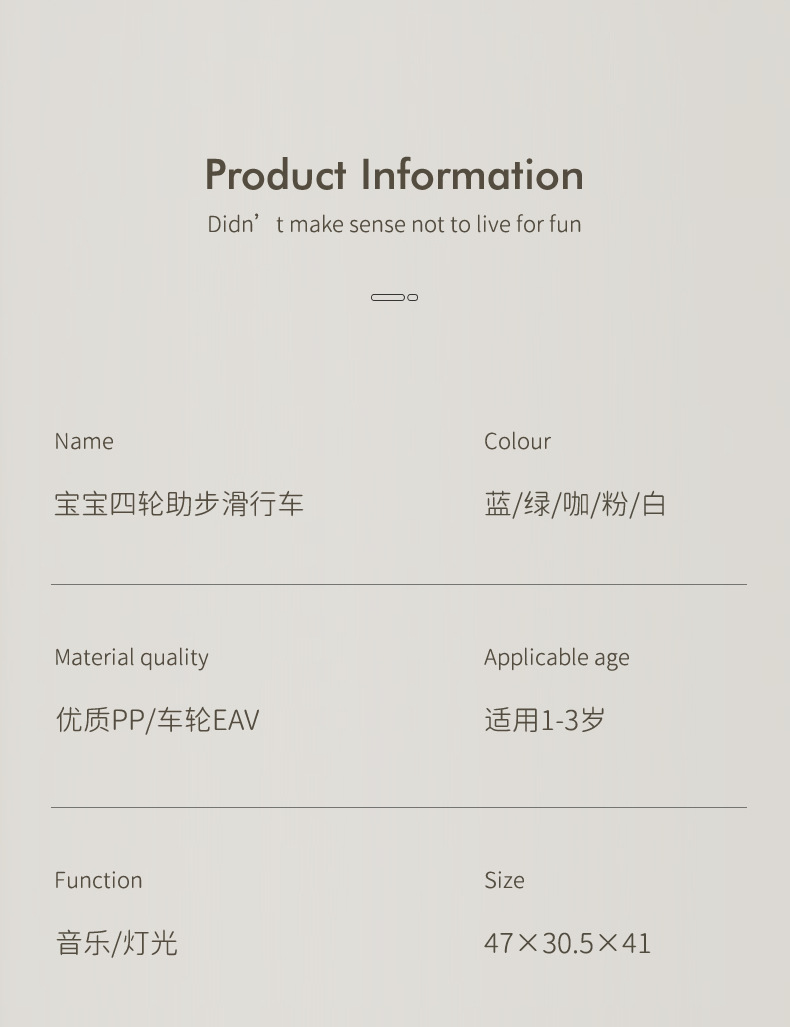 儿童平衡车1-3岁 小孩无脚踏溜溜车滑步车婴儿学步四轮宝宝滑行车