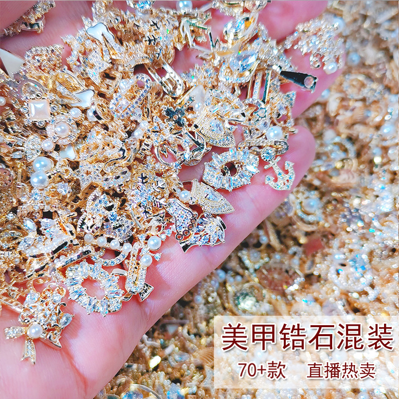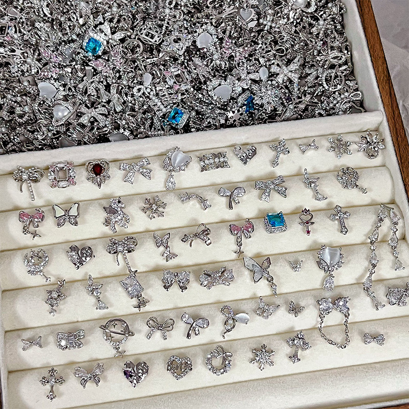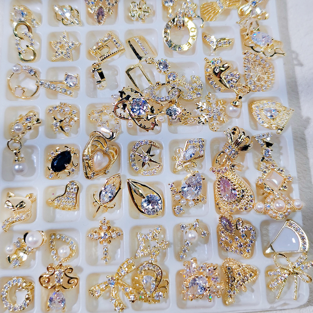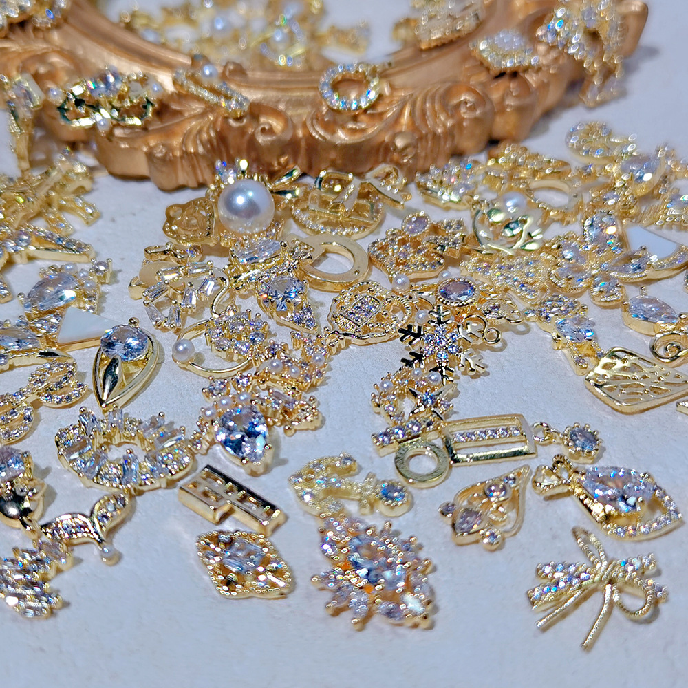 铜镶美甲饰品大杂烩锆石蝴蝶珍珠蝴蝶结镶钻指甲装饰配饰法式风