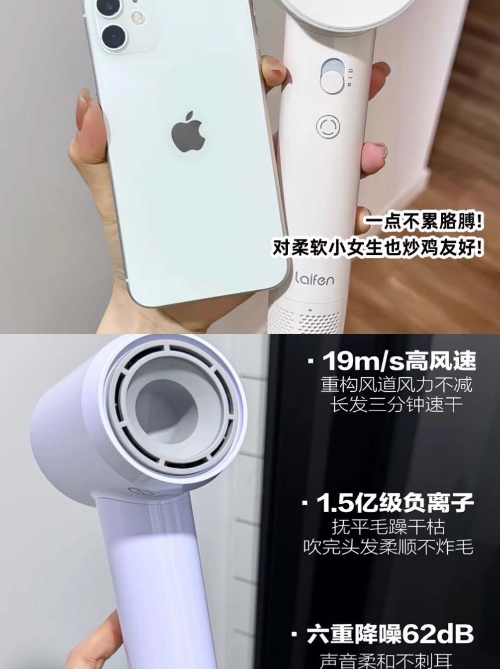 laifen徕芬高速吹风机se lite 莱芬大风力速干低噪负离子吹风机