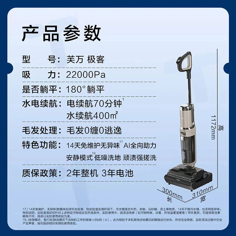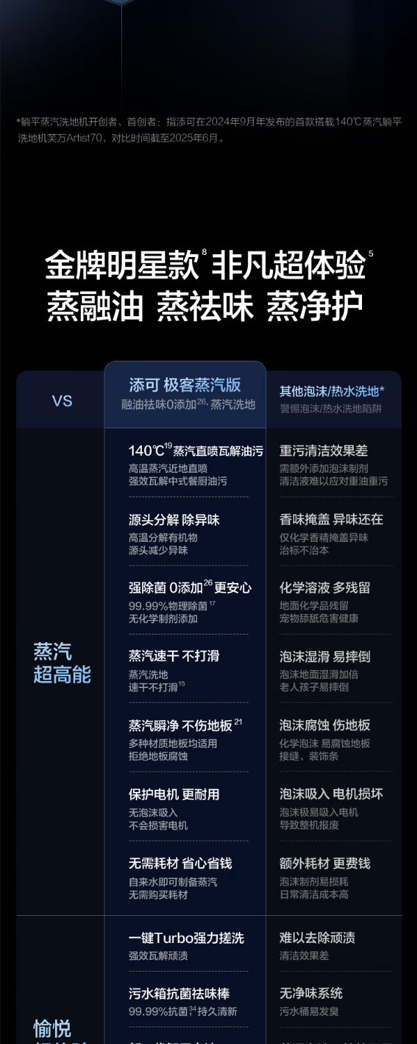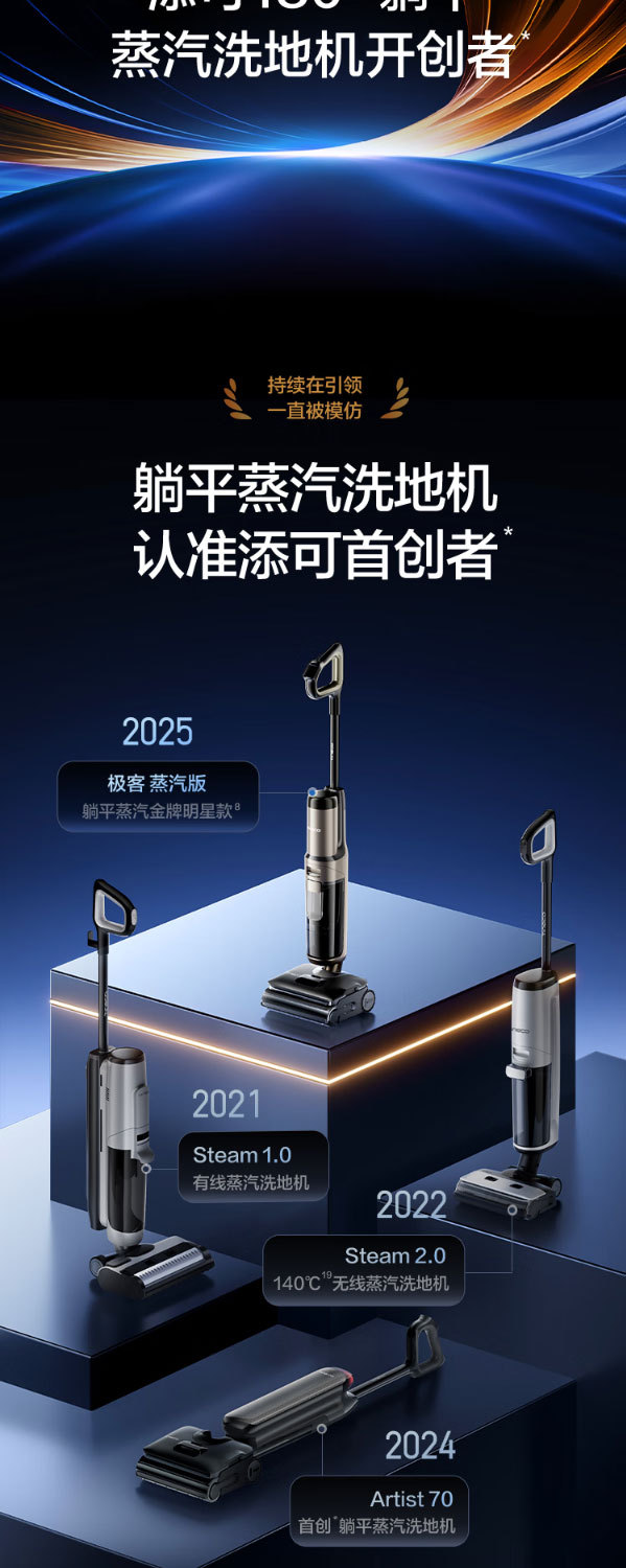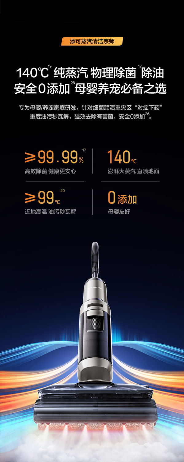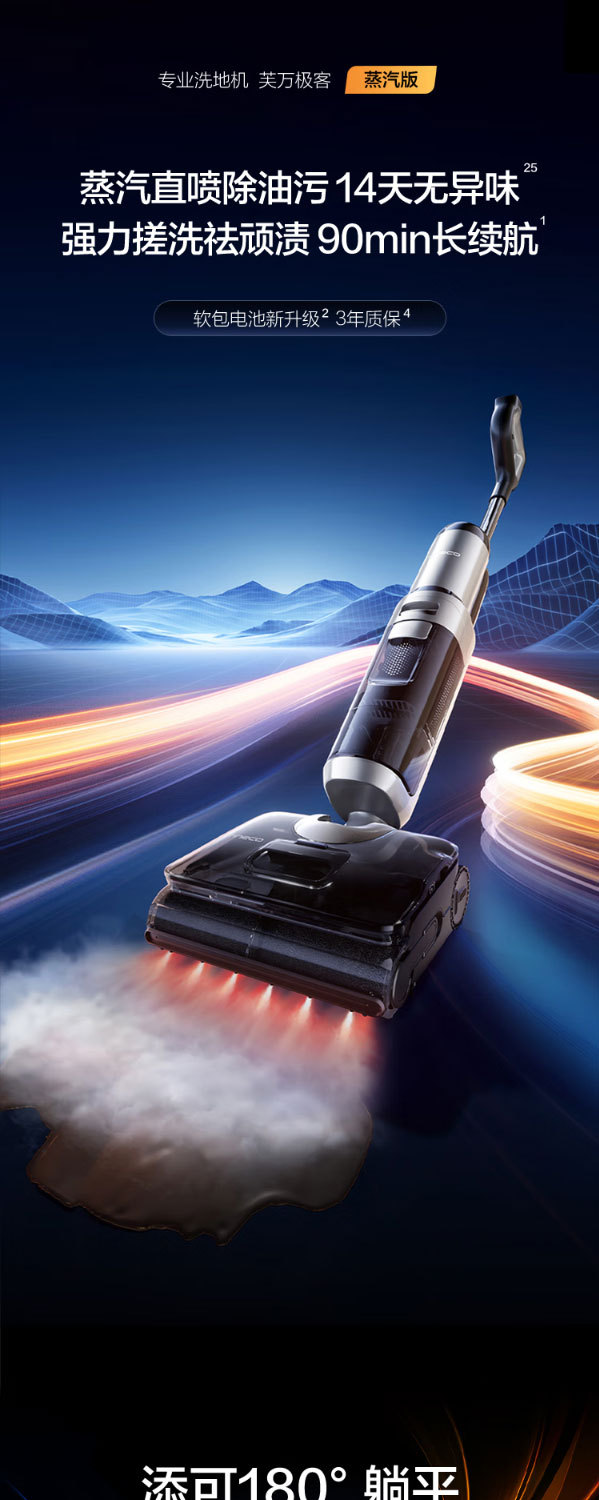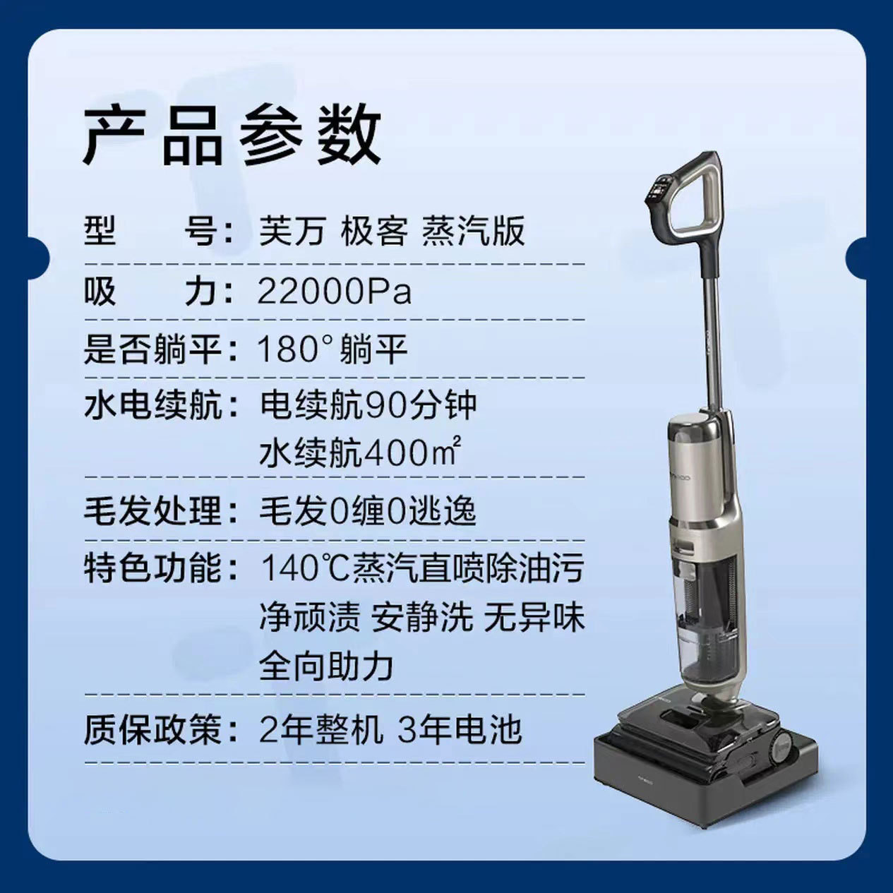 添可芙万极客蒸汽版全向助力洗地机 0缠毛躺平洗拖吸一体拖地机