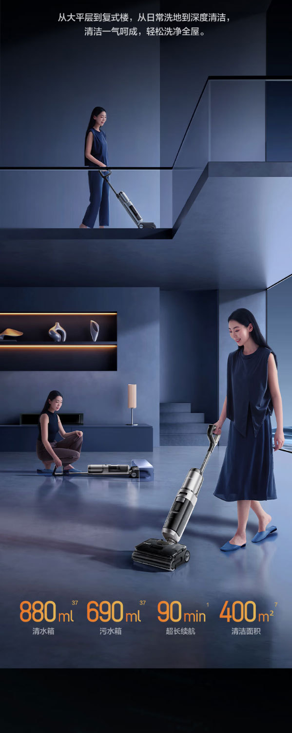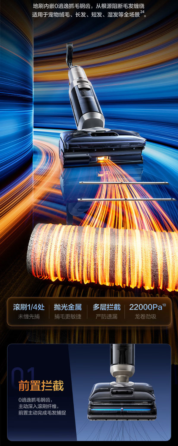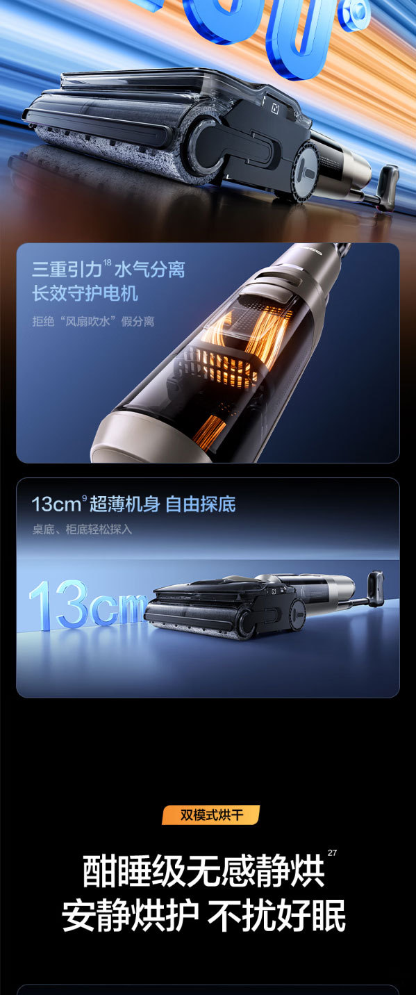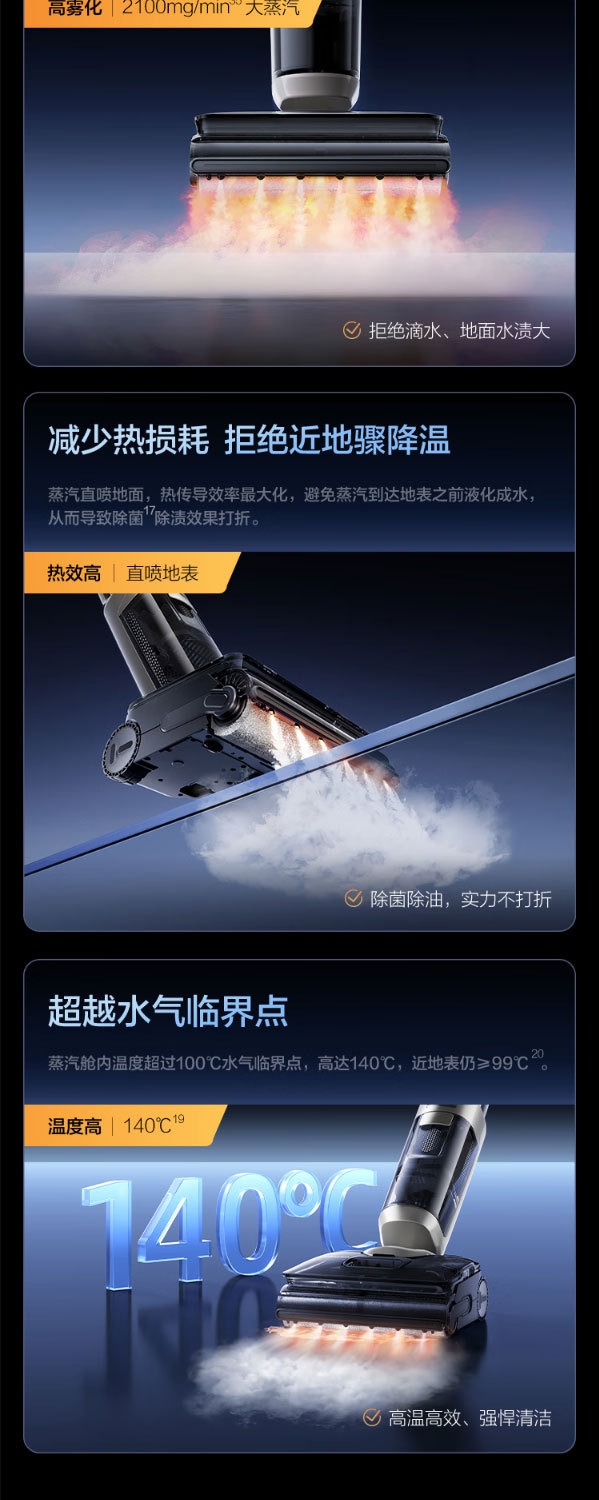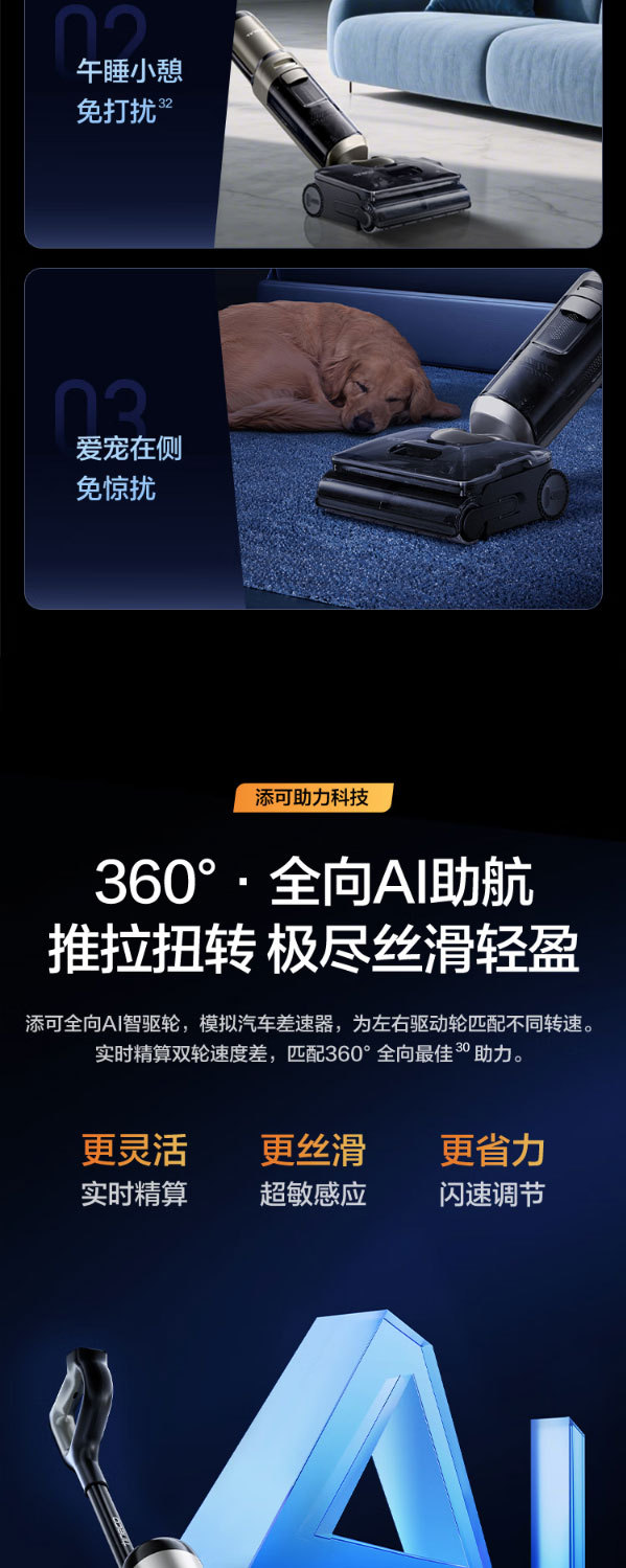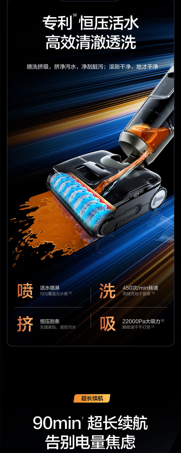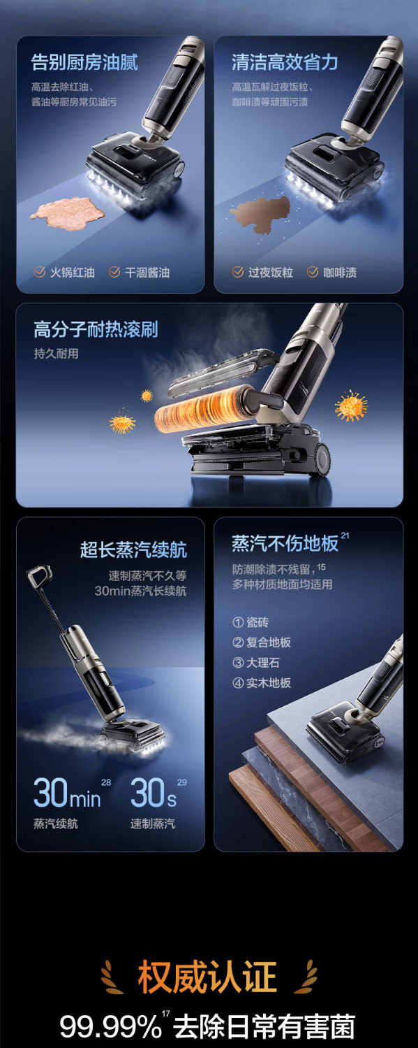 添可芙万极客蒸汽版全向助力洗地机 0缠毛躺平洗拖吸一体拖地机