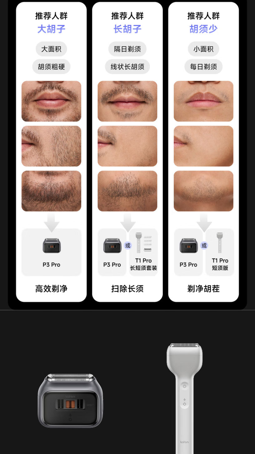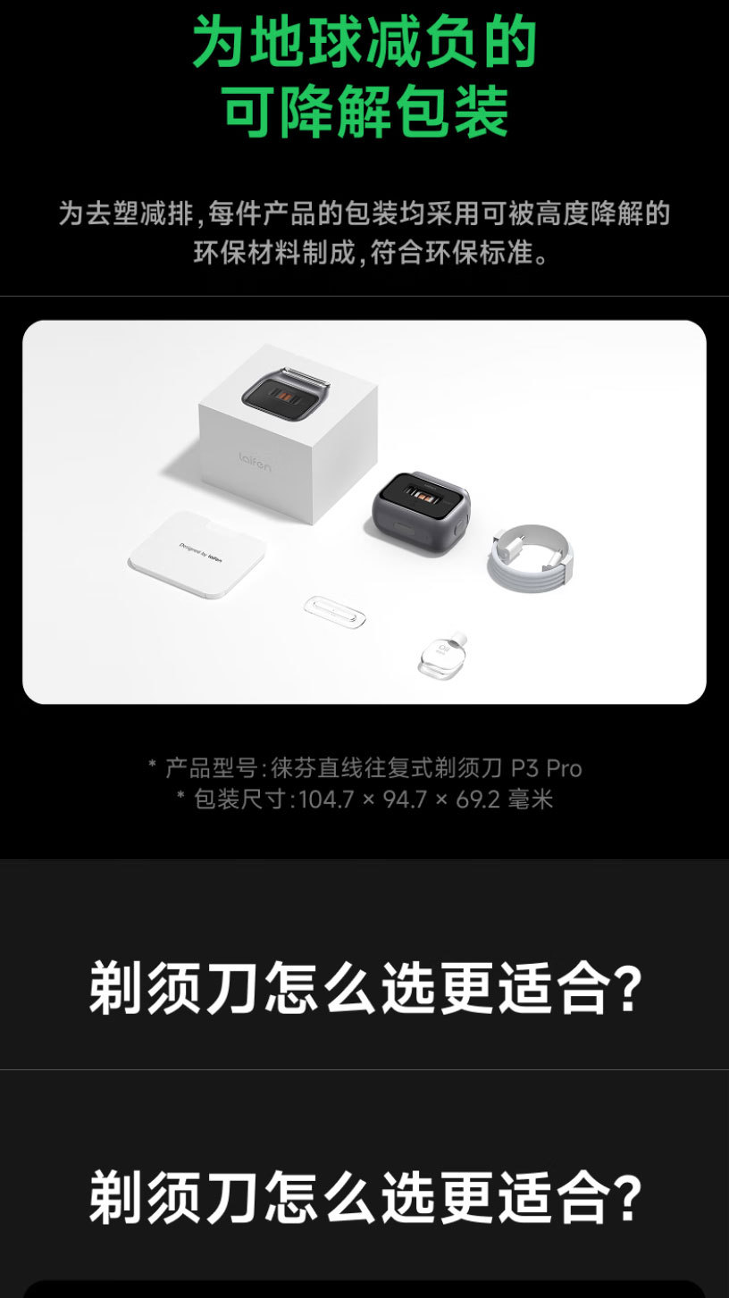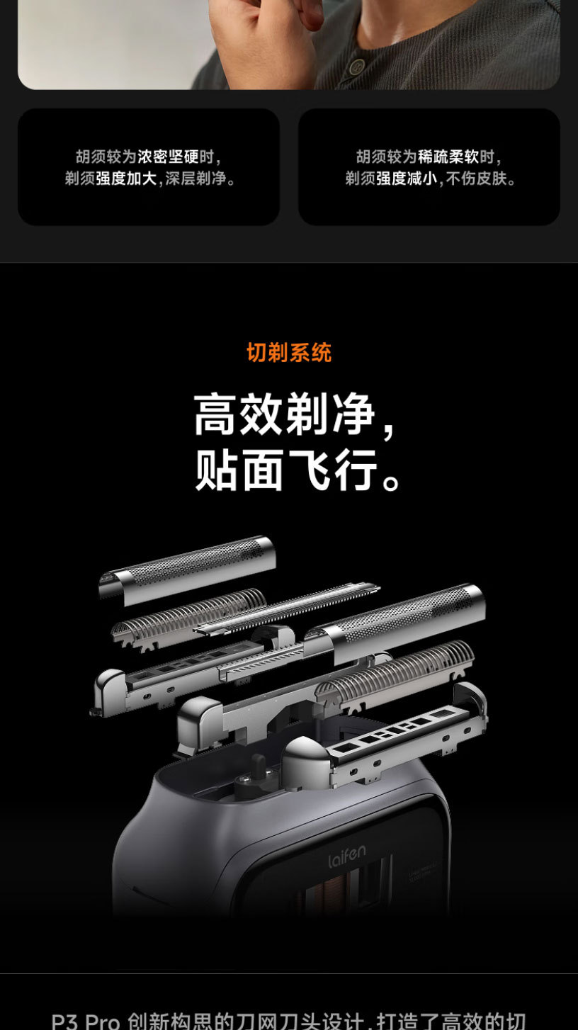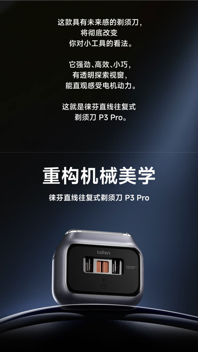 徕芬往复式电动剃须刀P3Pro 深度护理精准剃净全身水洗便携刮胡刀