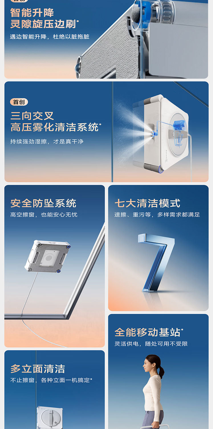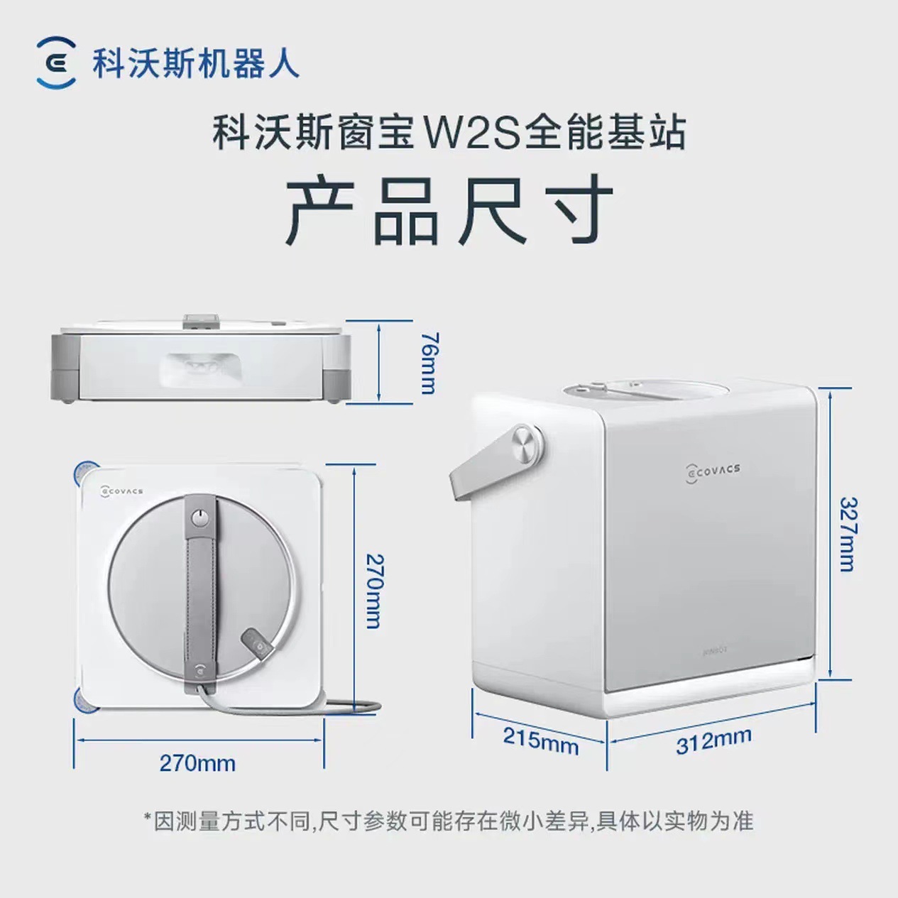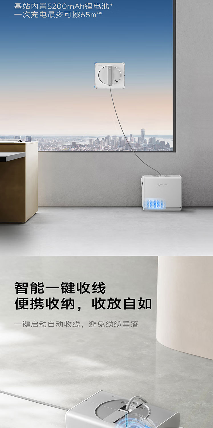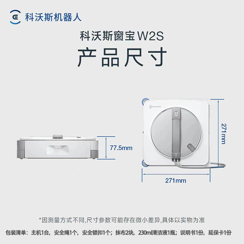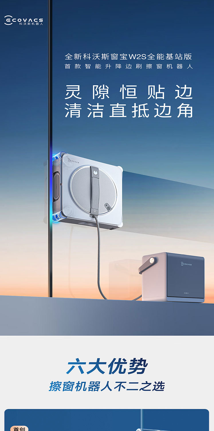 科沃斯擦窗机器人W2S全能基站版 自动擦玻璃喷水湿擦家用擦窗神器