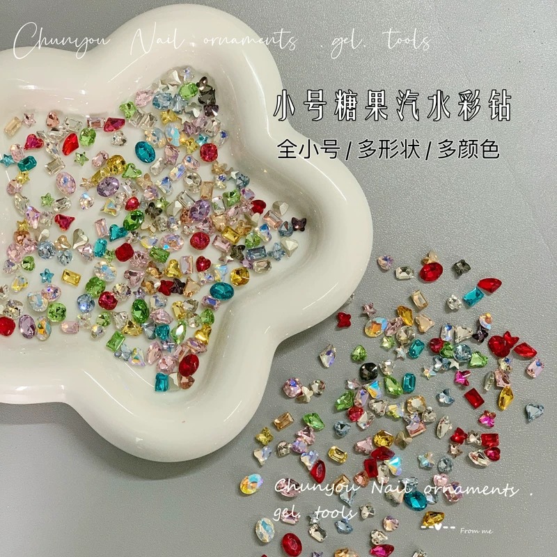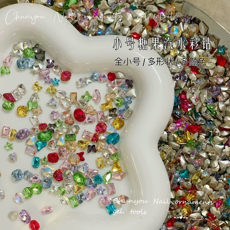 美甲小号彩色钻网红糖果汽水爆闪K9钻大杂烩尖底异形钻指甲装饰品