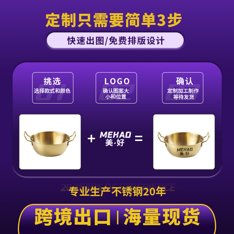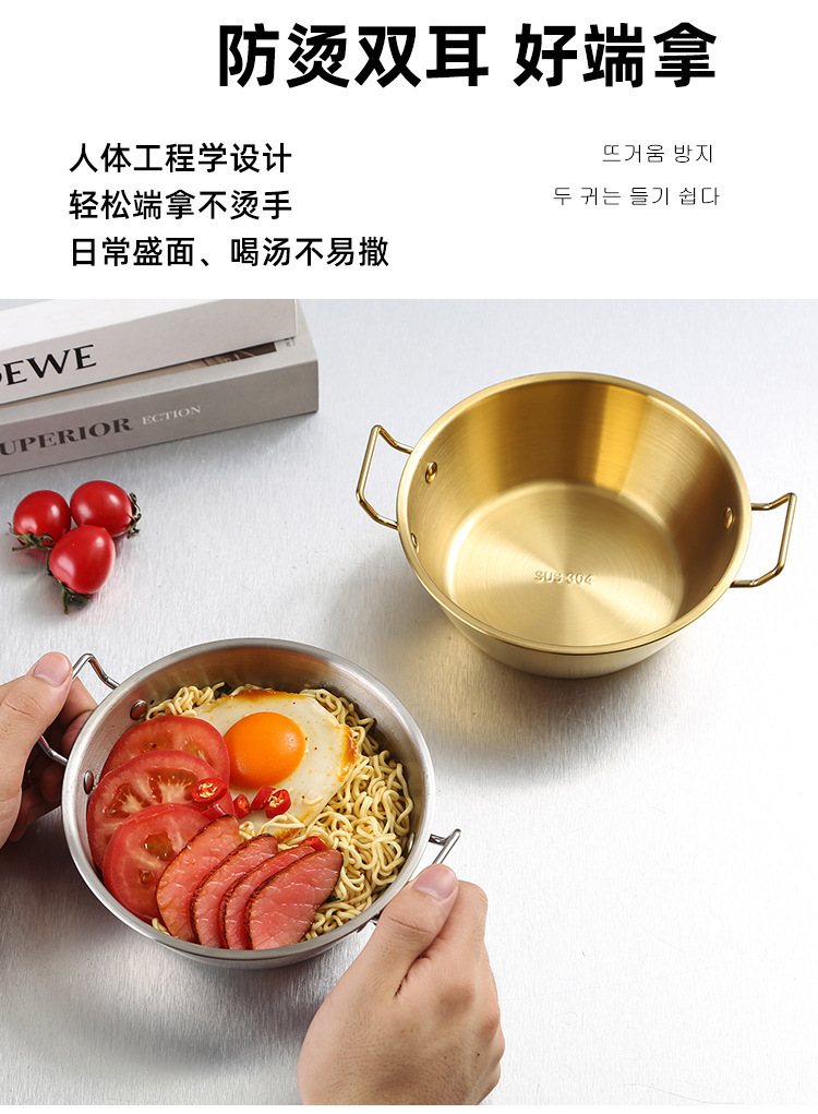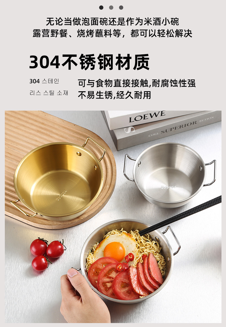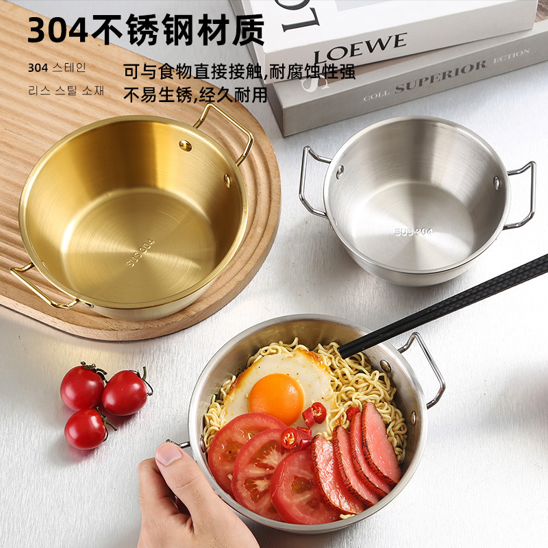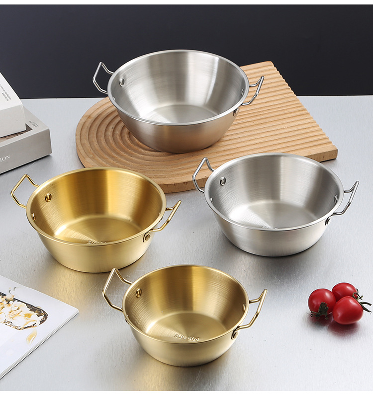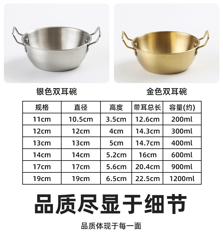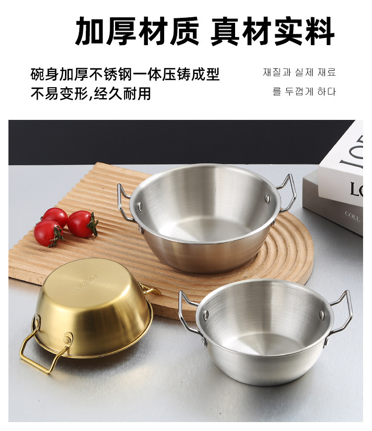 304不锈钢韩式米酒碗加厚带手柄餐厅烤肉店小吃调料双耳泡菜碗