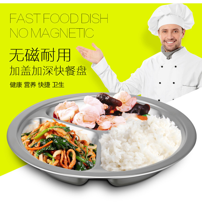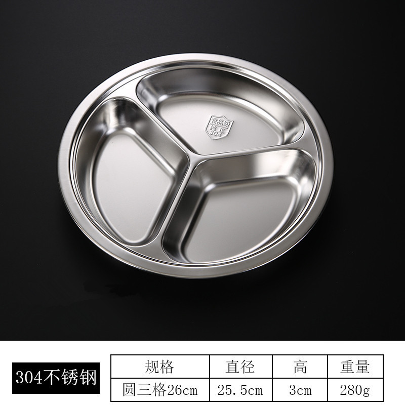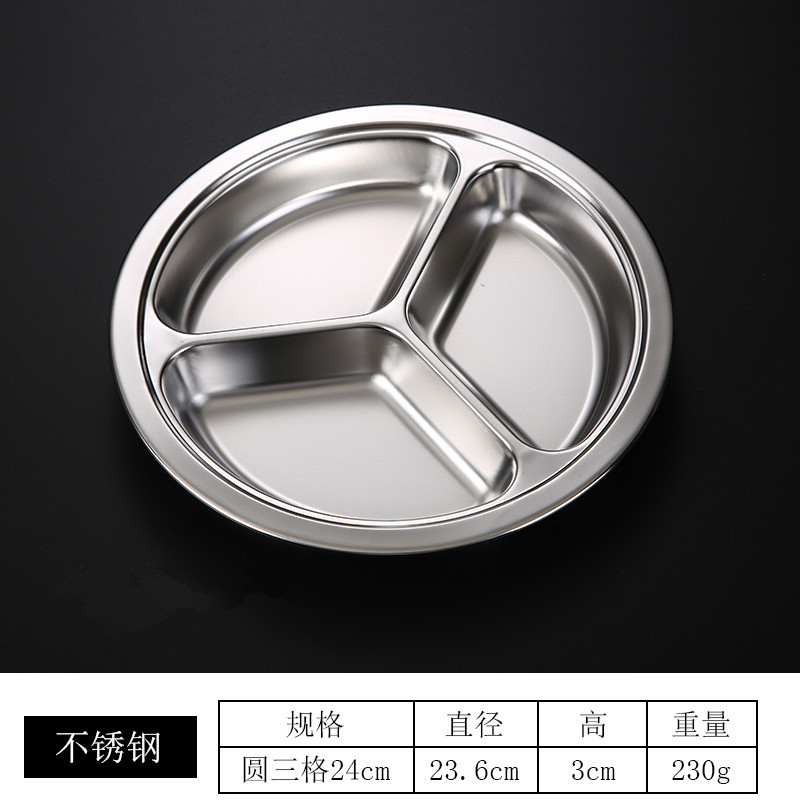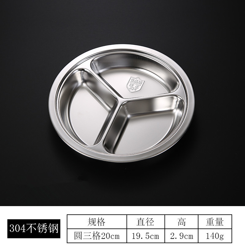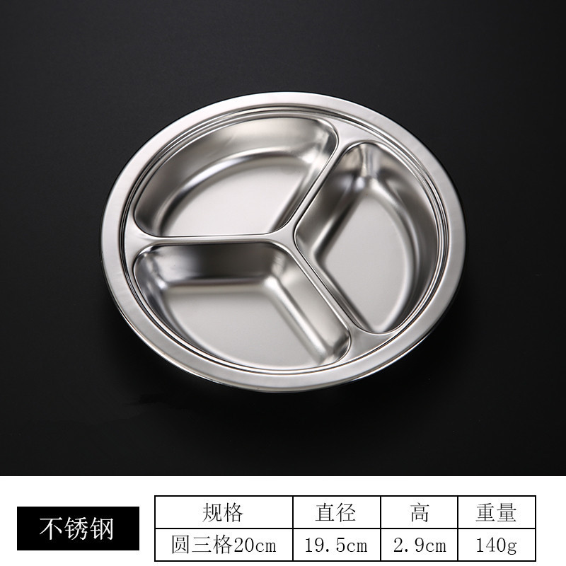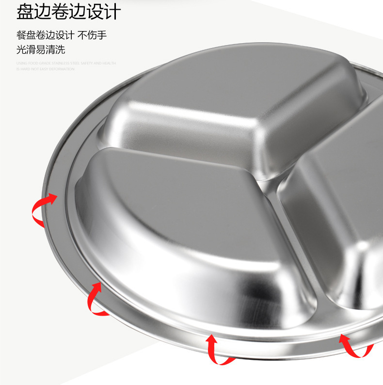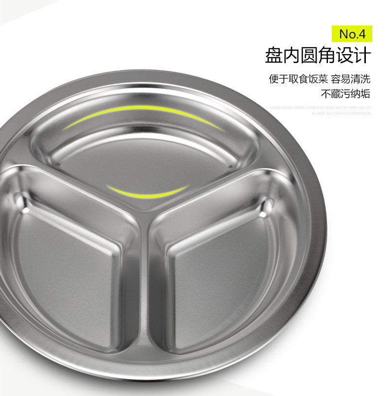 儿童餐盘304不锈钢圆形幼儿园学生食堂分格快餐盘可激光logo