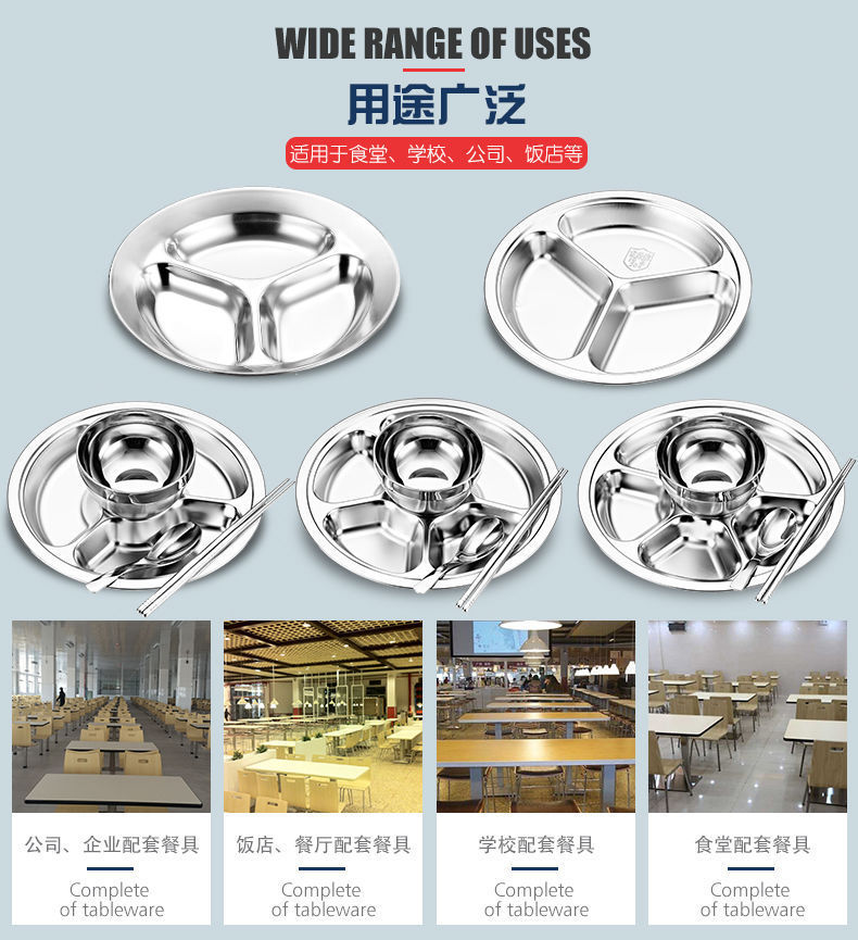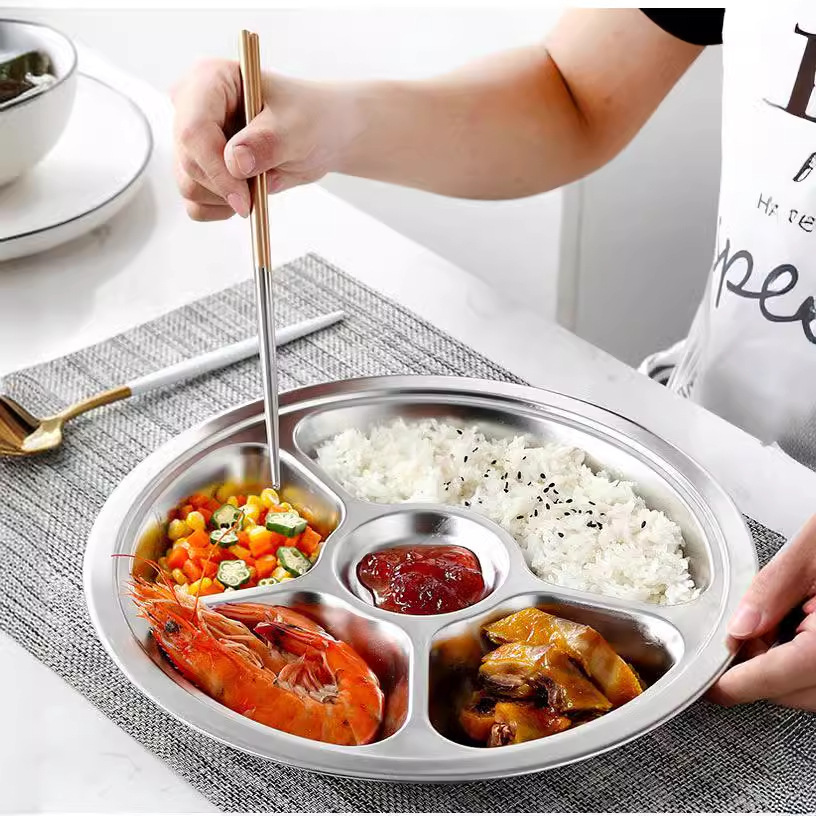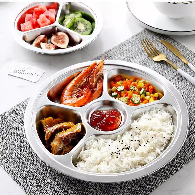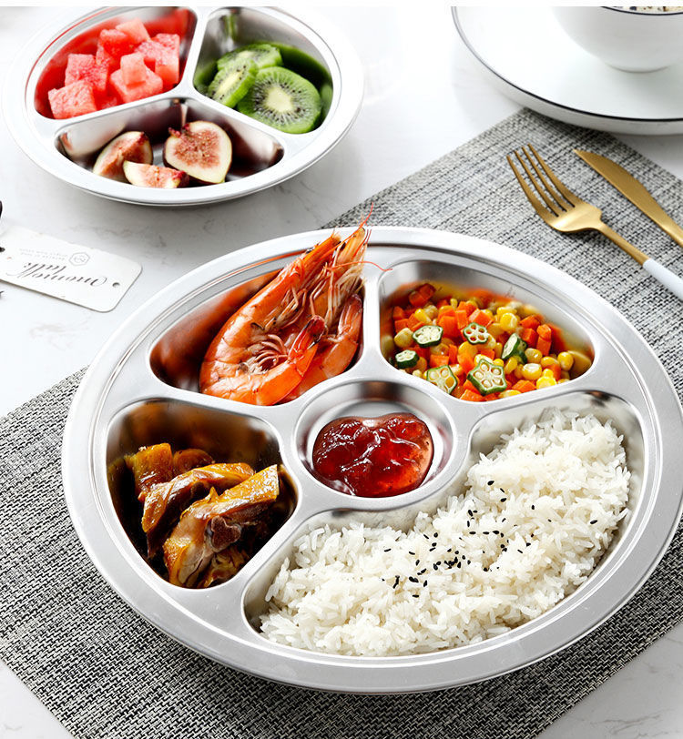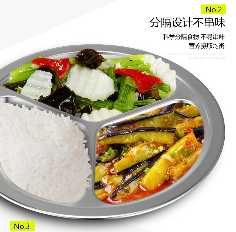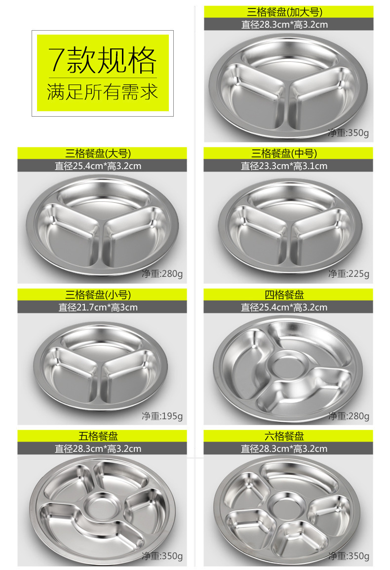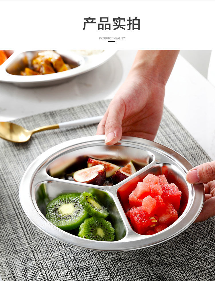儿童餐盘304不锈钢圆形幼儿园学生食堂分格快餐盘可激光logo
