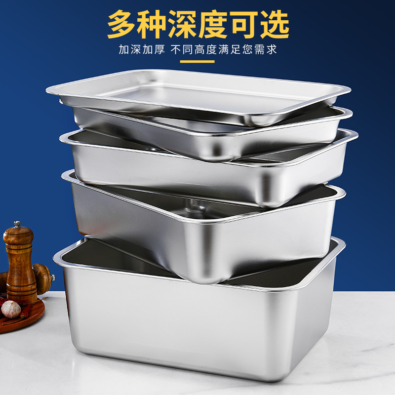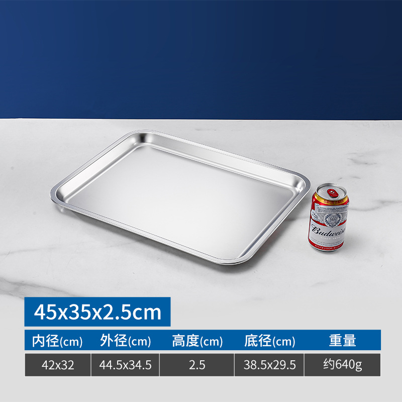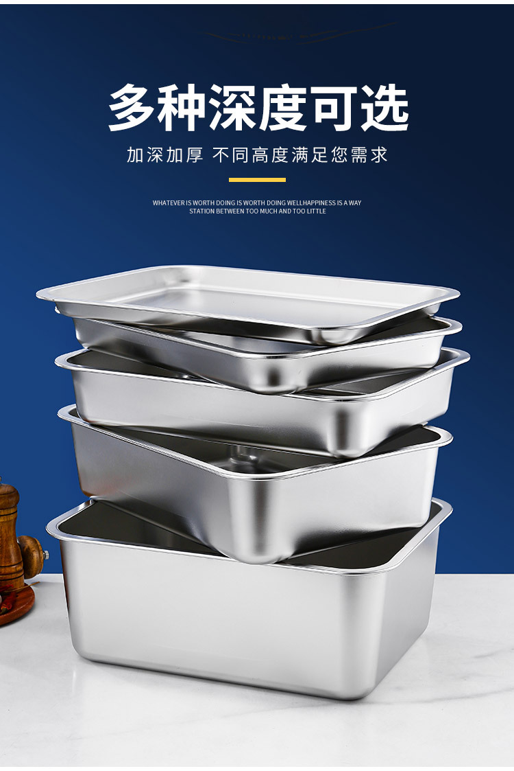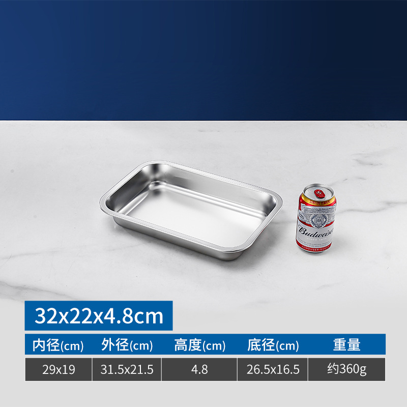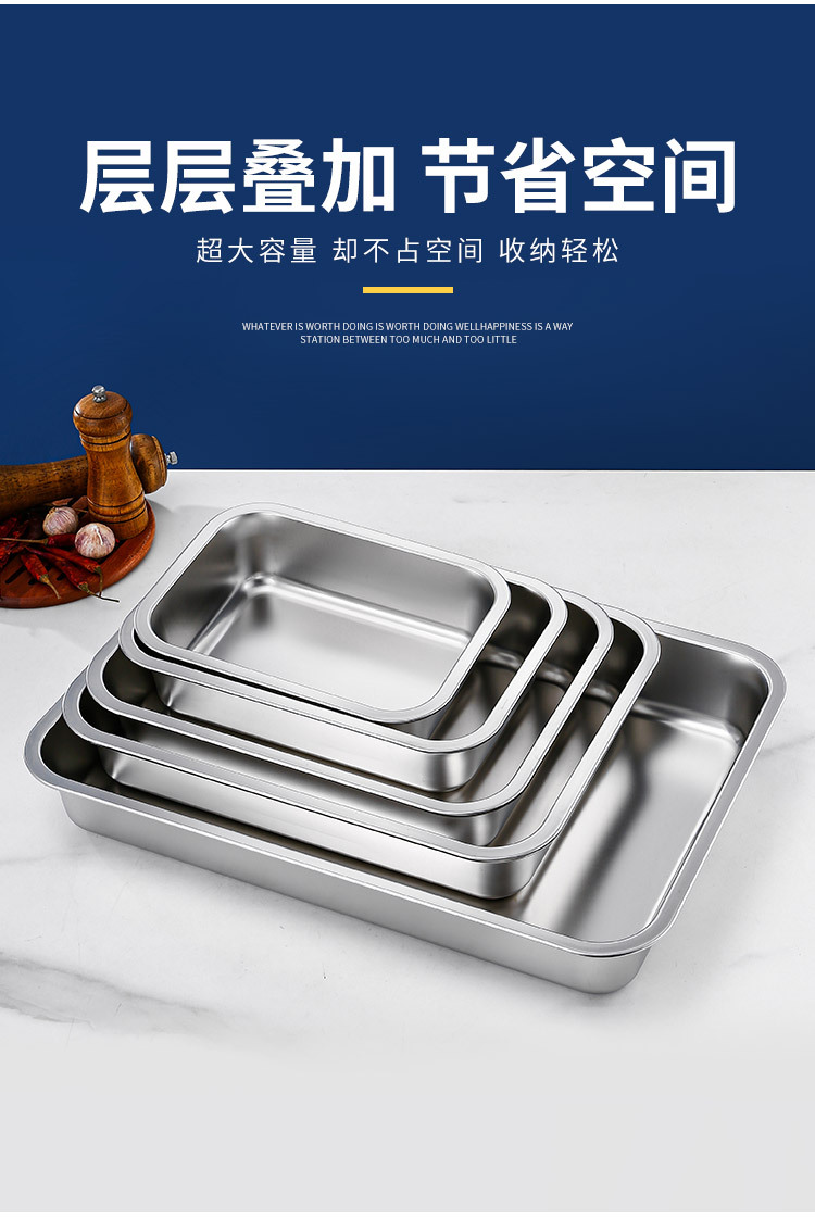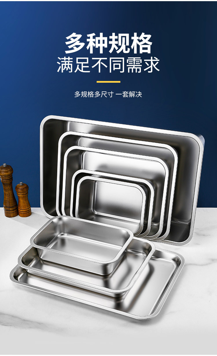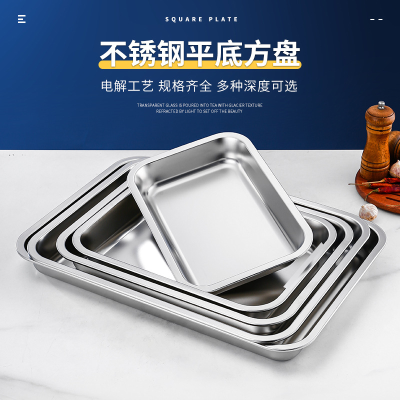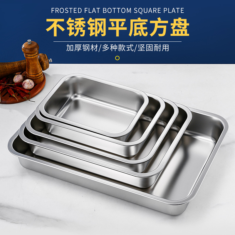 不锈钢方盘长方形方盆份数盆快餐盆平底方盘火锅菜盘烧烤盘托盘铁