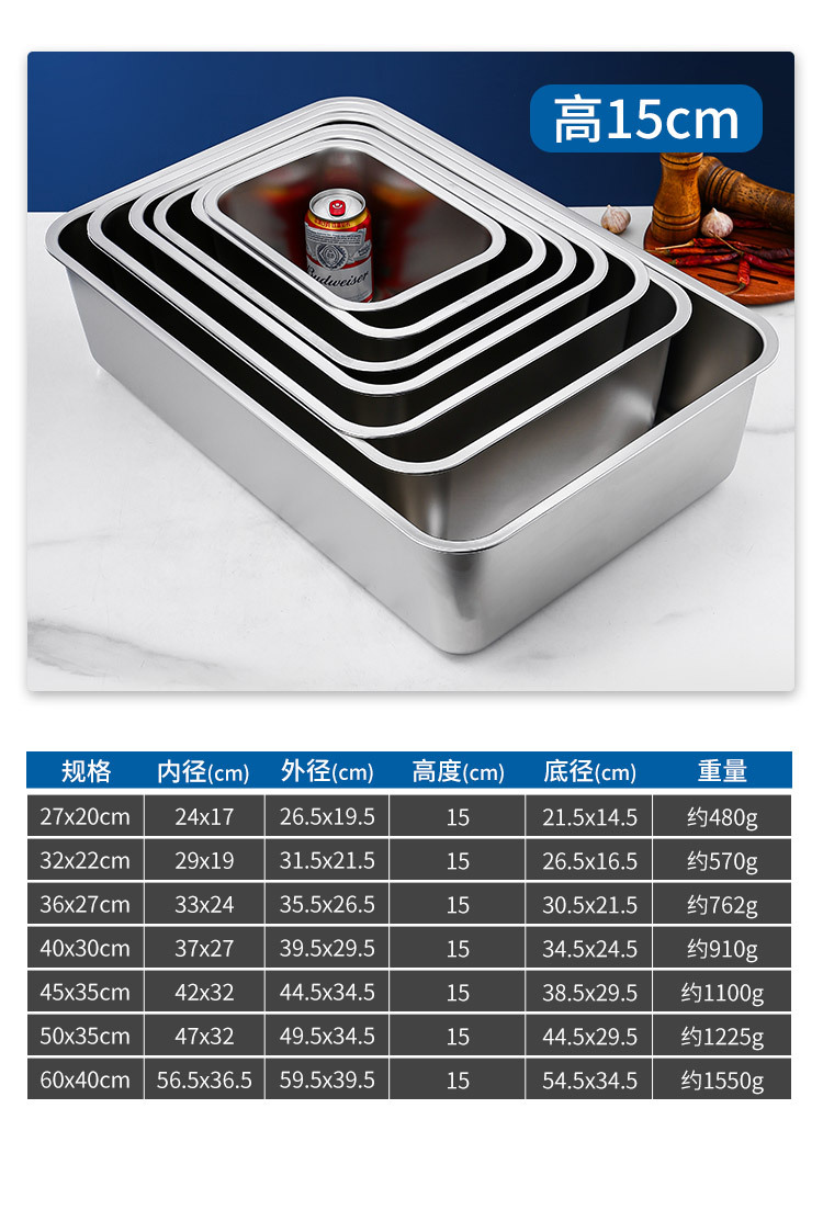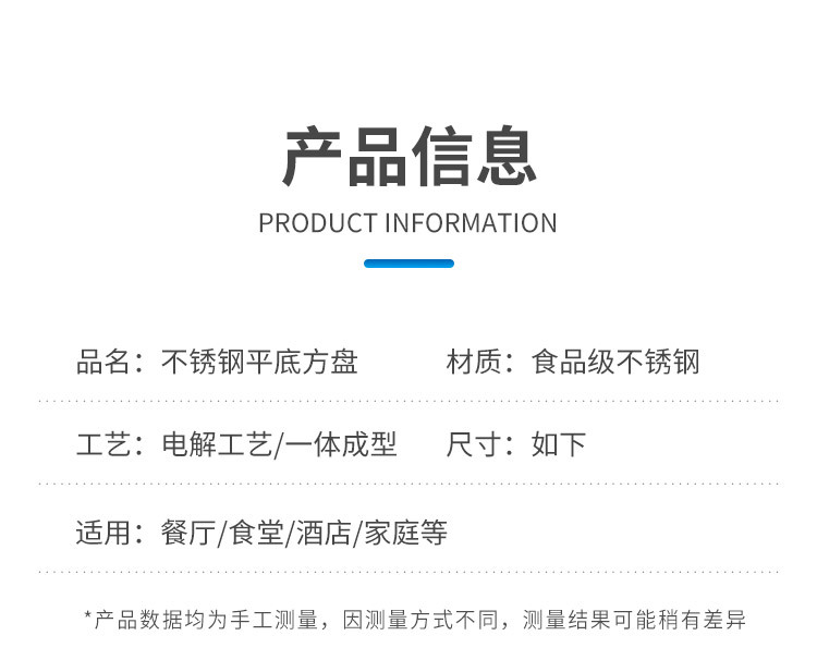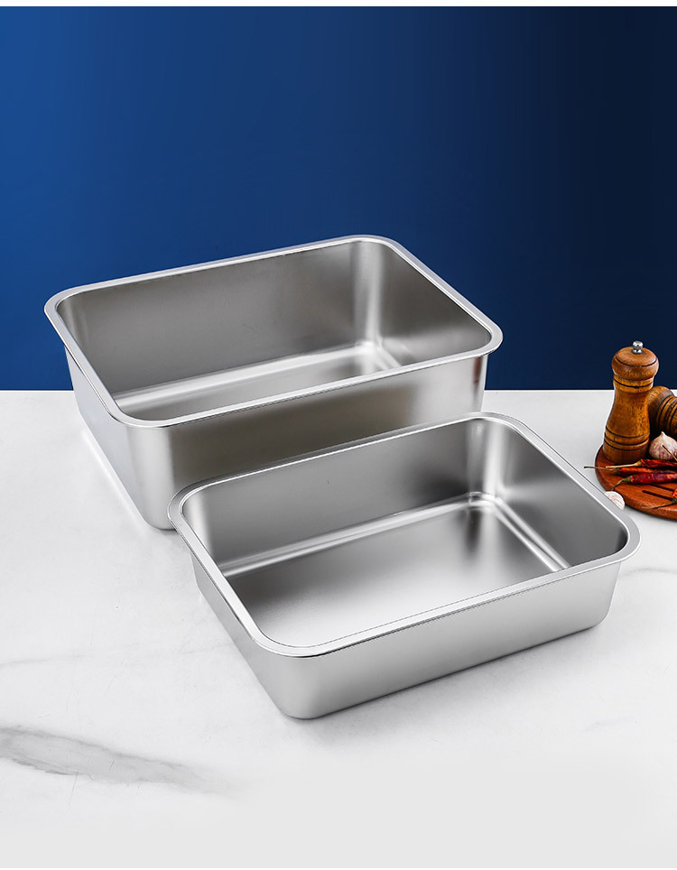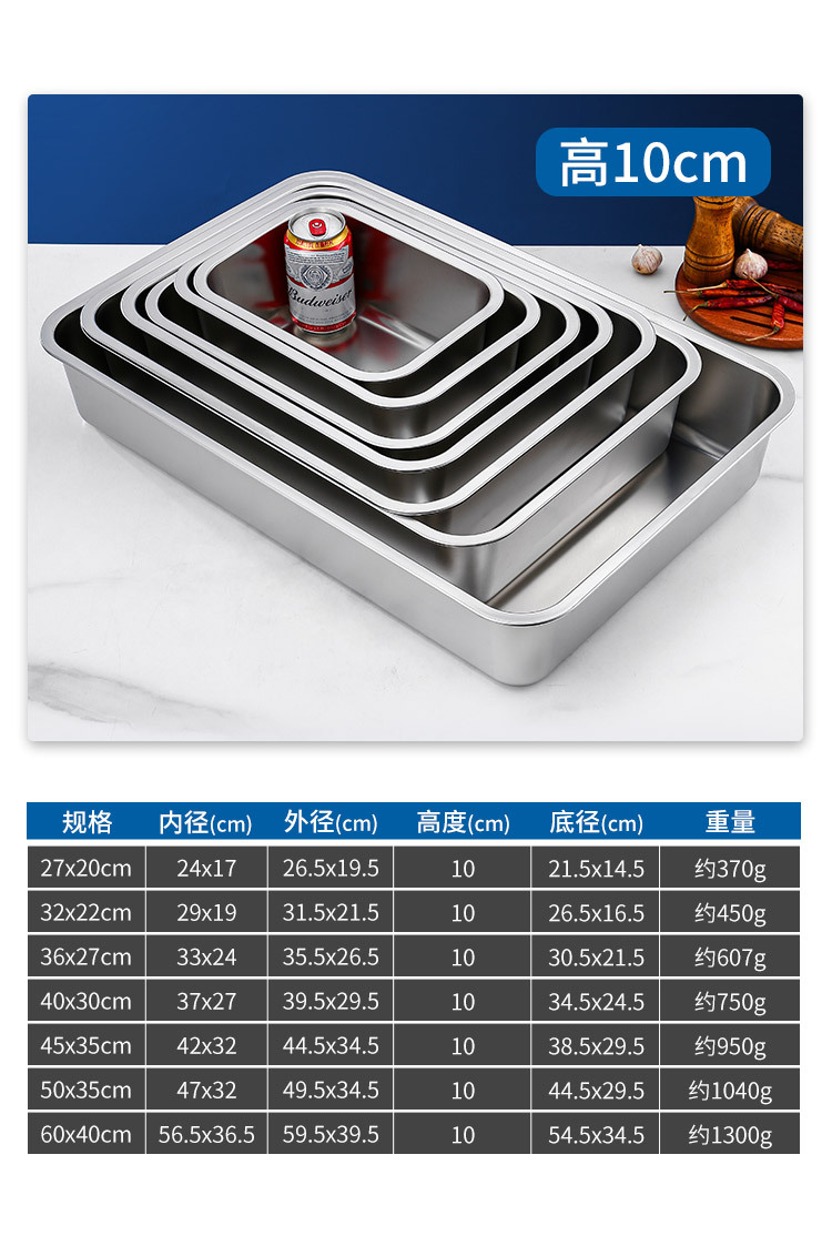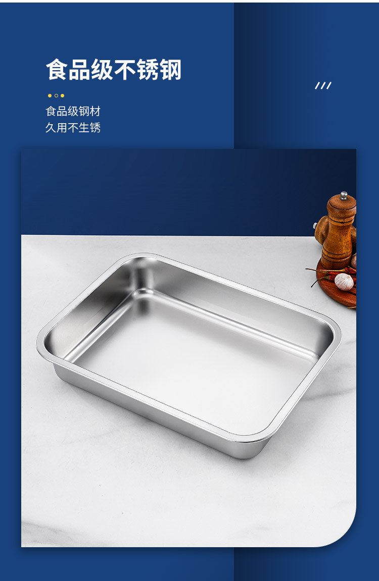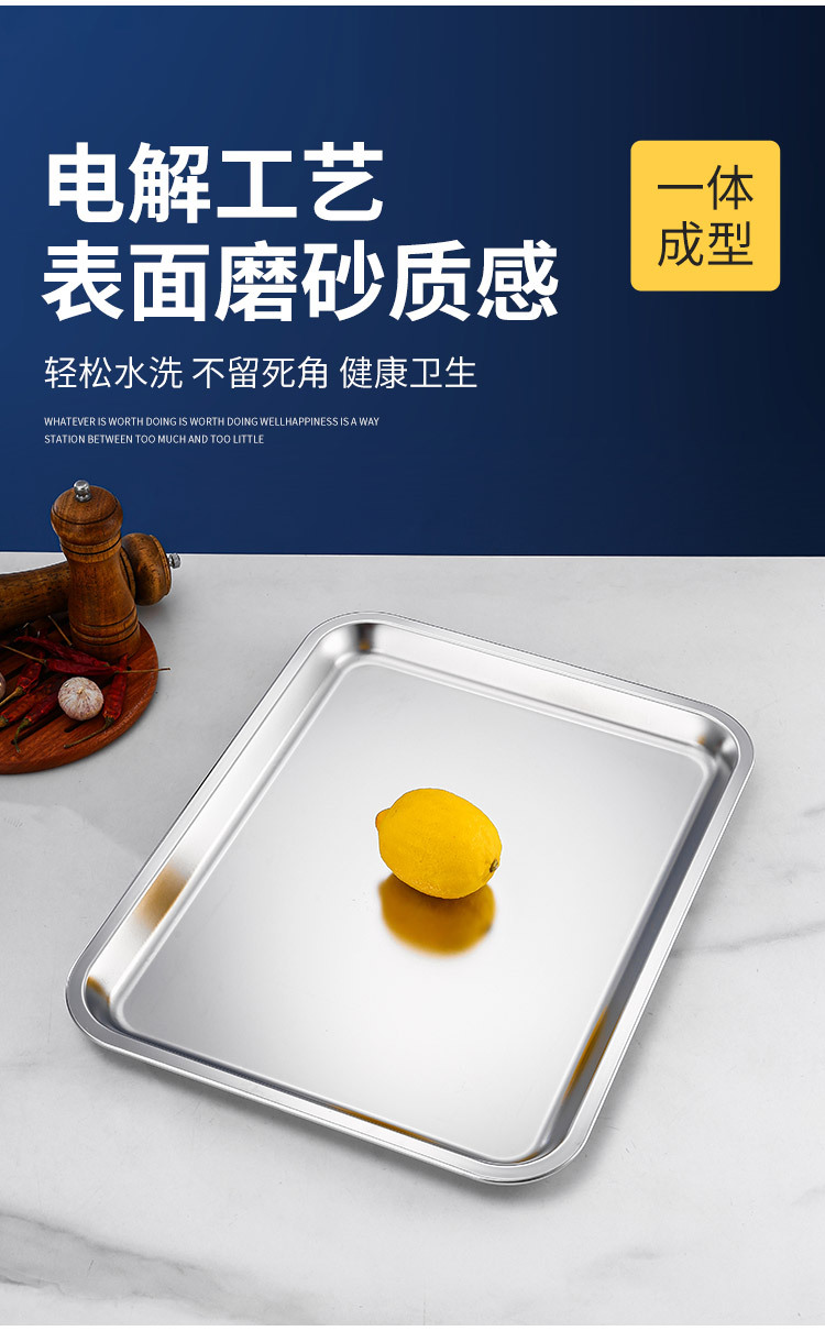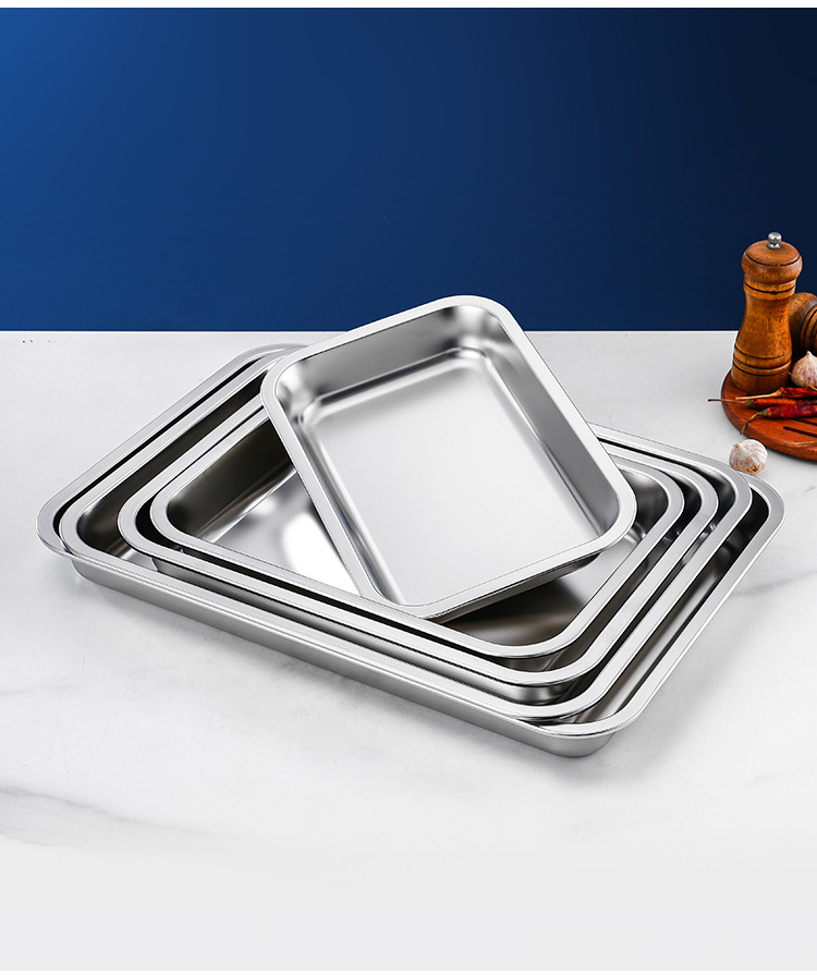 不锈钢方盘长方形方盆份数盆快餐盆平底方盘火锅菜盘烧烤盘托盘铁