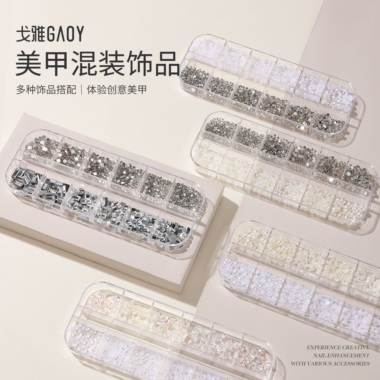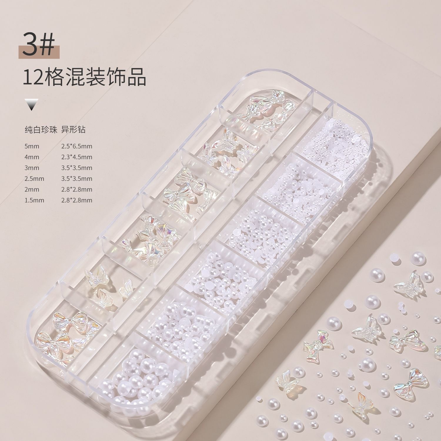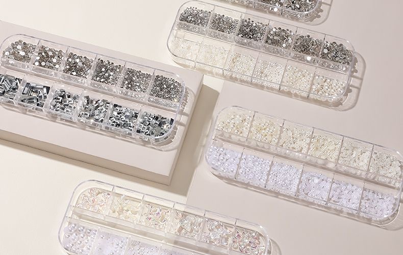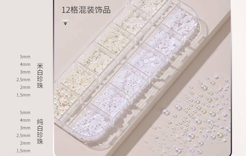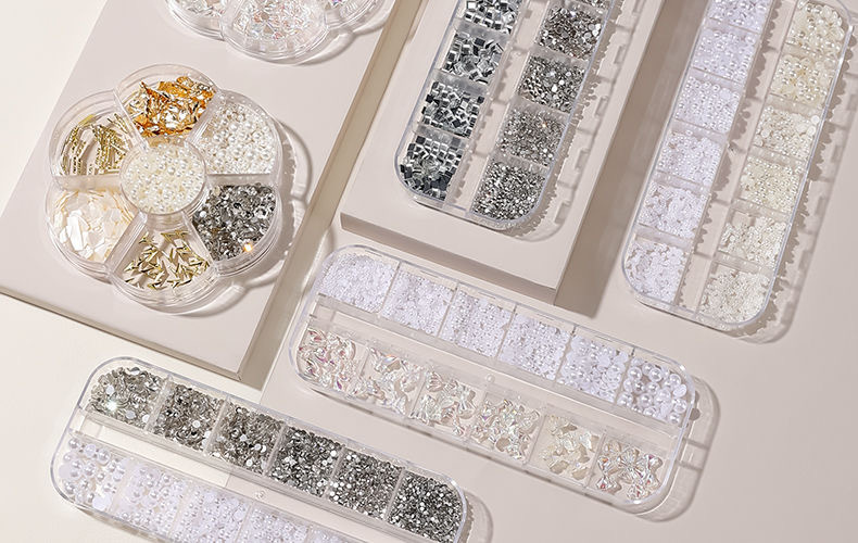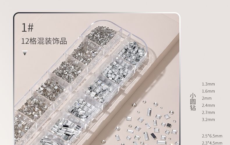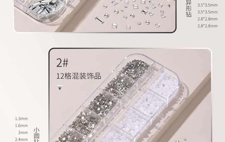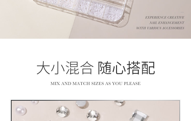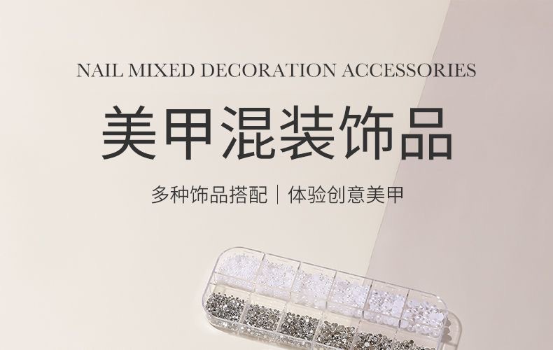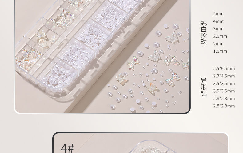 网红美甲12格爆款混装美甲饰品刘星超闪水钻珍珠极光蝴蝶指甲配饰