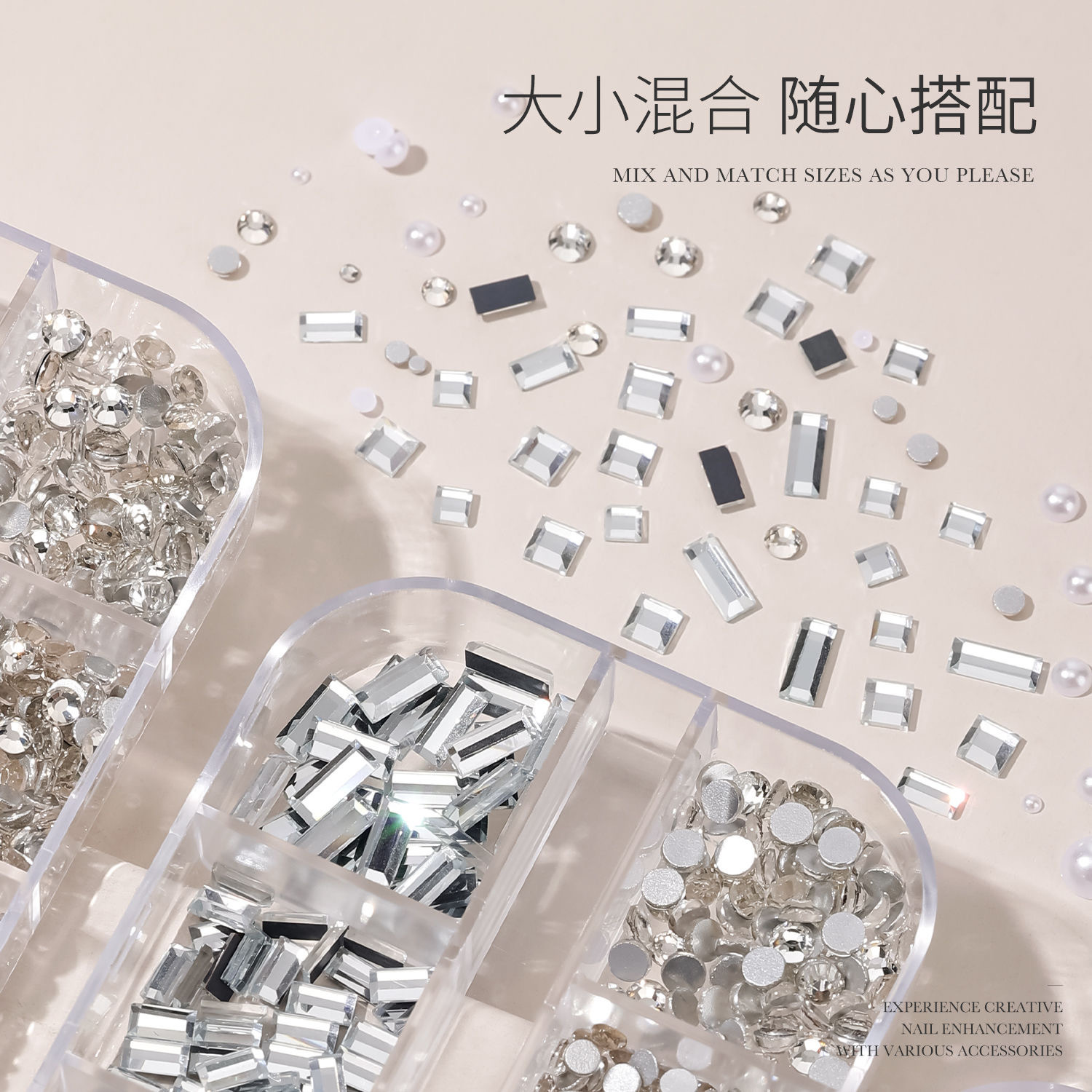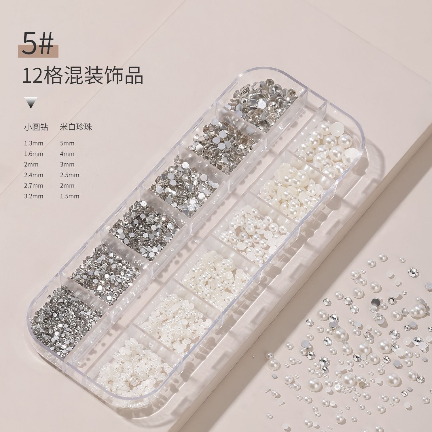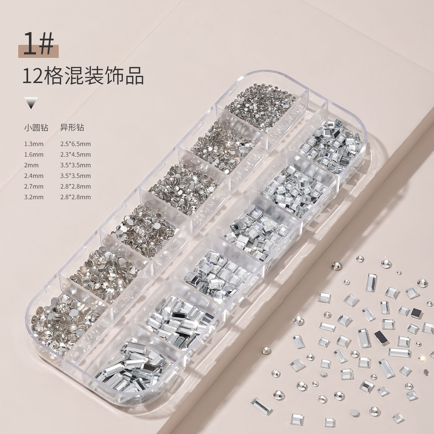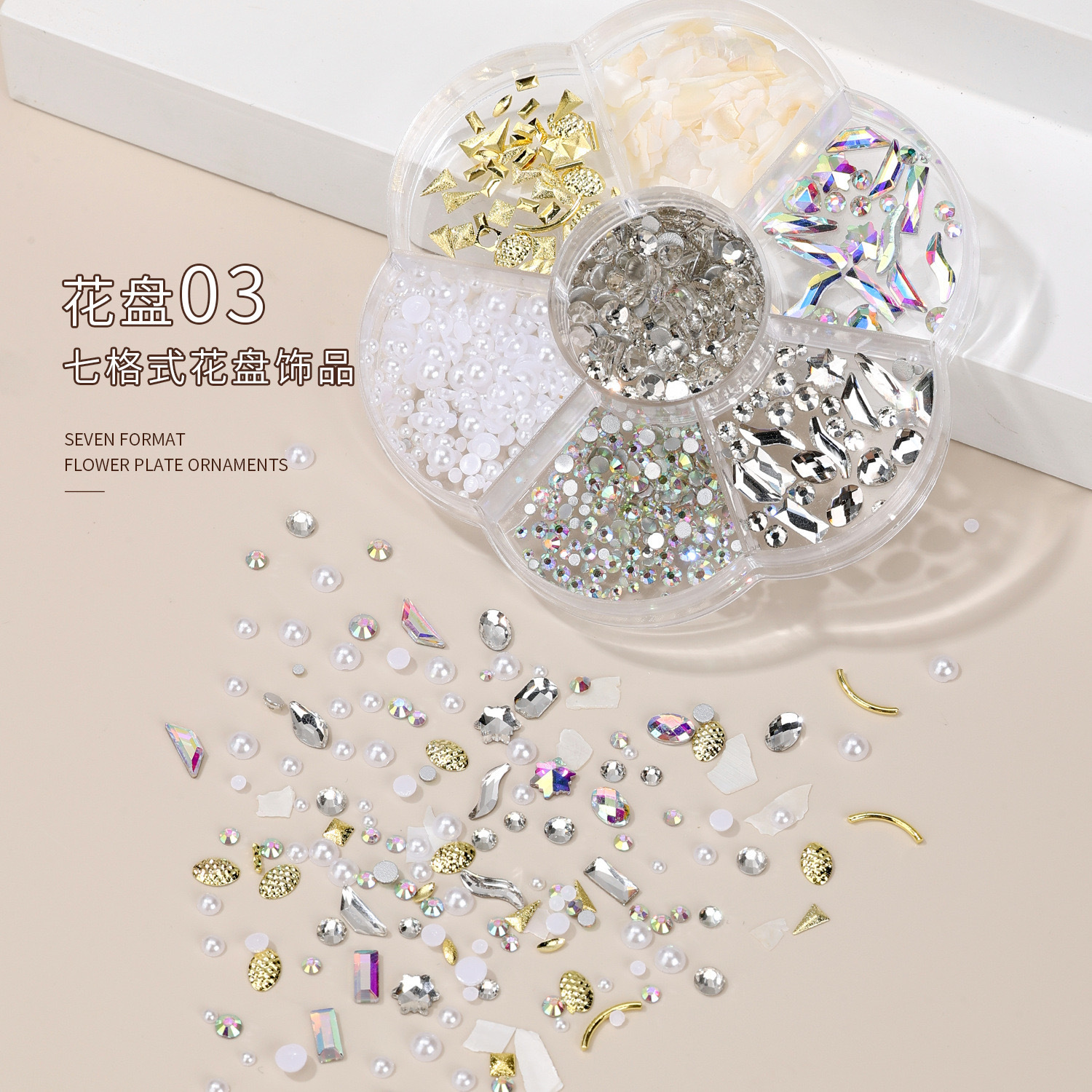 网红美甲12格爆款混装美甲饰品刘星超闪水钻珍珠极光蝴蝶指甲配饰