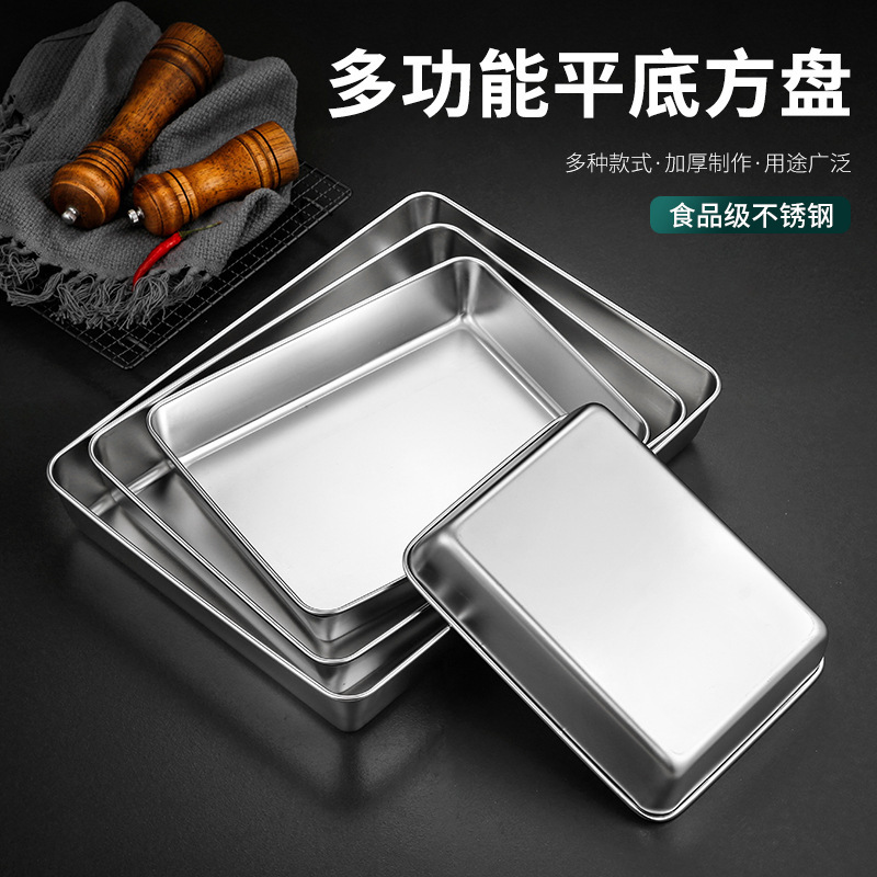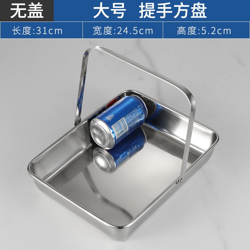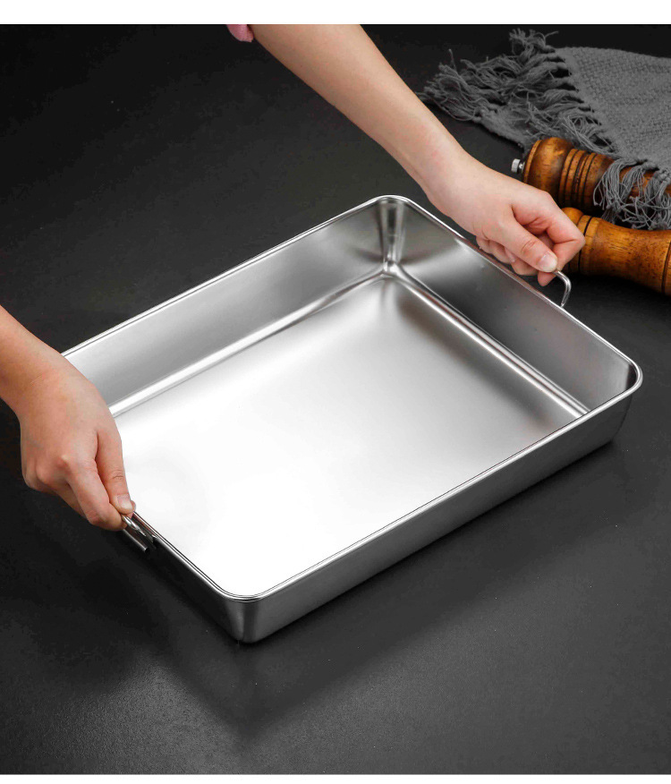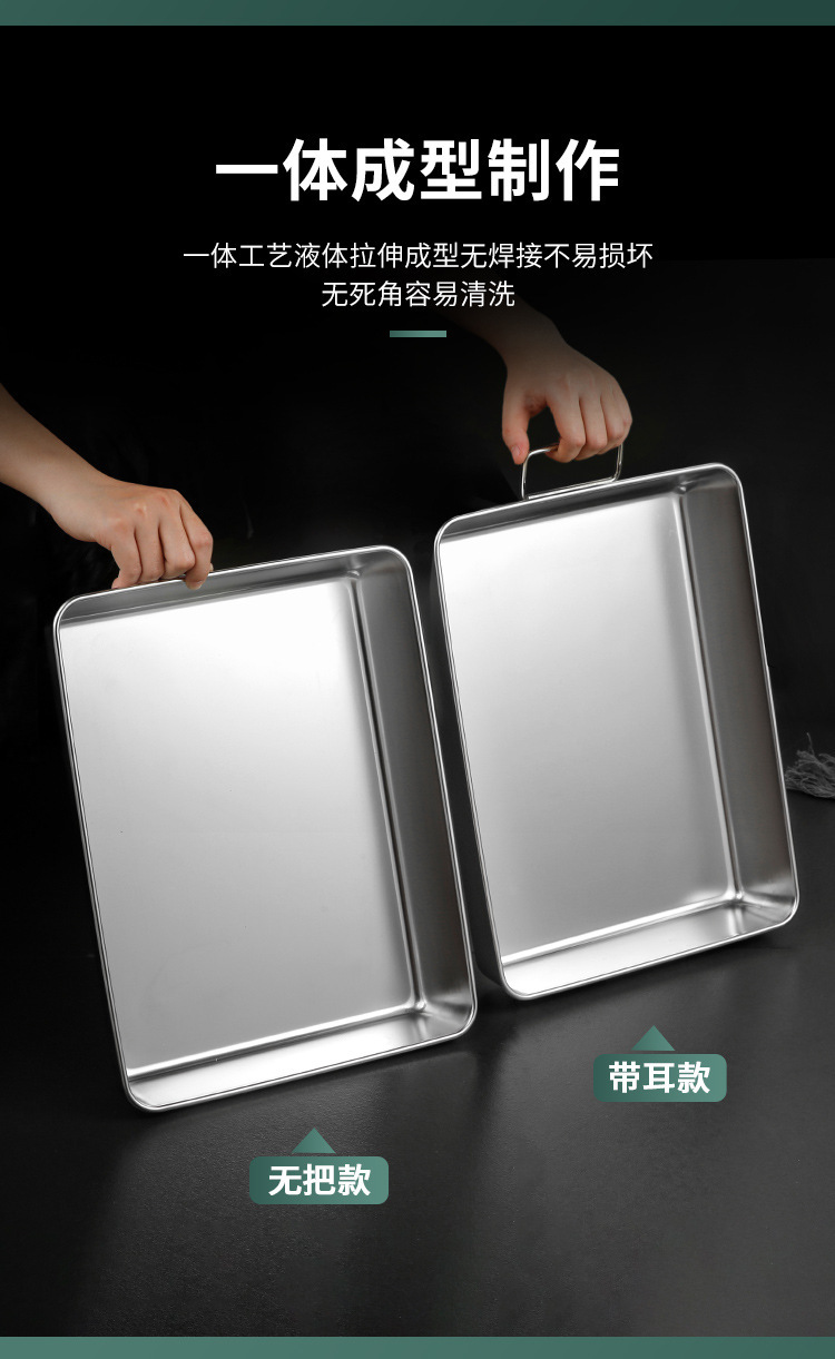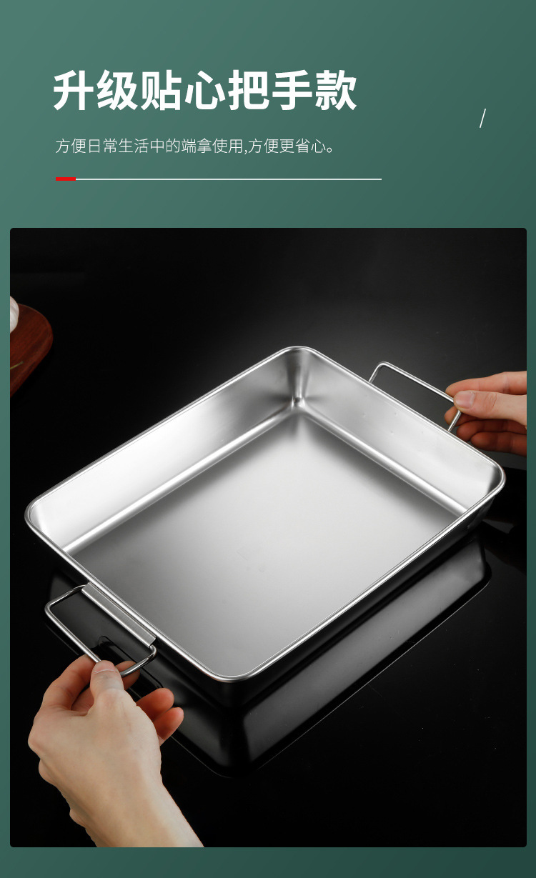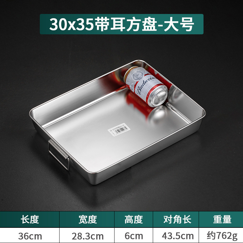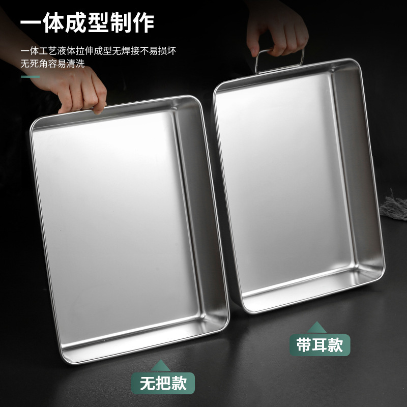 304不锈钢提手方盘纯平底蒸糕阿胶盘长方形盘子备菜盘烘烤盘托盘