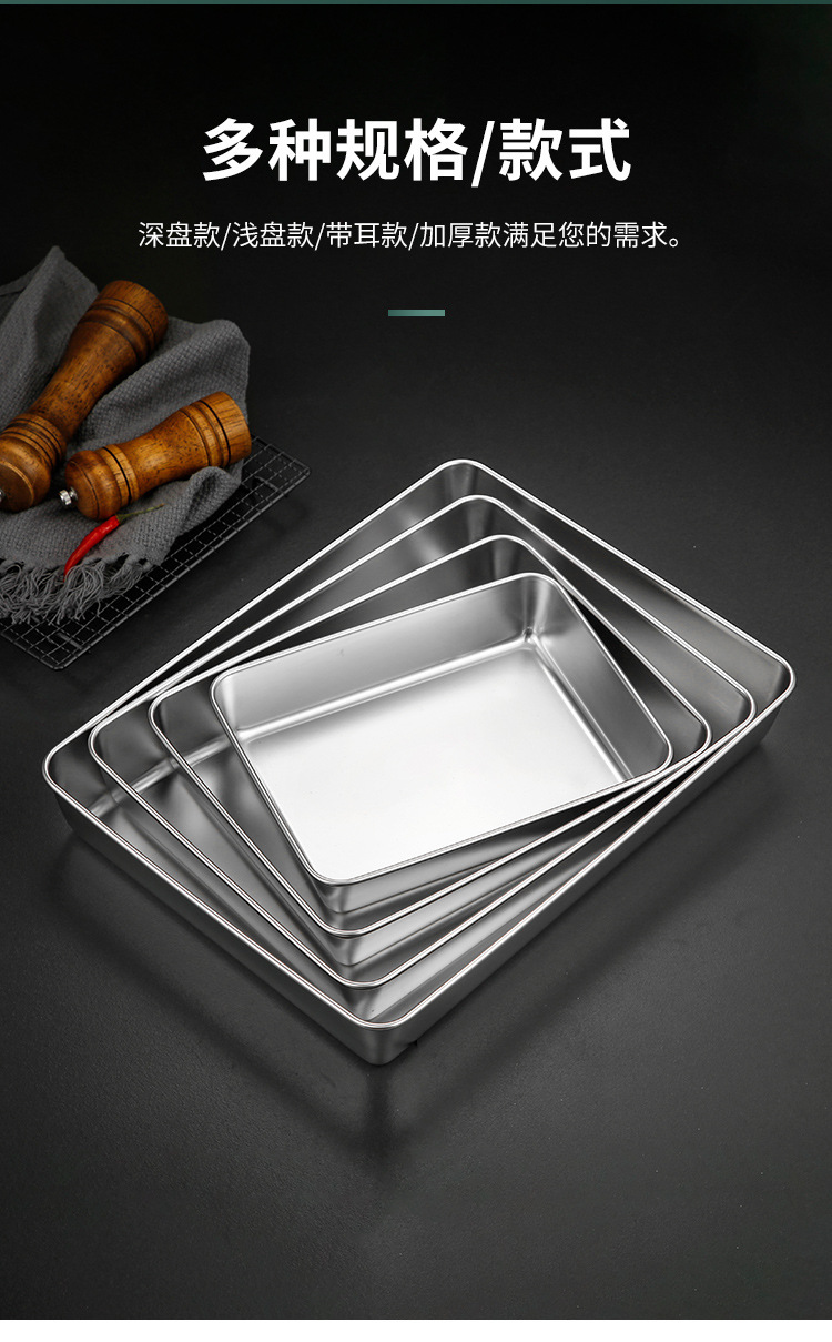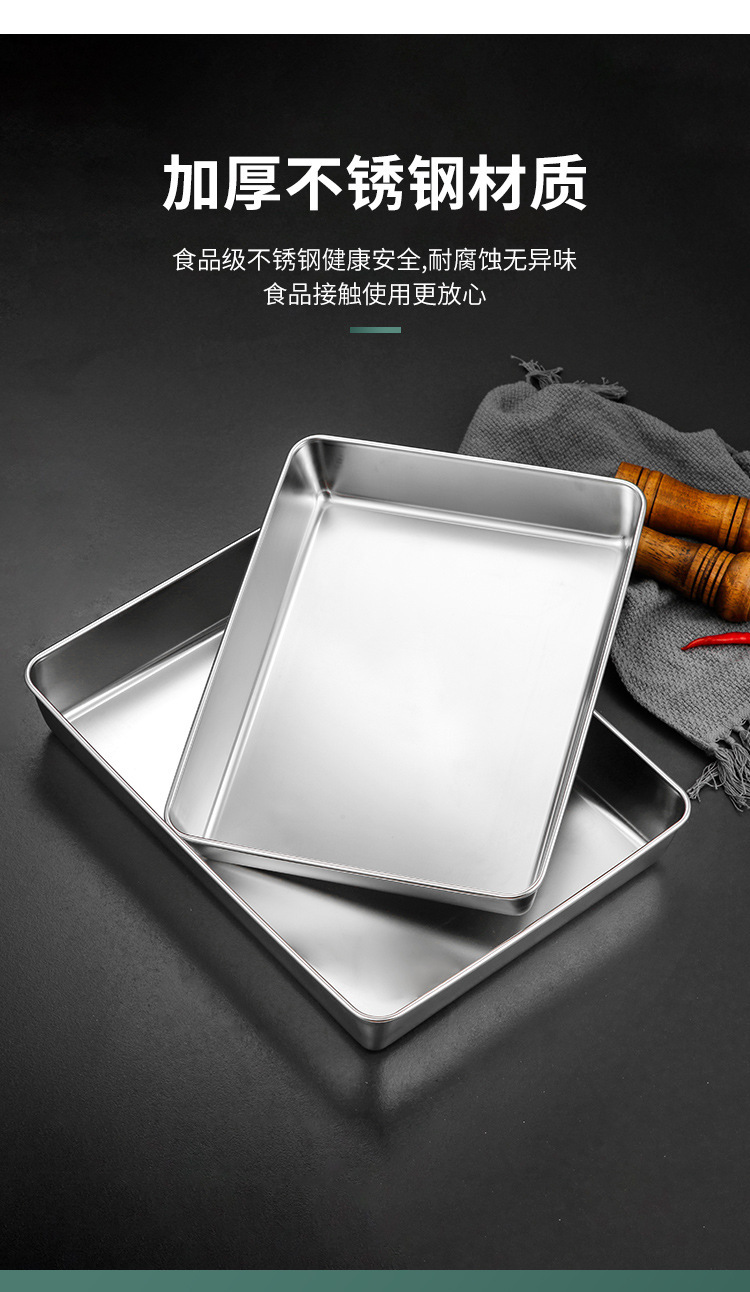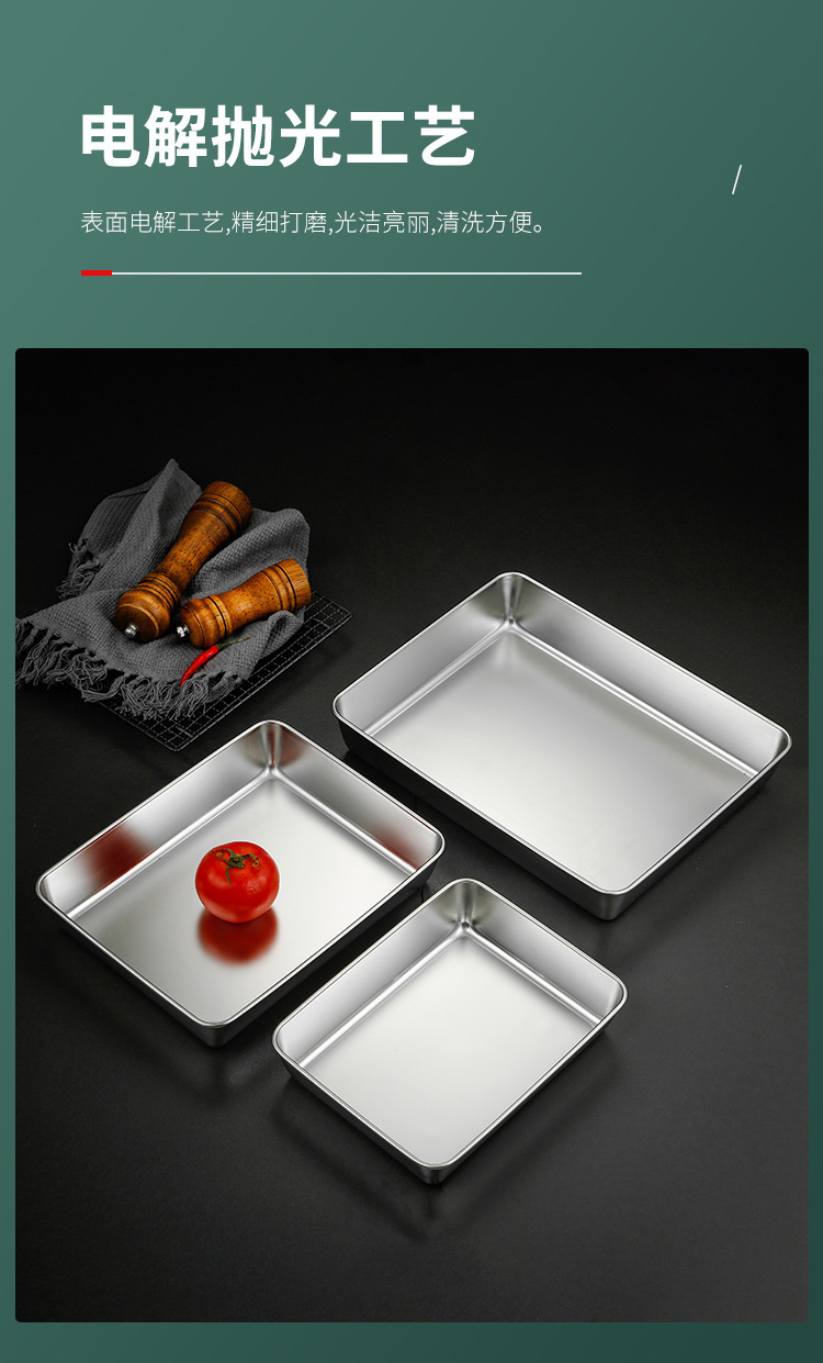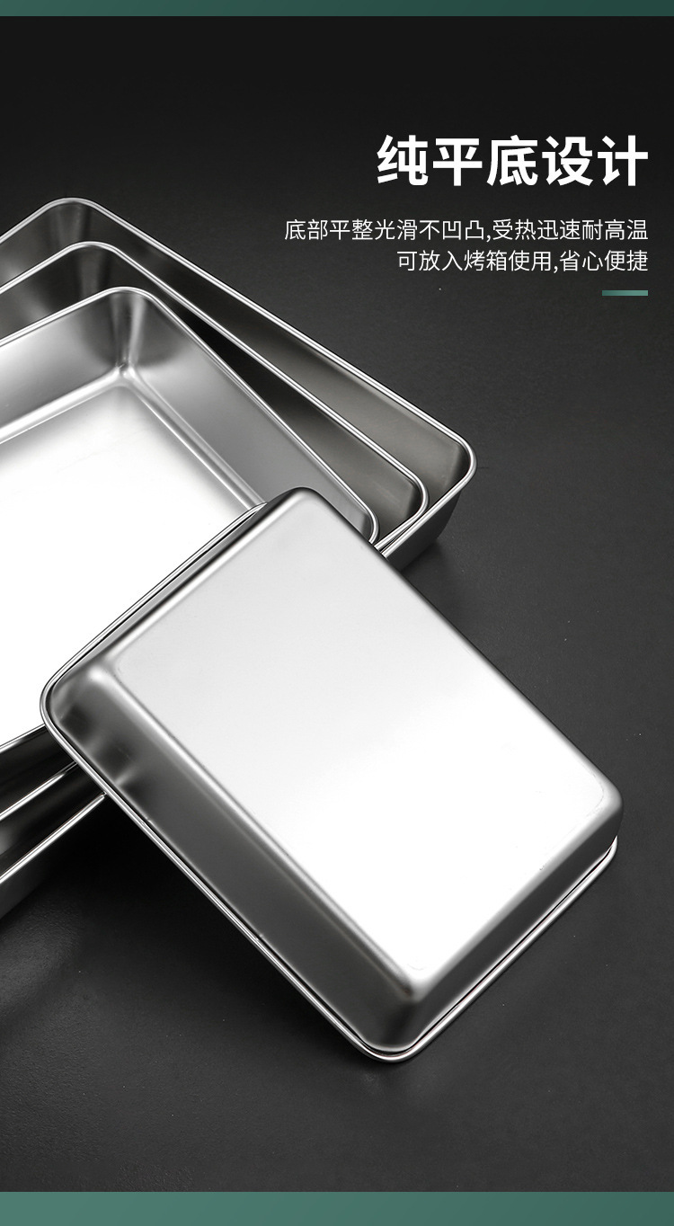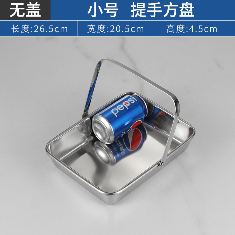 304不锈钢提手方盘纯平底蒸糕阿胶盘长方形盘子备菜盘烘烤盘托盘