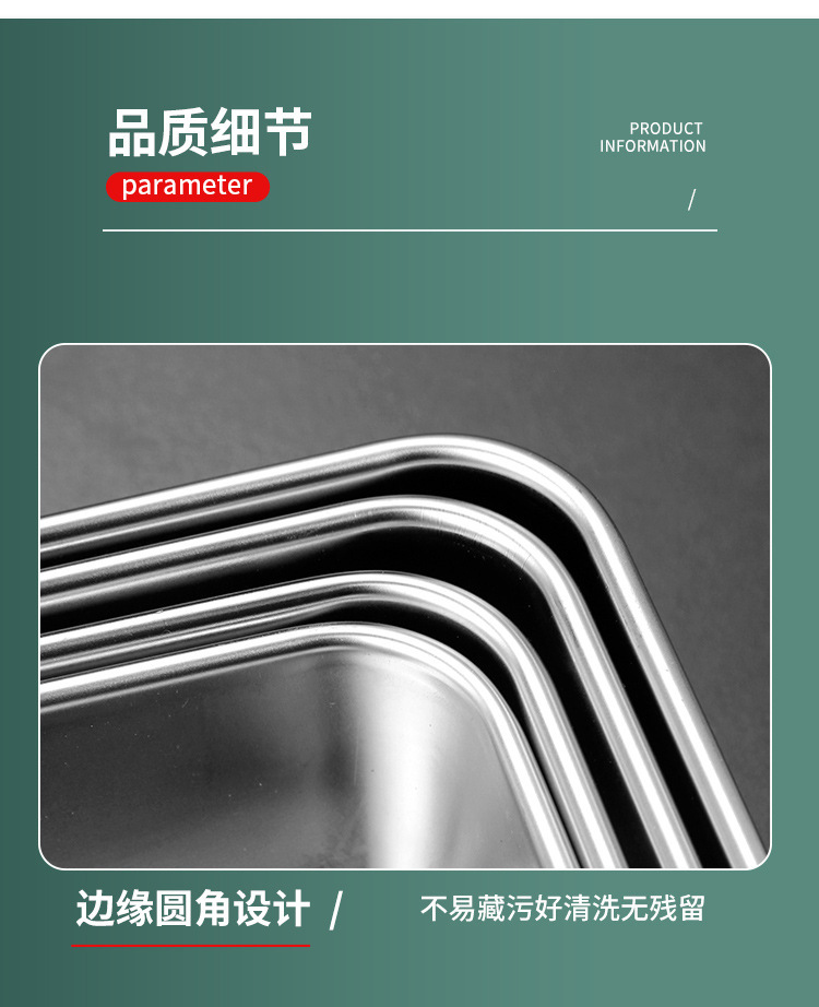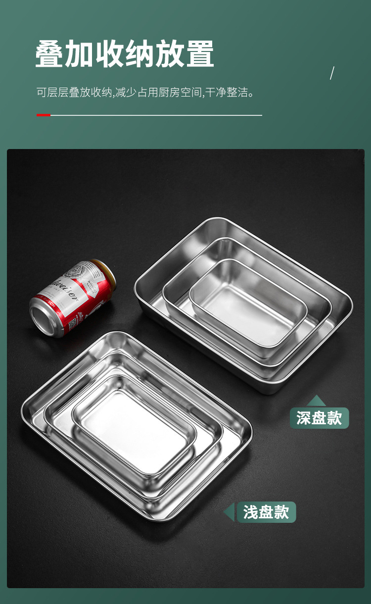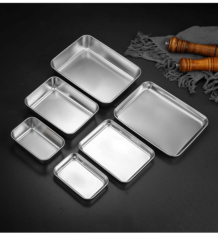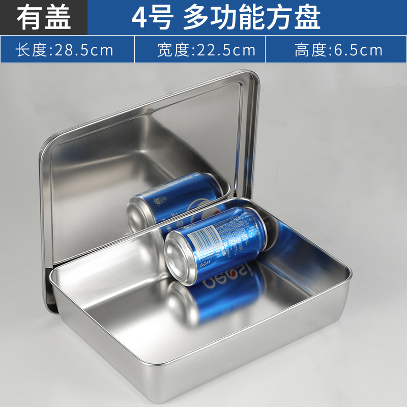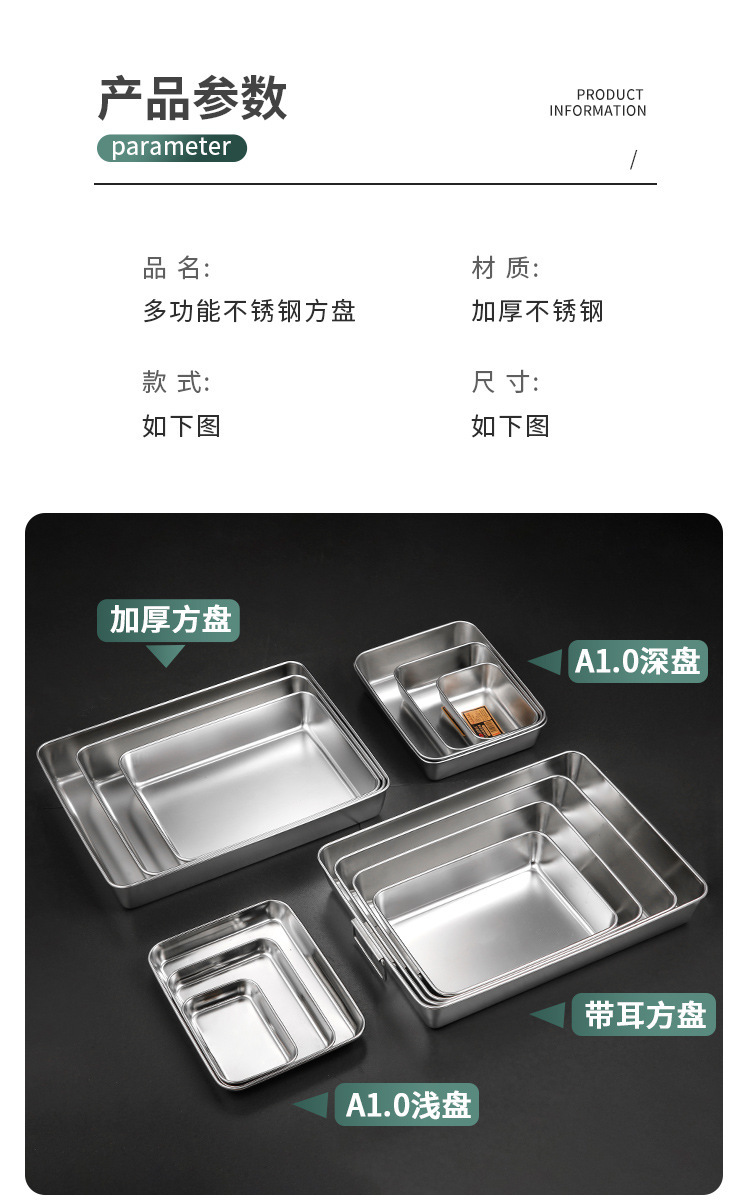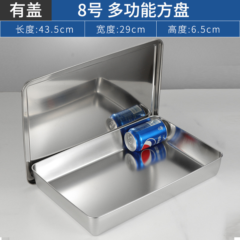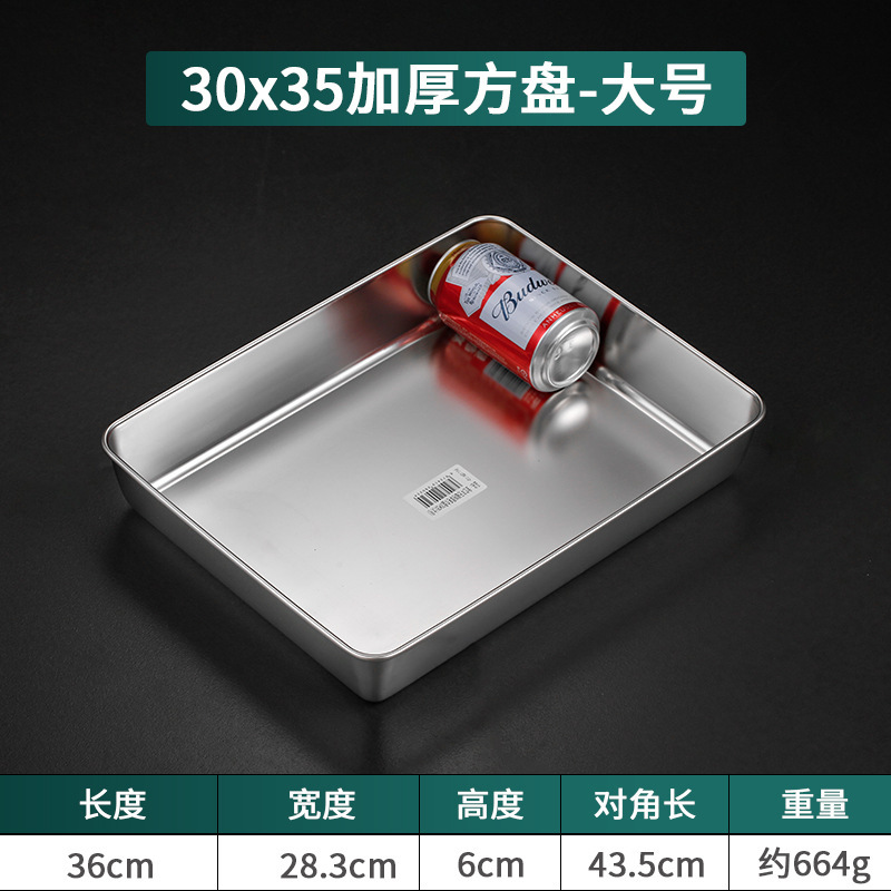304不锈钢提手方盘纯平底蒸糕阿胶盘长方形盘子备菜盘烘烤盘托盘