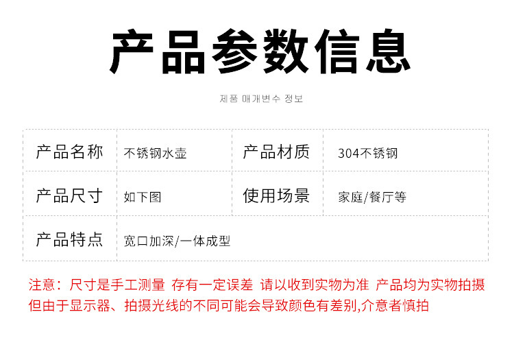 韩式不锈钢冷水壶家用凉水壶餐厅茶水壶咖啡壶酒店保温水壶大容量