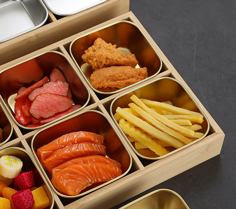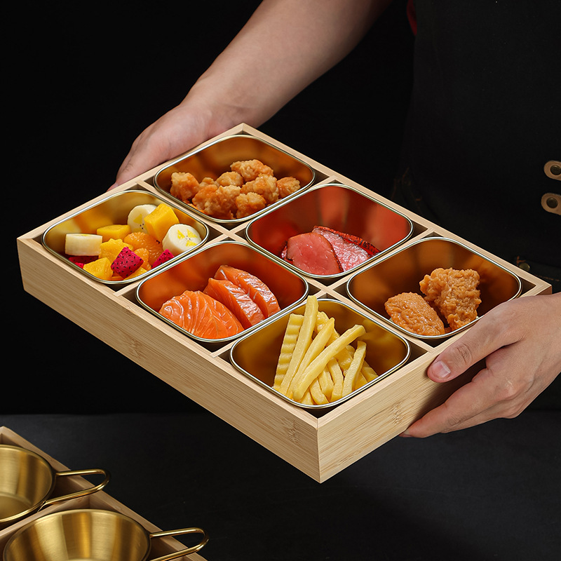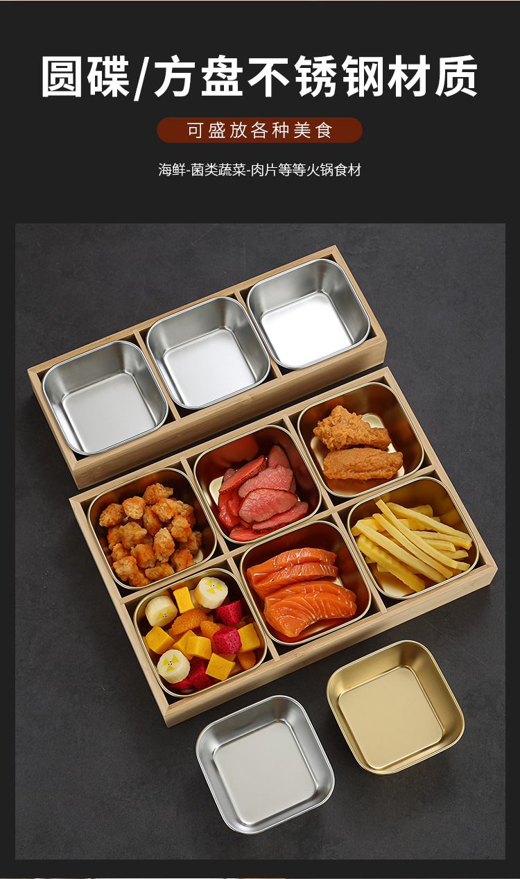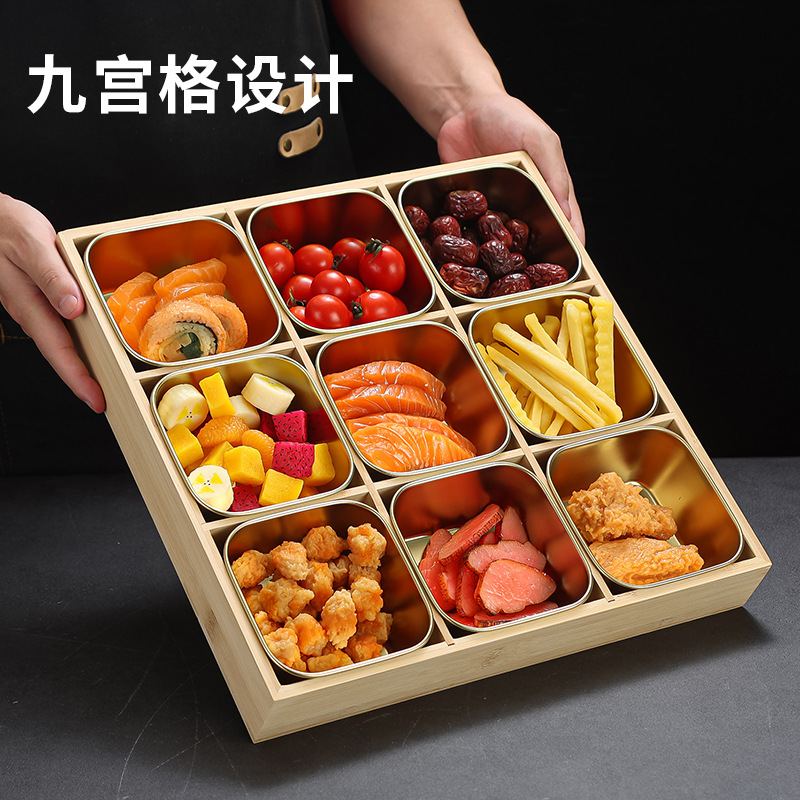 创意九宫格餐具商用火锅店烤肉店分格牛肉蔬菜套餐盘子拼盘竹木盒