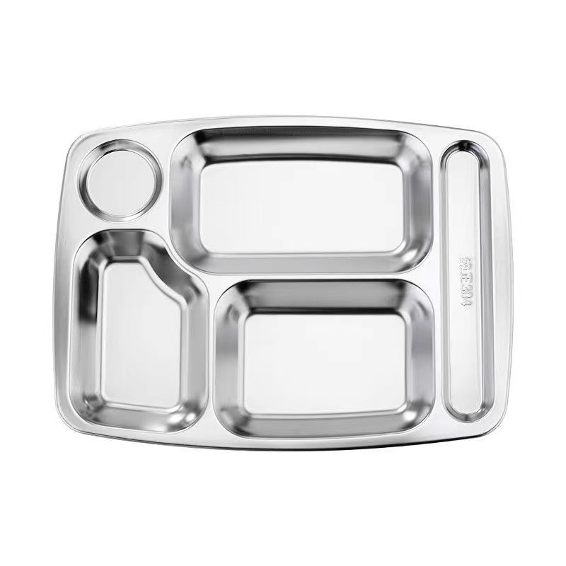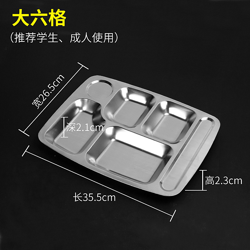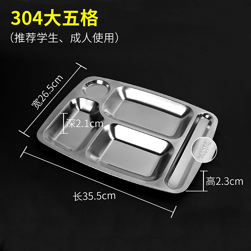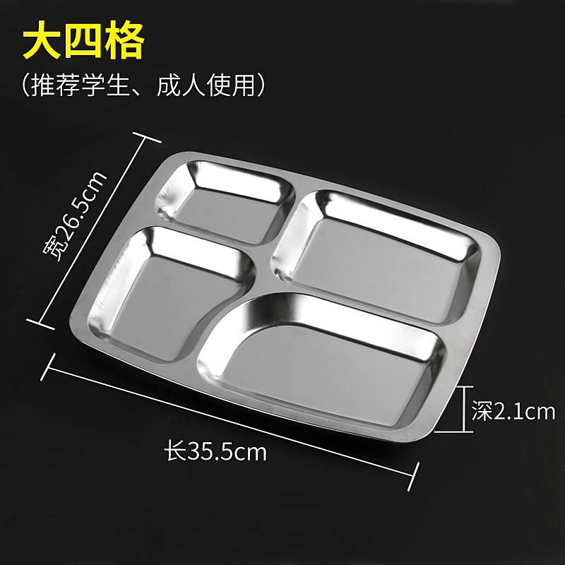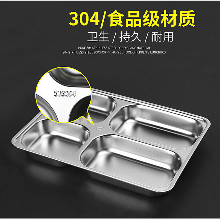 工厂304不锈钢快餐盘学生食堂用餐盘饭盘菜盘成人分格食盘分隔盘