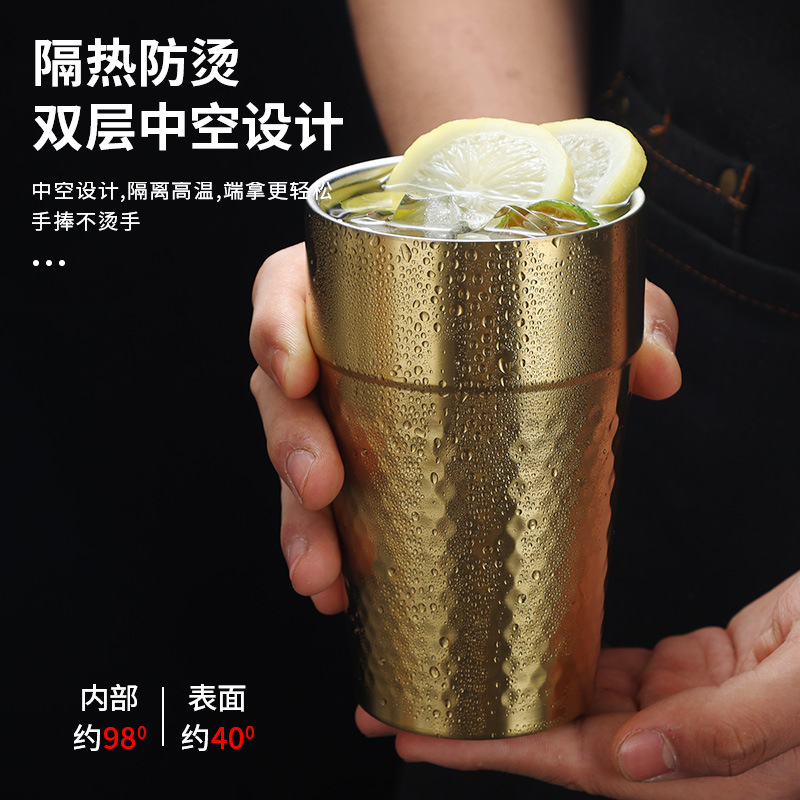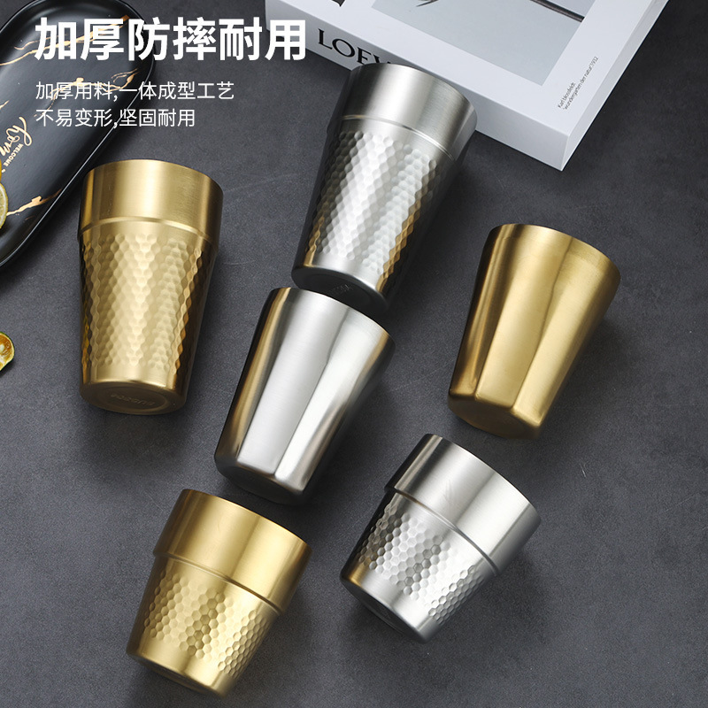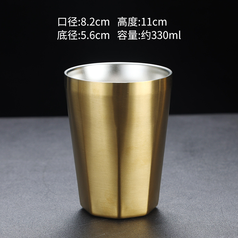 304不锈钢水杯韩式茶杯饮料杯牛奶杯啤酒杯双层隔热水杯漱口杯子