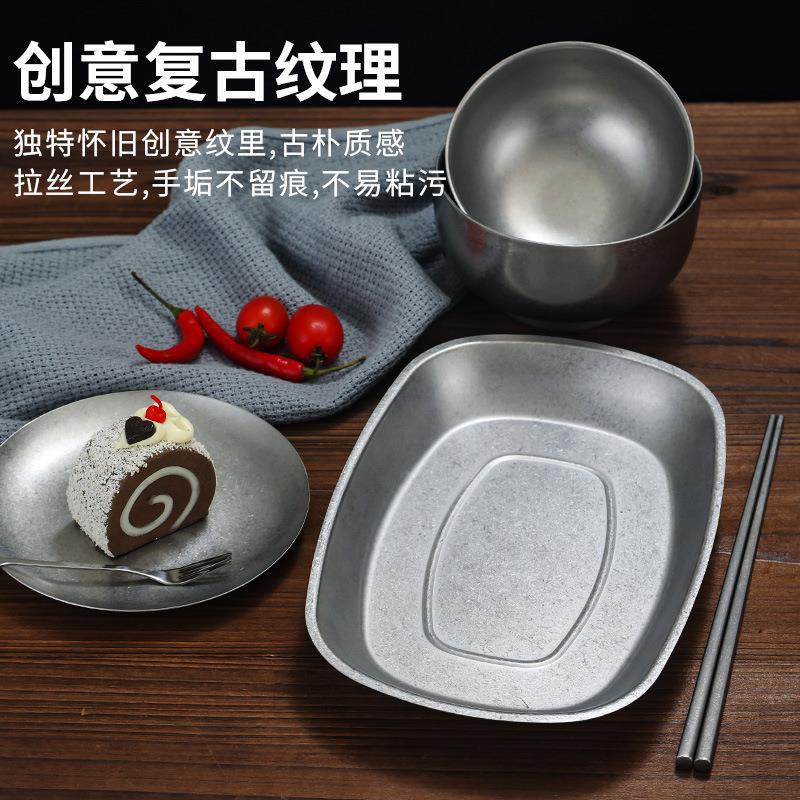 复古不锈钢餐具筷子勺子盘子烟灰缸饭碗汤碗做旧日式味碟小吃盘