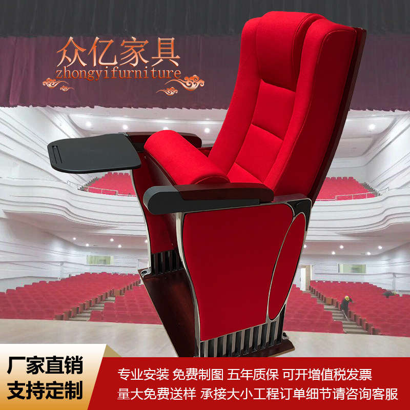 工厂礼堂椅多媒体教室报告厅旋转写字板实木剧院椅带扶手